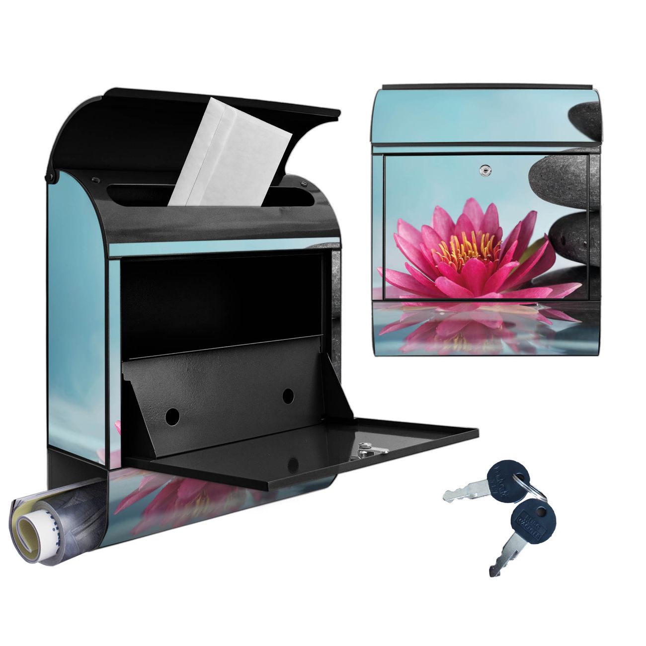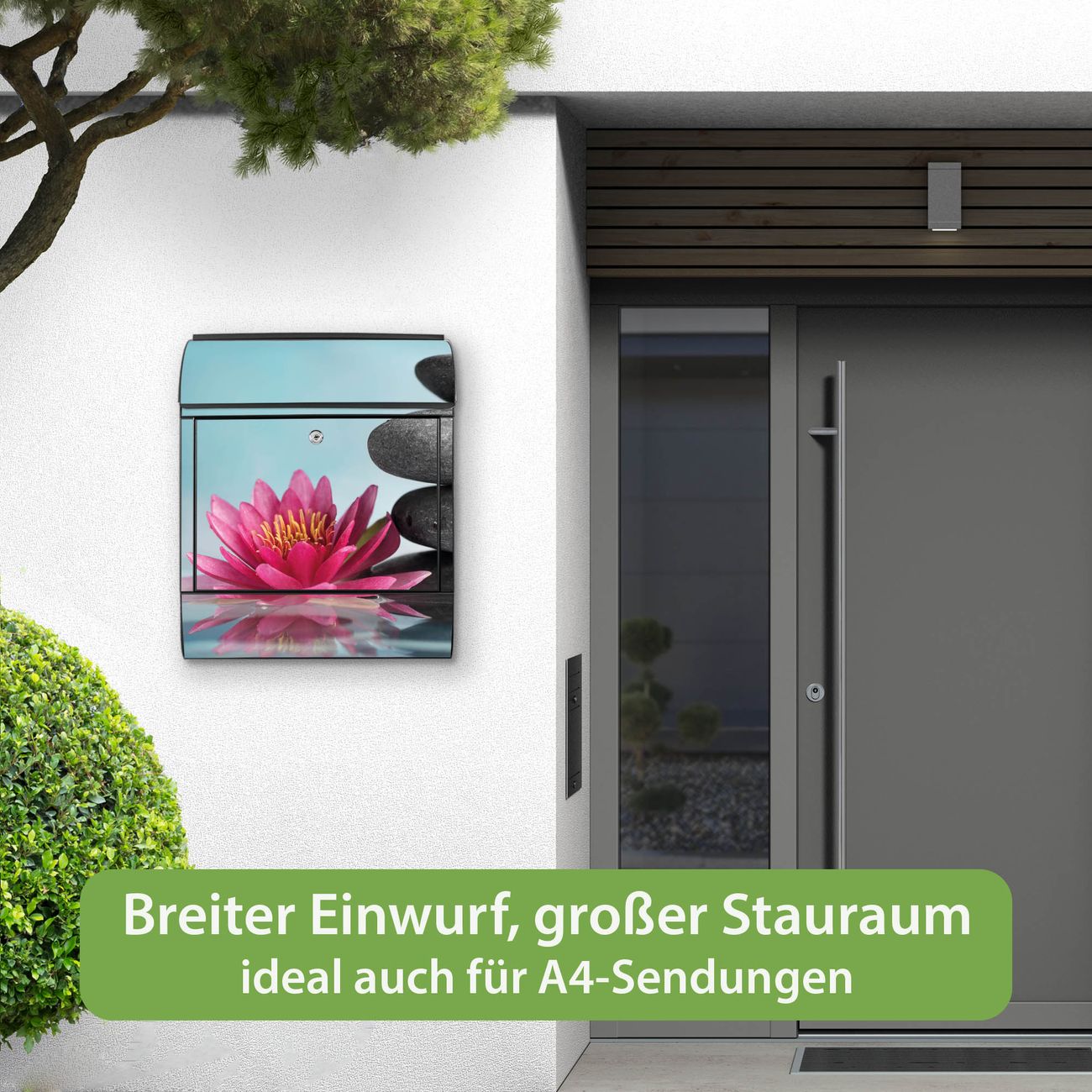 Großer Stahl Briefkasten Motiv Lotus Und Steine