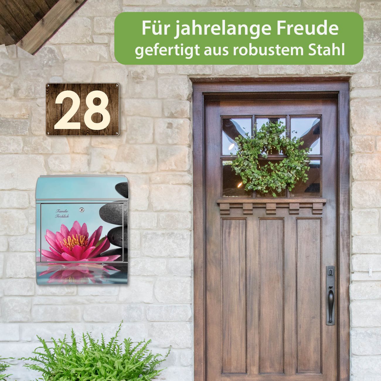 Großer Stahl Briefkasten Motiv Lotus Und Steine