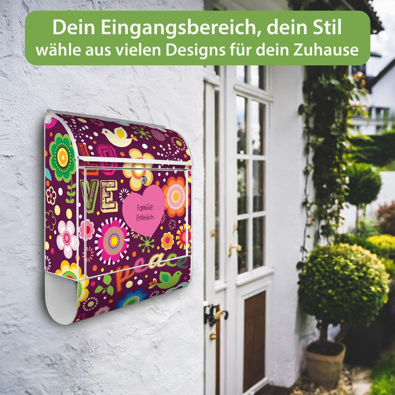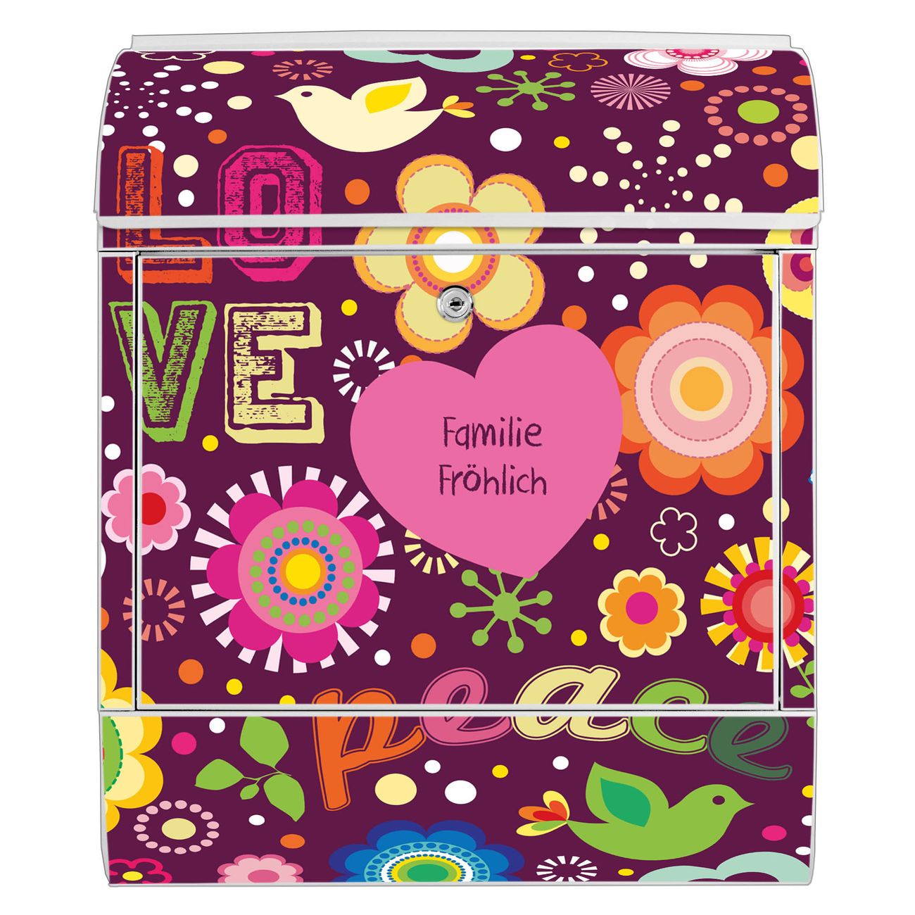Großer Stahl Briefkasten Motiv Love and Peace