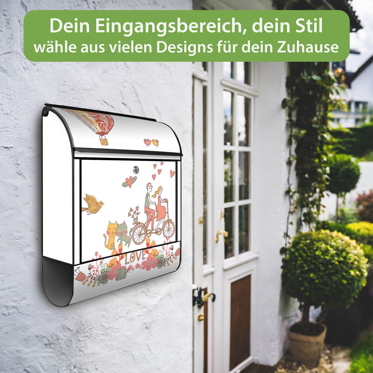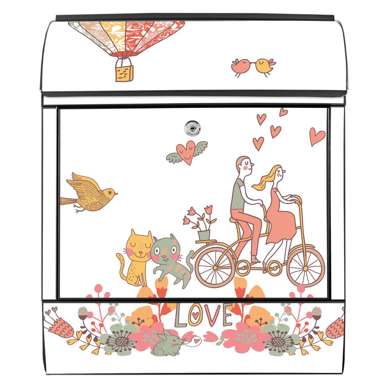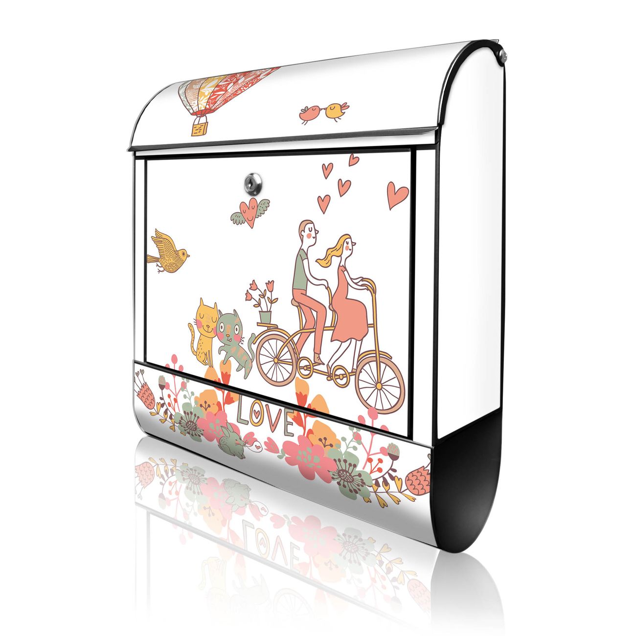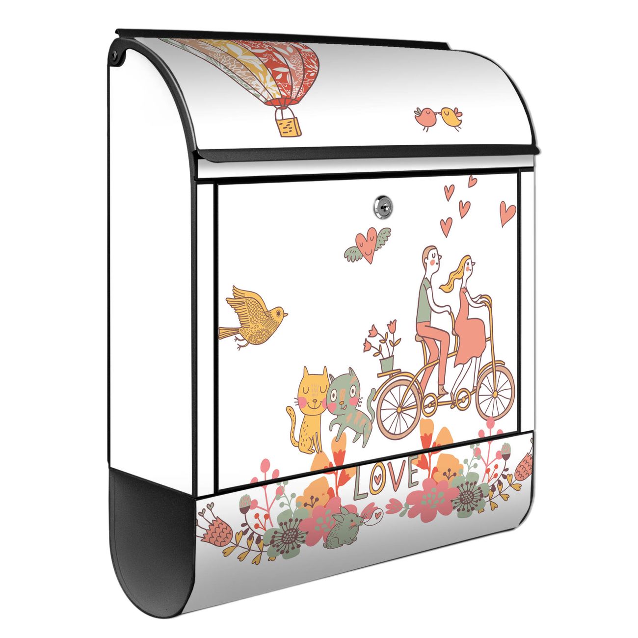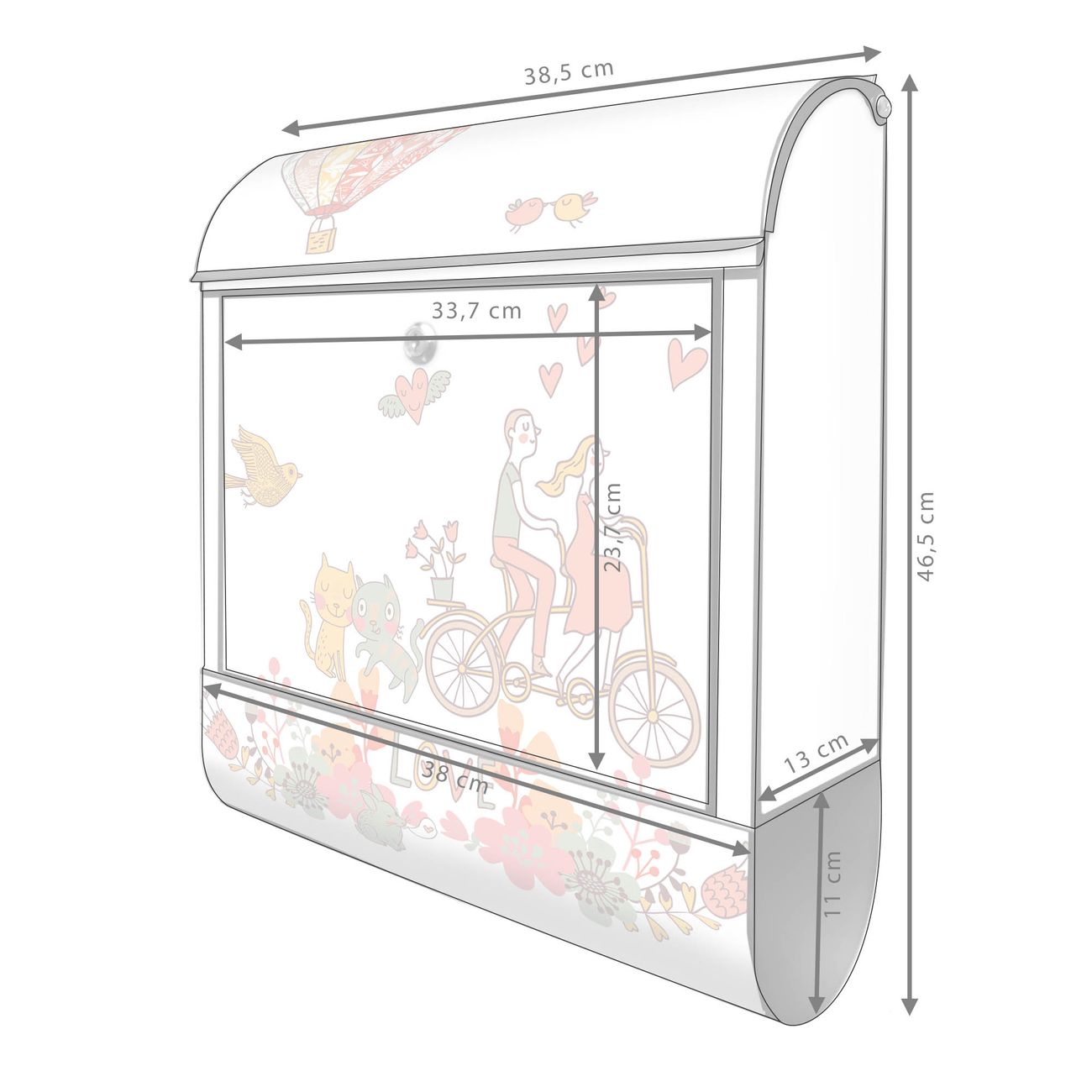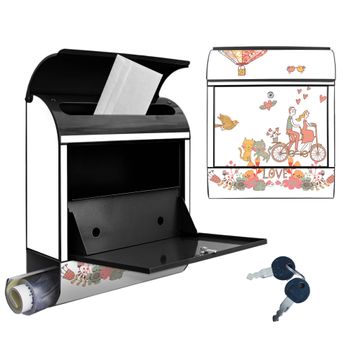DESIGN: Der Postkasten mit Motiv Motiv Love hat ein sehr ansprechendes und ausgefallenes Design, damit entlocken Sie Ihren Nachbarn und dem Postboten ein Lächeln. Heben Sie Sich von der tristen grauen Masse ab, ohne auf Funktionalität zu verzichten. DETAILS: Der Postkasten besteht aus pulverbeschichtetem Stahl. Er ist 38x46x12,5cm groß. Das Motiv besteht aus einer wetter- und UV-resistenten Folie, die mit einem Schutzlaminat überzogen ist, sodass der Briefkasten zusätzlich vor Kratzern geschützt ist. Der Briefkasten wird mit Montagematerial, zusätzlich zwei Schlüssel sowie einer Bohrschablone geliefert. NUTZEN: Sie können diesen Briefkasten sowohl als Wandbriefkasten montieren oder einen passenden Ständer kaufen und als Standbriefkasten einbetonieren. Die Größe bietet genügend Platz für Sendungen aller Art, der Einwurf fasst auch größere A4 Sendungen. BANJADO: Ihr Briefkasten wird in Sachsen in einer kleinen Manufaktur von Hand veredelt. Die Motivfolie ist lösungsmittelfrei und schutzlaminiert für einen langen Halt. Wir legen großen Wert auf die Verbindung von Funktionalität und Design. Sie erhalten Handarbeit aus Sachsen.