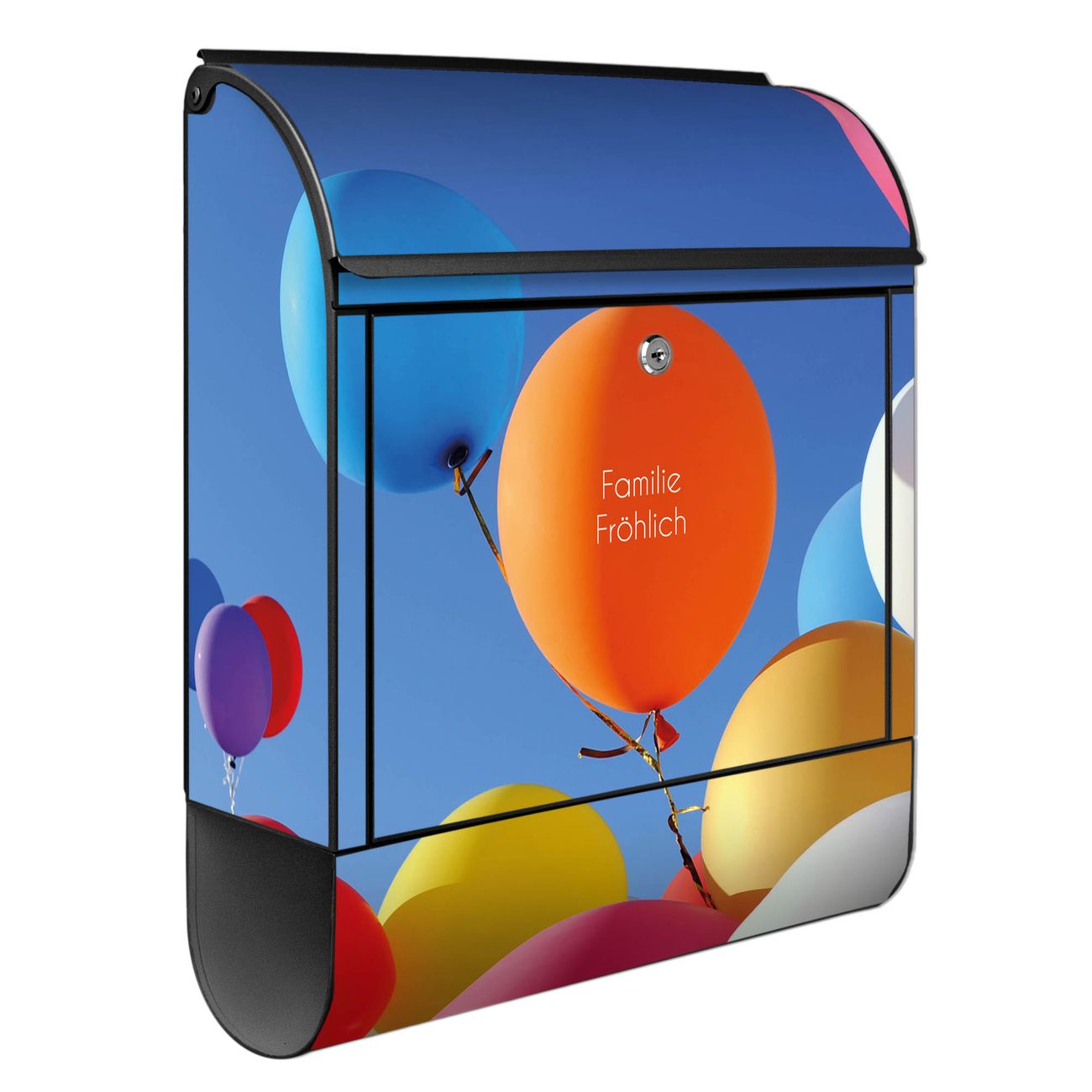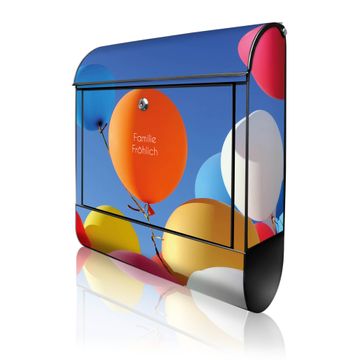 DESIGN: Der Postkasten mit Motiv Motiv Luftballons hat ein sehr ansprechendes und ausgefallenes Design, damit entlocken Sie Ihren Nachbarn und dem Postboten ein Lächeln. Heben Sie Sich von der tristen grauen Masse ab, ohne auf Funktionalität zu verzichten. DETAILS: Der Postkasten besteht aus pulverbeschichtetem Stahl. Er ist 38x46x12,5cm groß. Das Motiv besteht aus einer wetter- und UV-resistenten Folie, die mit einem Schutzlaminat überzogen ist, sodass der Briefkasten zusätzlich vor Kratzern geschützt ist. Der Briefkasten wird mit Montagematerial, zusätzlich zwei Schlüssel sowie einer Bohrschablone geliefert. NUTZEN: Sie können diesen Briefkasten sowohl als Wandbriefkasten montieren oder einen passenden Ständer kaufen und als Standbriefkasten einbetonieren. Die Größe bietet genügend Platz für Sendungen aller Art, der Einwurf fasst auch größere A4 Sendungen. BANJADO: Ihr Briefkasten wird in Sachsen in einer kleinen Manufaktur von Hand veredelt. Die Motivfolie ist lösungsmittelfrei und schutzlaminiert für einen langen Halt. Wir legen großen Wert auf die Verbindung von Funktionalität und Design. Sie erhalten Handarbeit aus Sachsen.