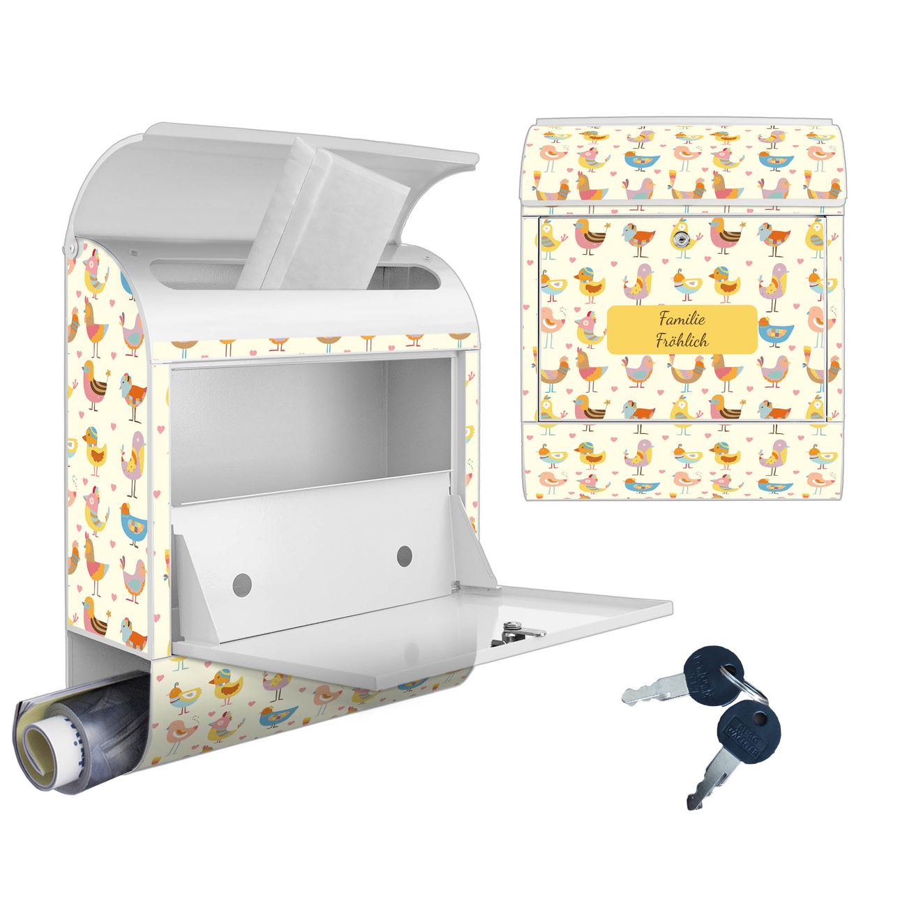 Großer Stahl Briefkasten Motiv Lustige Vögel