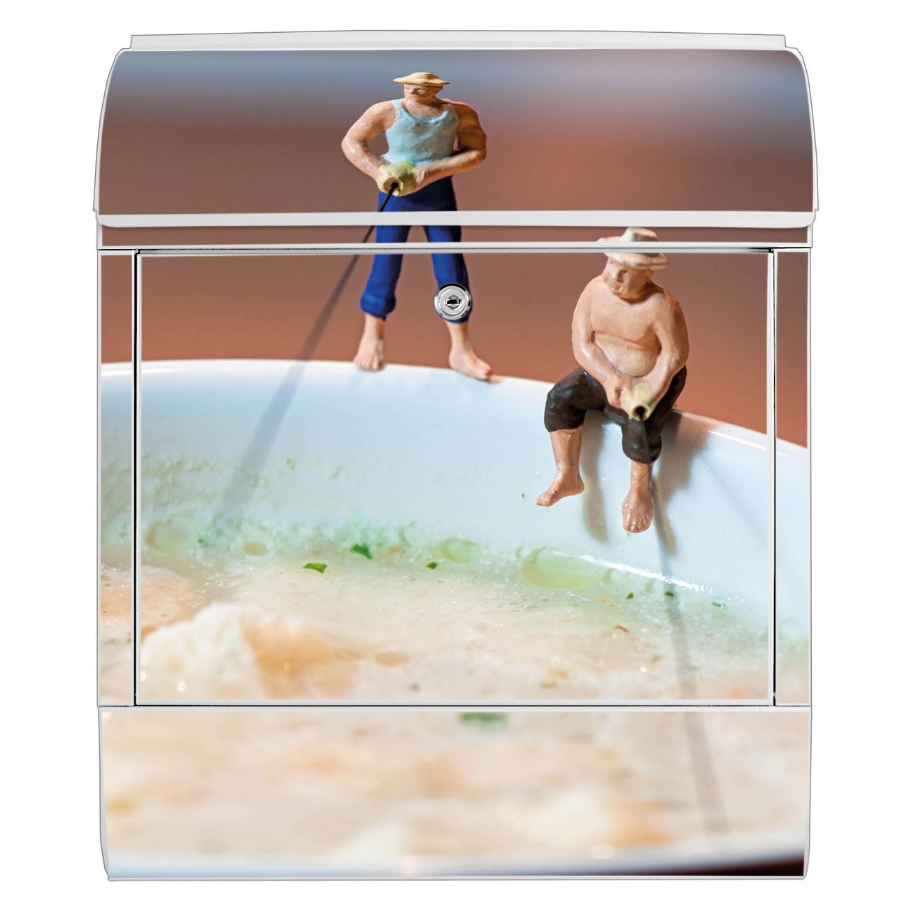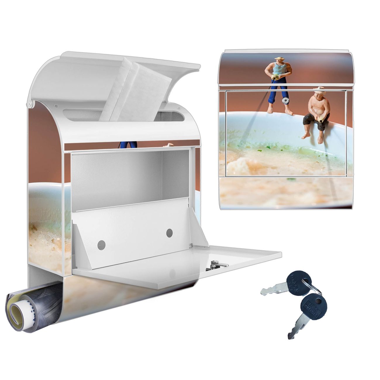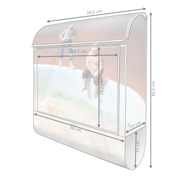DESIGN: Der Postkasten mit Motiv Motiv Männersache hat ein sehr ansprechendes und ausgefallenes Design, damit entlocken Sie Ihren Nachbarn und dem Postboten ein Lächeln. Heben Sie Sich von der tristen grauen Masse ab, ohne auf Funktionalität zu verzichten. DETAILS: Der Postkasten besteht aus pulverbeschichtetem Stahl. Er ist 38x46x12,5cm groß. Das Motiv besteht aus einer wetter- und UV-resistenten Folie, die mit einem Schutzlaminat überzogen ist, sodass der Briefkasten zusätzlich vor Kratzern geschützt ist. Der Briefkasten wird mit Montagematerial, zusätzlich zwei Schlüssel sowie einer Bohrschablone geliefert. NUTZEN: Sie können diesen Briefkasten sowohl als Wandbriefkasten montieren oder einen passenden Ständer kaufen und als Standbriefkasten einbetonieren. Die Größe bietet genügend Platz für Sendungen aller Art, der Einwurf fasst auch größere A4 Sendungen. BANJADO: Ihr Briefkasten wird in Sachsen in einer kleinen Manufaktur von Hand veredelt. Die Motivfolie ist lösungsmittelfrei und schutzlaminiert für einen langen Halt. Wir legen großen Wert auf die Verbindung von Funktionalität und Design. Sie erhalten Handarbeit aus Sachsen.