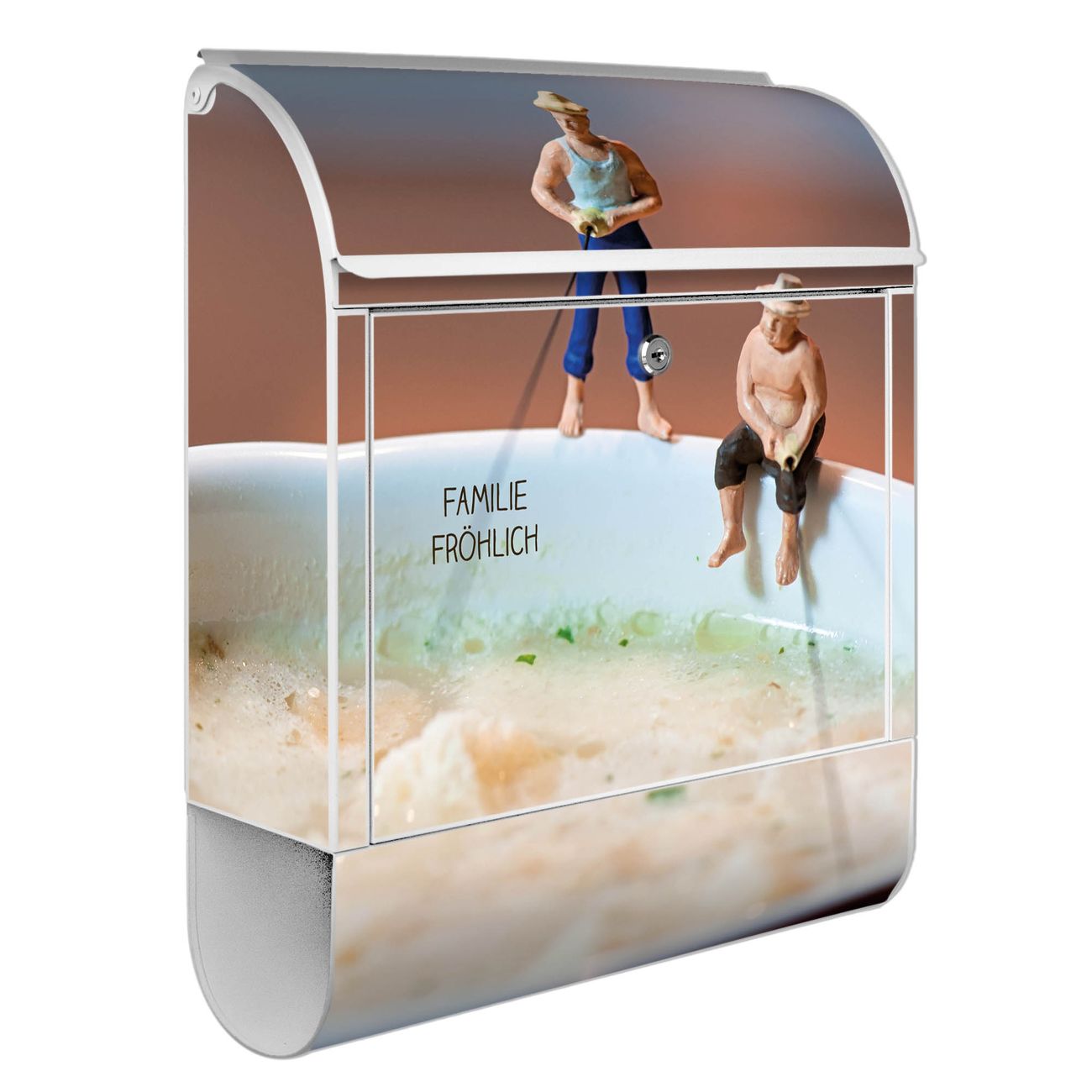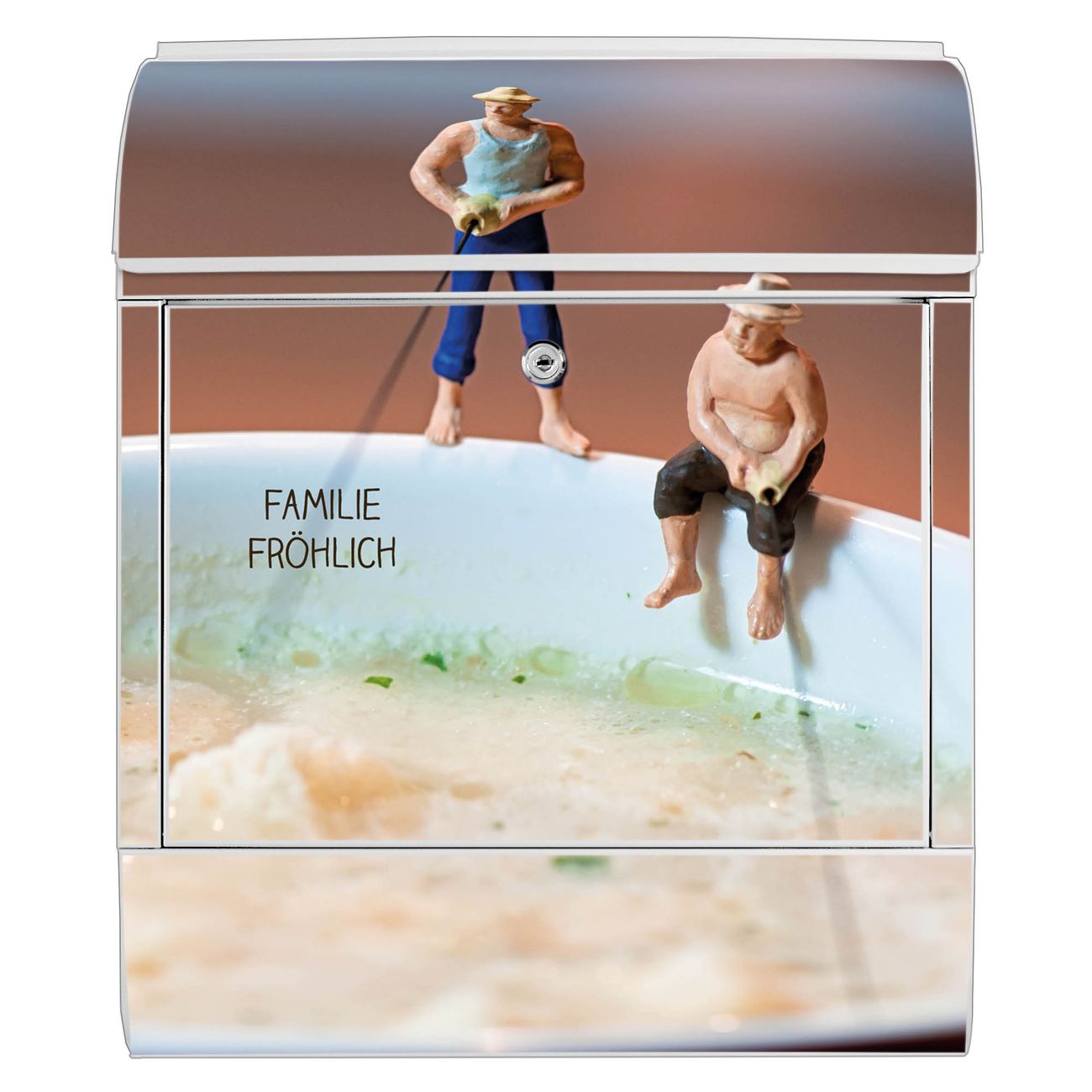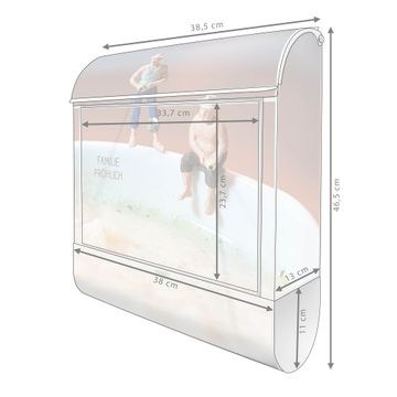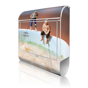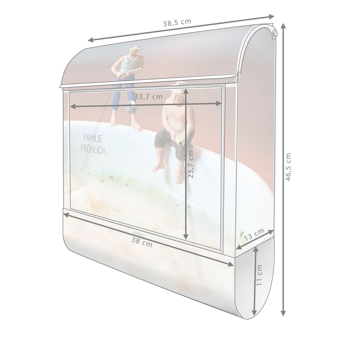 DESIGN: Der Postkasten mit Motiv Motiv Männersache hat ein sehr ansprechendes und ausgefallenes Design, damit entlocken Sie Ihren Nachbarn und dem Postboten ein Lächeln. Heben Sie Sich von der tristen grauen Masse ab, ohne auf Funktionalität zu verzichten. DETAILS: Der Postkasten besteht aus pulverbeschichtetem Stahl. Er ist 38x46x12,5cm groß. Das Motiv besteht aus einer wetter- und UV-resistenten Folie, die mit einem Schutzlaminat überzogen ist, sodass der Briefkasten zusätzlich vor Kratzern geschützt ist. Der Briefkasten wird mit Montagematerial, zusätzlich zwei Schlüssel sowie einer Bohrschablone geliefert. NUTZEN: Sie können diesen Briefkasten sowohl als Wandbriefkasten montieren oder einen passenden Ständer kaufen und als Standbriefkasten einbetonieren. Die Größe bietet genügend Platz für Sendungen aller Art, der Einwurf fasst auch größere A4 Sendungen. BANJADO: Ihr Briefkasten wird in Sachsen in einer kleinen Manufaktur von Hand veredelt. Die Motivfolie ist lösungsmittelfrei und schutzlaminiert für einen langen Halt. Wir legen großen Wert auf die Verbindung von Funktionalität und Design. Sie erhalten Handarbeit aus Sachsen.