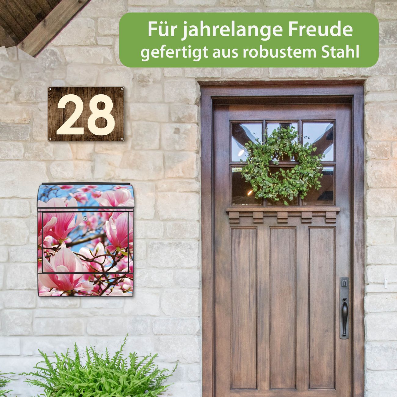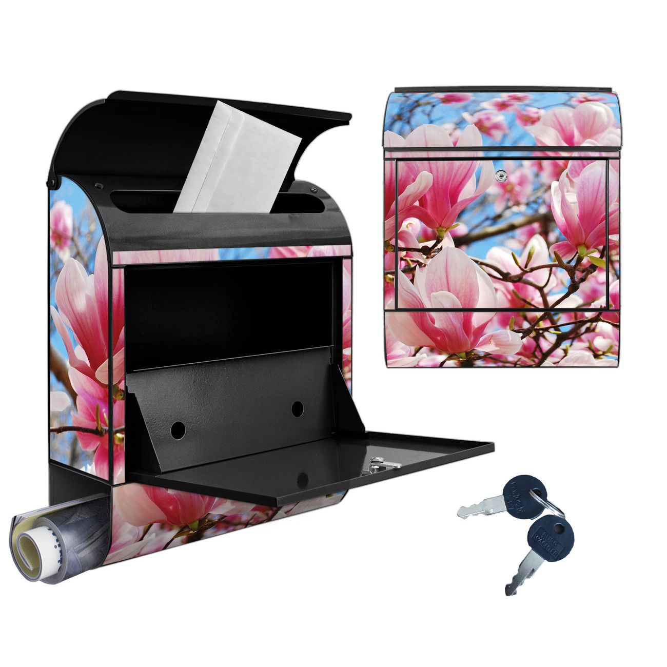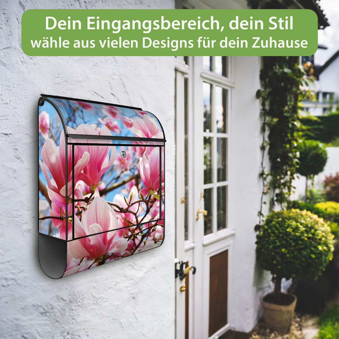 Großer Stahl Briefkasten Motiv Magnolienbaum