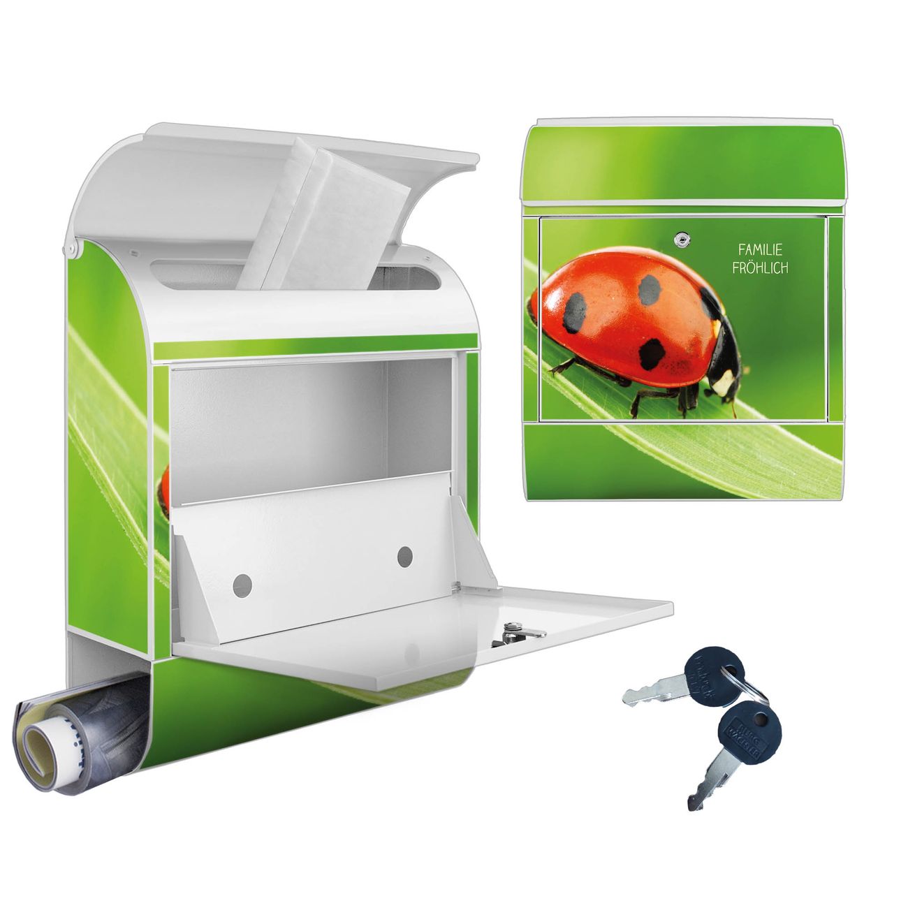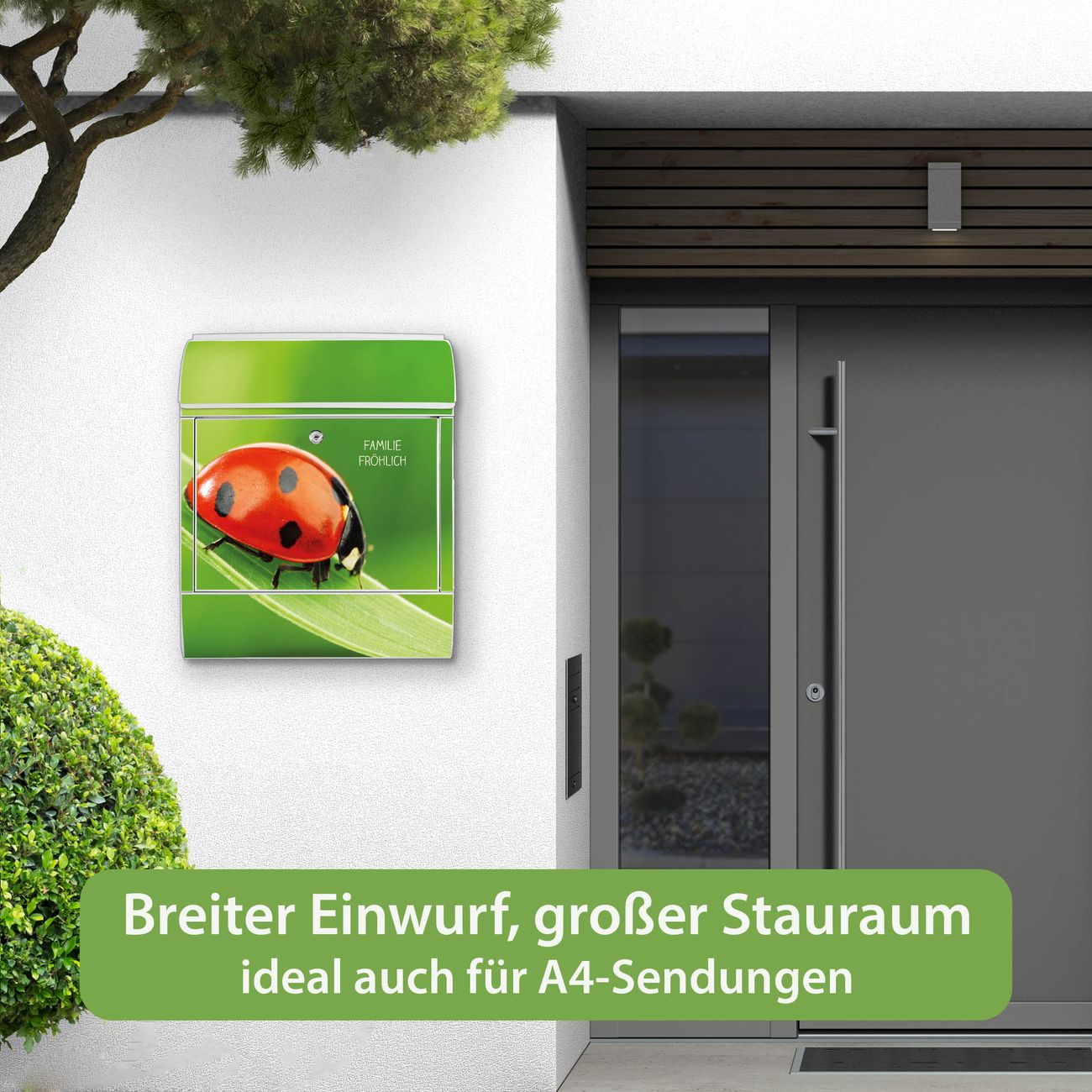 Großer Stahl Briefkasten Motiv Marienkäfer
