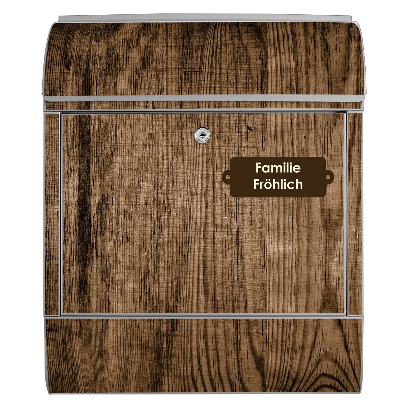 Großer Stahl Briefkasten Motiv Maserung Dunkel
