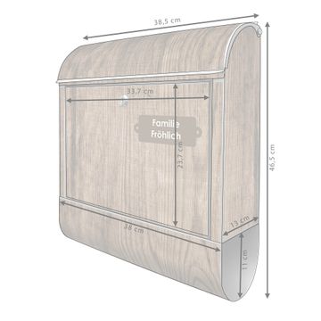 DESIGN: Der Postkasten mit Motiv Motiv Maserung Dunkel hat ein sehr ansprechendes und ausgefallenes Design, damit entlocken Sie Ihren Nachbarn und dem Postboten ein Lächeln. Heben Sie Sich von der tristen grauen Masse ab, ohne auf Funktionalität zu verzichten. DETAILS: Der Postkasten besteht aus pulverbeschichtetem Stahl. Er ist 38x46x12,5cm groß. Das Motiv besteht aus einer wetter- und UV-resistenten Folie, die mit einem Schutzlaminat überzogen ist, sodass der Briefkasten zusätzlich vor Kratzern geschützt ist. Der Briefkasten wird mit Montagematerial, zusätzlich zwei Schlüssel sowie einer Bohrschablone geliefert. NUTZEN: Sie können diesen Briefkasten sowohl als Wandbriefkasten montieren oder einen passenden Ständer kaufen und als Standbriefkasten einbetonieren. Die Größe bietet genügend Platz für Sendungen aller Art, der Einwurf fasst auch größere A4 Sendungen. BANJADO: Ihr Briefkasten wird in Sachsen in einer kleinen Manufaktur von Hand veredelt. Die Motivfolie ist lösungsmittelfrei und schutzlaminiert für einen langen Halt. Wir legen großen Wert auf die Verbindung von Funktionalität und Design. Sie erhalten Handarbeit aus Sachsen.