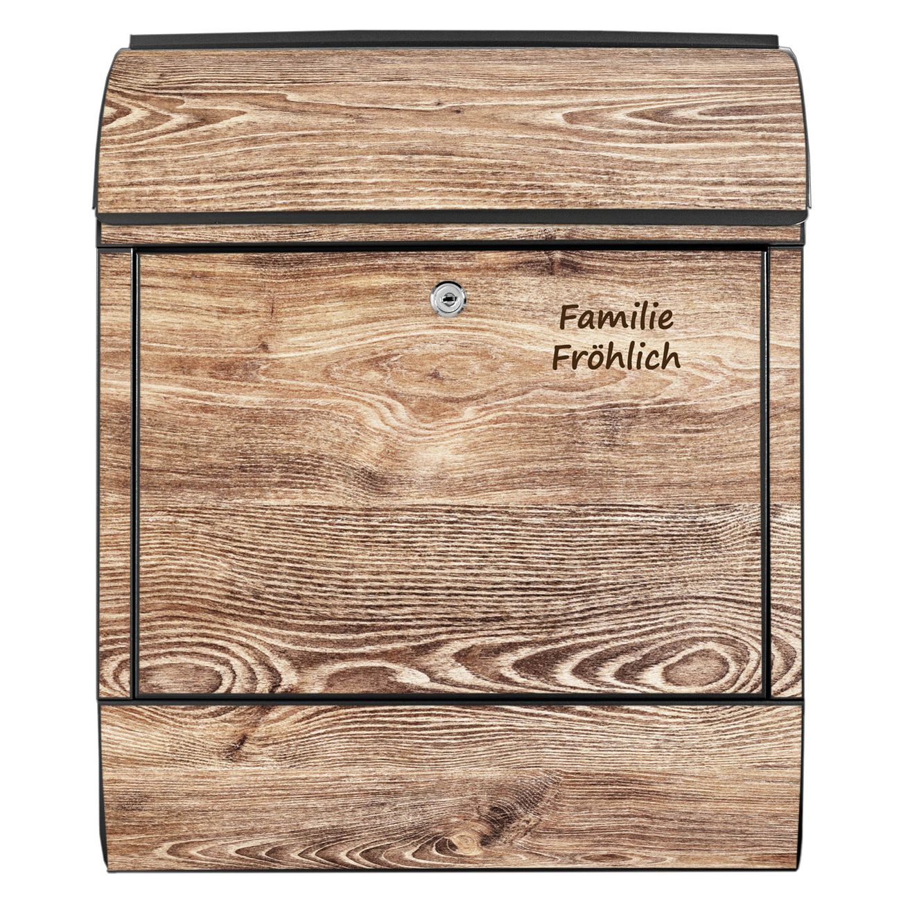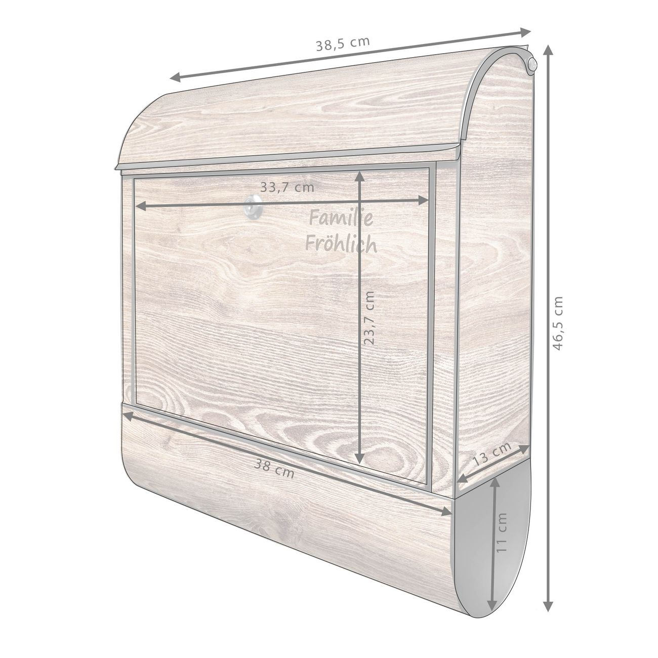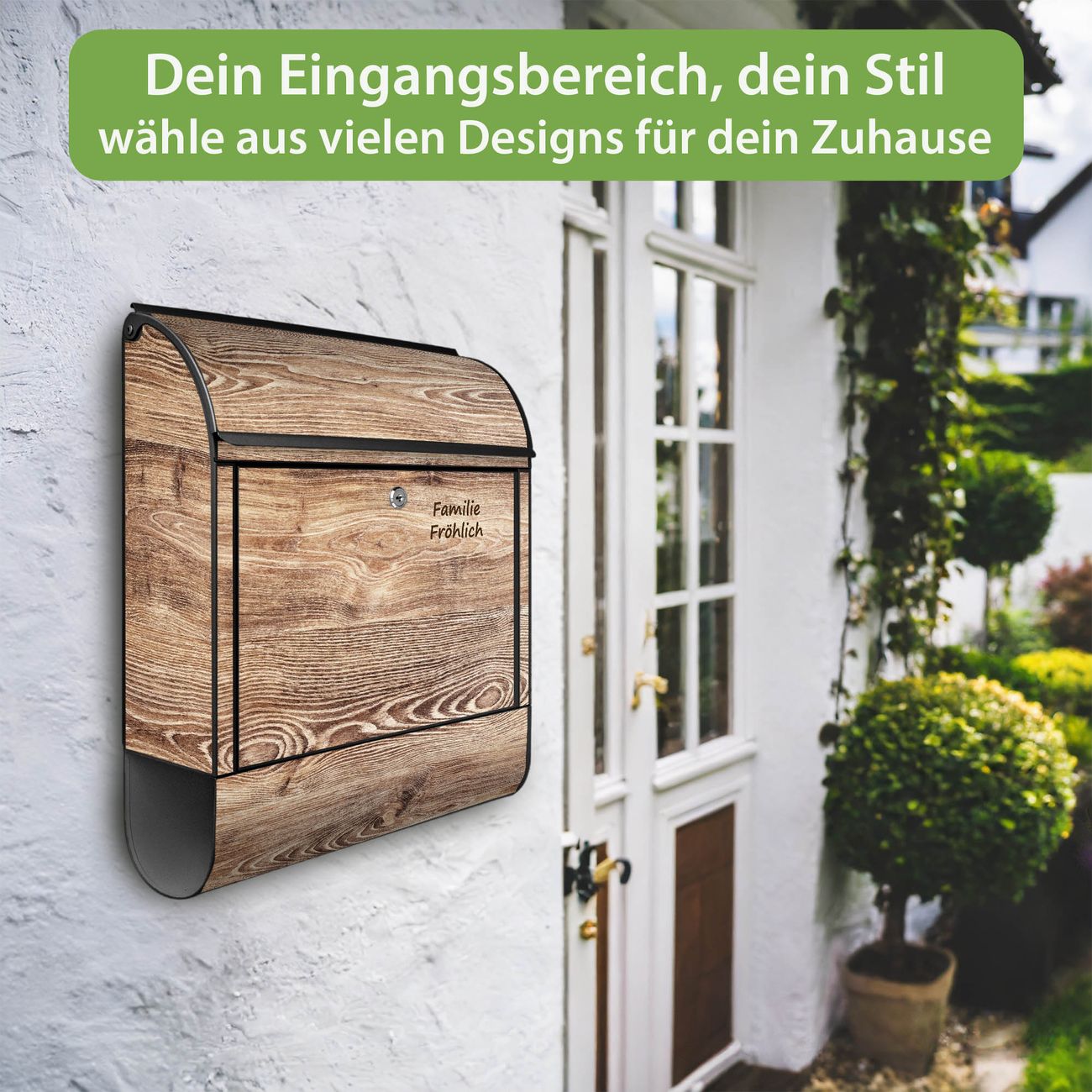 DESIGN: Der Postkasten mit Motiv Motiv Maserung hat ein sehr ansprechendes und ausgefallenes Design, damit entlocken Sie Ihren Nachbarn und dem Postboten ein Lächeln. Heben Sie Sich von der tristen grauen Masse ab, ohne auf Funktionalität zu verzichten. DETAILS: Der Postkasten besteht aus pulverbeschichtetem Stahl. Er ist 38x46x12,5cm groß. Das Motiv besteht aus einer wetter- und UV-resistenten Folie, die mit einem Schutzlaminat überzogen ist, sodass der Briefkasten zusätzlich vor Kratzern geschützt ist. Der Briefkasten wird mit Montagematerial, zusätzlich zwei Schlüssel sowie einer Bohrschablone geliefert. NUTZEN: Sie können diesen Briefkasten sowohl als Wandbriefkasten montieren oder einen passenden Ständer kaufen und als Standbriefkasten einbetonieren. Die Größe bietet genügend Platz für Sendungen aller Art, der Einwurf fasst auch größere A4 Sendungen. BANJADO: Ihr Briefkasten wird in Sachsen in einer kleinen Manufaktur von Hand veredelt. Die Motivfolie ist lösungsmittelfrei und schutzlaminiert für einen langen Halt. Wir legen großen Wert auf die Verbindung von Funktionalität und Design. Sie erhalten Handarbeit aus Sachsen.