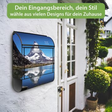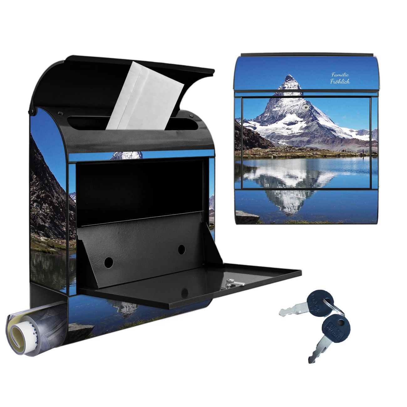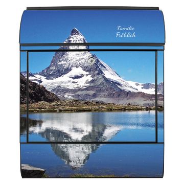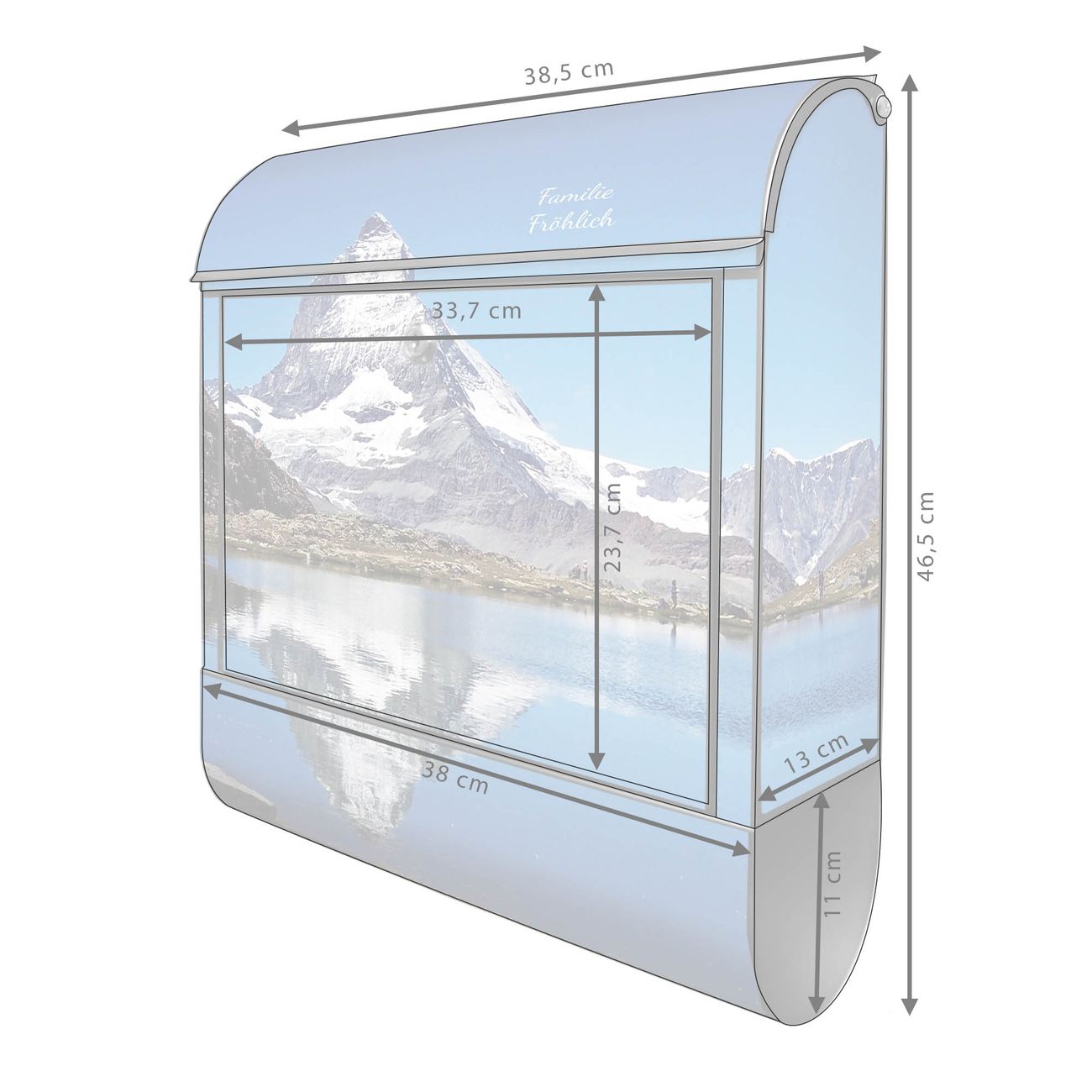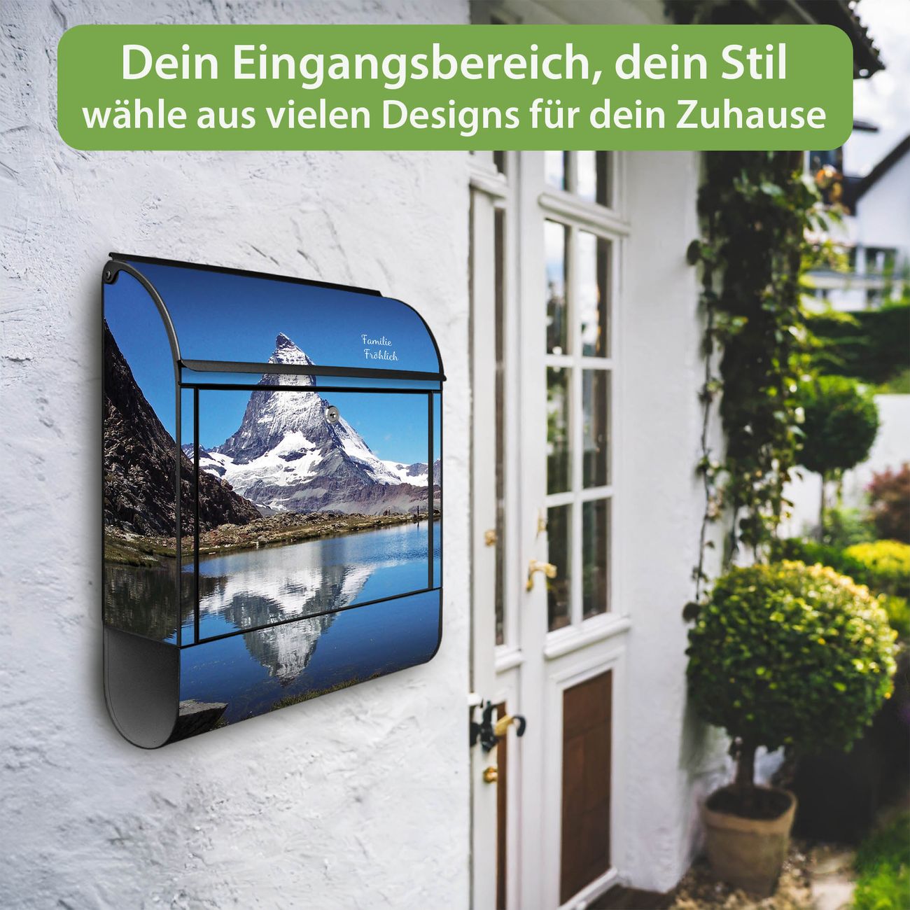 DESIGN: Der Postkasten mit Motiv Motiv Matterhorn hat ein sehr ansprechendes und ausgefallenes Design, damit entlocken Sie Ihren Nachbarn und dem Postboten ein Lächeln. Heben Sie Sich von der tristen grauen Masse ab, ohne auf Funktionalität zu verzichten. DETAILS: Der Postkasten besteht aus pulverbeschichtetem Stahl. Er ist 38x46x12,5cm groß. Das Motiv besteht aus einer wetter- und UV-resistenten Folie, die mit einem Schutzlaminat überzogen ist, sodass der Briefkasten zusätzlich vor Kratzern geschützt ist. Der Briefkasten wird mit Montagematerial, zusätzlich zwei Schlüssel sowie einer Bohrschablone geliefert. NUTZEN: Sie können diesen Briefkasten sowohl als Wandbriefkasten montieren oder einen passenden Ständer kaufen und als Standbriefkasten einbetonieren. Die Größe bietet genügend Platz für Sendungen aller Art, der Einwurf fasst auch größere A4 Sendungen. BANJADO: Ihr Briefkasten wird in Sachsen in einer kleinen Manufaktur von Hand veredelt. Die Motivfolie ist lösungsmittelfrei und schutzlaminiert für einen langen Halt. Wir legen großen Wert auf die Verbindung von Funktionalität und Design. Sie erhalten Handarbeit aus Sachsen.