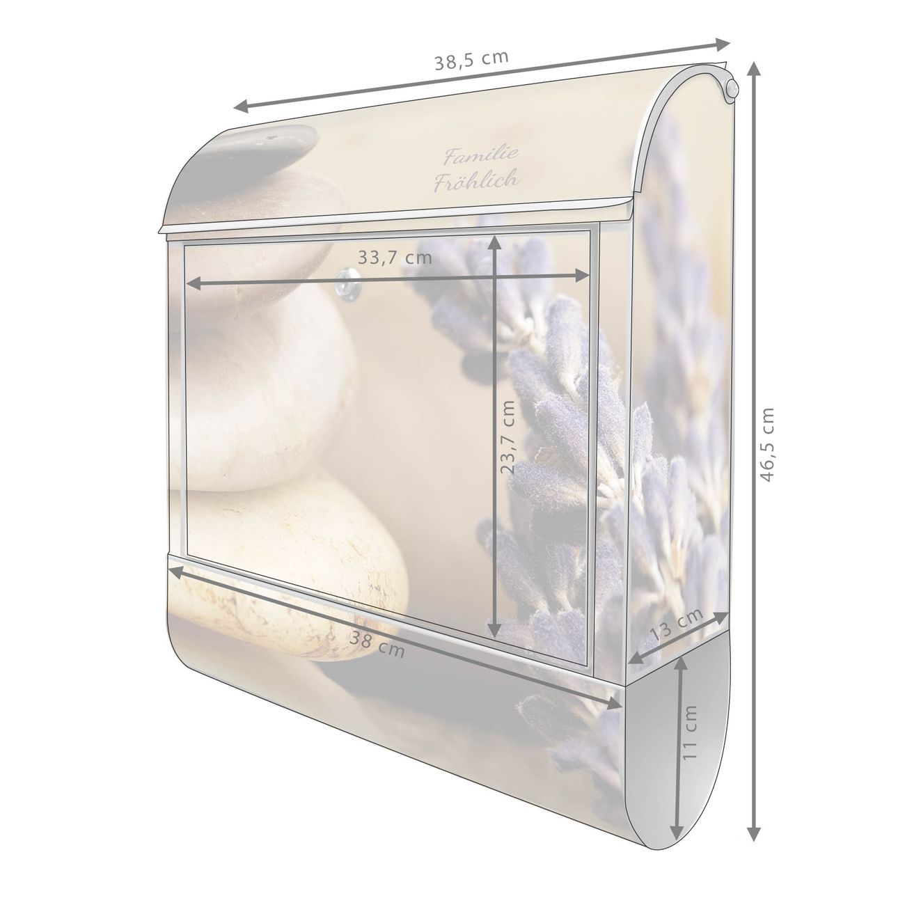 Der Vorschau-Text Familie Fröhlich wird durch Ihren persönlichen Wunschtext ersetzt. Die Schriftart und Farbe bleiben gleich wie in der Vorschau.