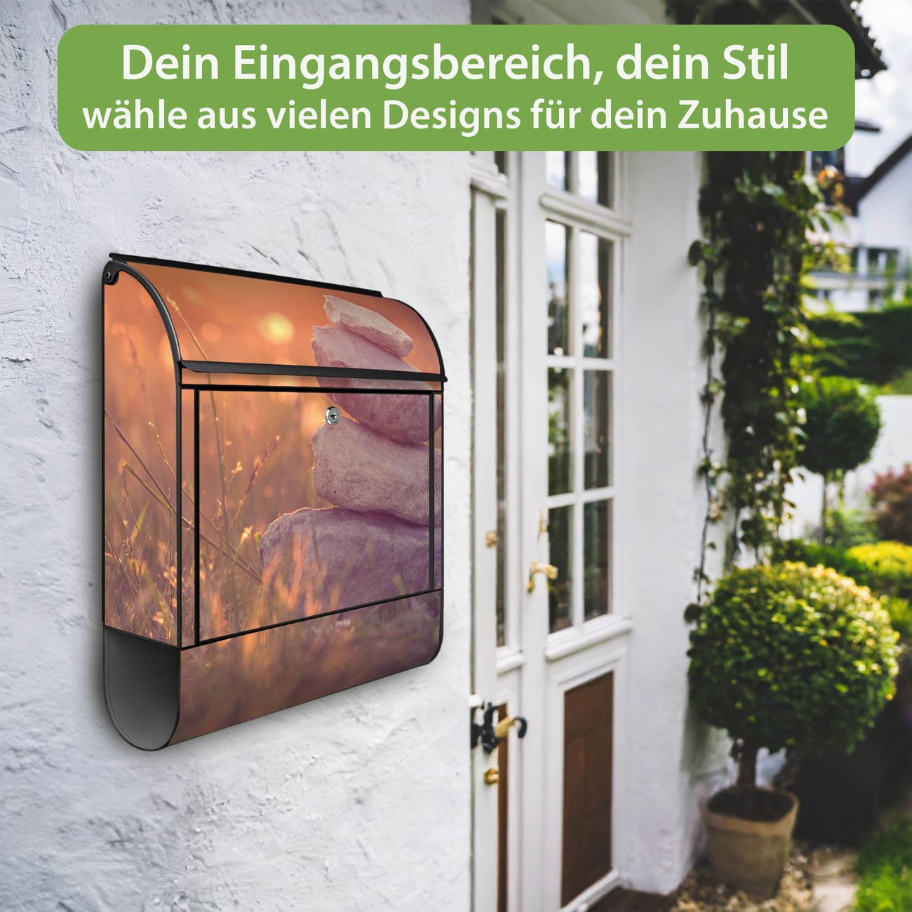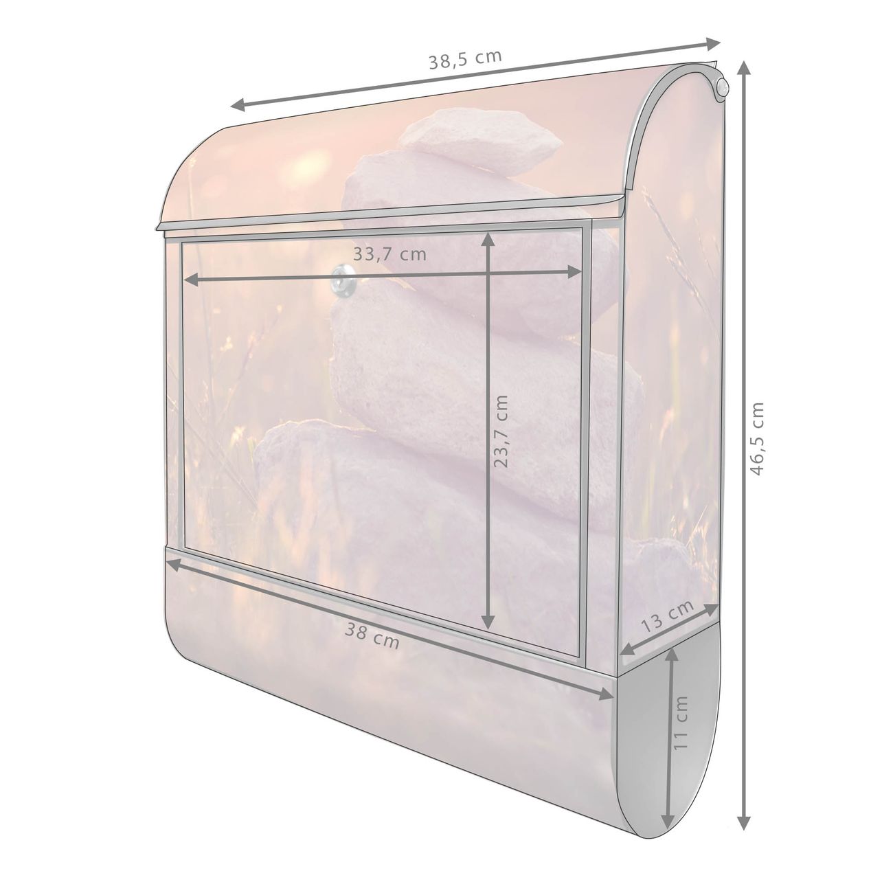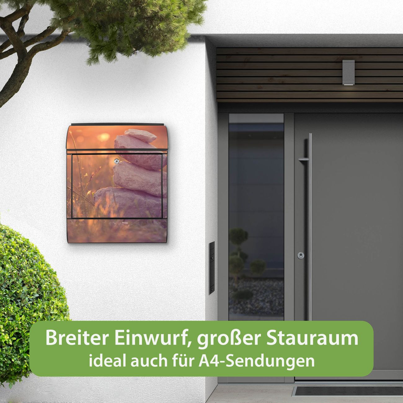 DESIGN: Der Postkasten mit Motiv Motiv Mein Ort hat ein sehr ansprechendes und ausgefallenes Design, damit entlocken Sie Ihren Nachbarn und dem Postboten ein Lächeln. Heben Sie Sich von der tristen grauen Masse ab, ohne auf Funktionalität zu verzichten. DETAILS: Der Postkasten besteht aus pulverbeschichtetem Stahl. Er ist 38x46x12,5cm groß. Das Motiv besteht aus einer wetter- und UV-resistenten Folie, die mit einem Schutzlaminat überzogen ist, sodass der Briefkasten zusätzlich vor Kratzern geschützt ist. Der Briefkasten wird mit Montagematerial, zusätzlich zwei Schlüssel sowie einer Bohrschablone geliefert. NUTZEN: Sie können diesen Briefkasten sowohl als Wandbriefkasten montieren oder einen passenden Ständer kaufen und als Standbriefkasten einbetonieren. Die Größe bietet genügend Platz für Sendungen aller Art, der Einwurf fasst auch größere A4 Sendungen. BANJADO: Ihr Briefkasten wird in Sachsen in einer kleinen Manufaktur von Hand veredelt. Die Motivfolie ist lösungsmittelfrei und schutzlaminiert für einen langen Halt. Wir legen großen Wert auf die Verbindung von Funktionalität und Design. Sie erhalten Handarbeit aus Sachsen.