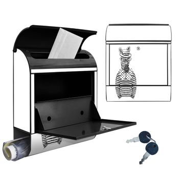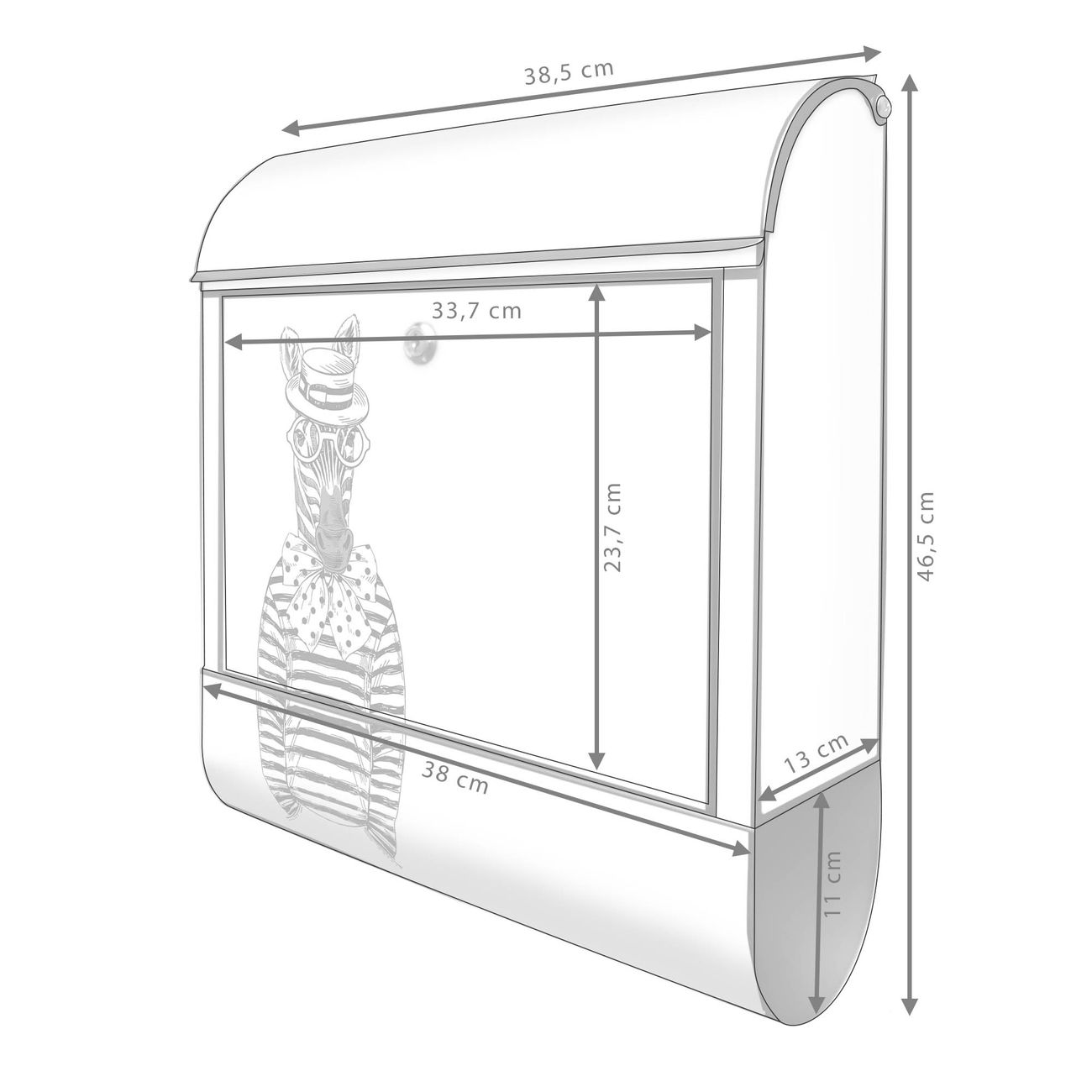 DESIGN: Der Postkasten mit Motiv Motiv Michael Stripes hat ein sehr ansprechendes und ausgefallenes Design, damit entlocken Sie Ihren Nachbarn und dem Postboten ein Lächeln. Heben Sie Sich von der tristen grauen Masse ab, ohne auf Funktionalität zu verzichten. DETAILS: Der Postkasten besteht aus pulverbeschichtetem Stahl. Er ist 38x46x12,5cm groß. Das Motiv besteht aus einer wetter- und UV-resistenten Folie, die mit einem Schutzlaminat überzogen ist, sodass der Briefkasten zusätzlich vor Kratzern geschützt ist. Der Briefkasten wird mit Montagematerial, zusätzlich zwei Schlüssel sowie einer Bohrschablone geliefert. NUTZEN: Sie können diesen Briefkasten sowohl als Wandbriefkasten montieren oder einen passenden Ständer kaufen und als Standbriefkasten einbetonieren. Die Größe bietet genügend Platz für Sendungen aller Art, der Einwurf fasst auch größere A4 Sendungen. BANJADO: Ihr Briefkasten wird in Sachsen in einer kleinen Manufaktur von Hand veredelt. Die Motivfolie ist lösungsmittelfrei und schutzlaminiert für einen langen Halt. Wir legen großen Wert auf die Verbindung von Funktionalität und Design. Sie erhalten Handarbeit aus Sachsen.