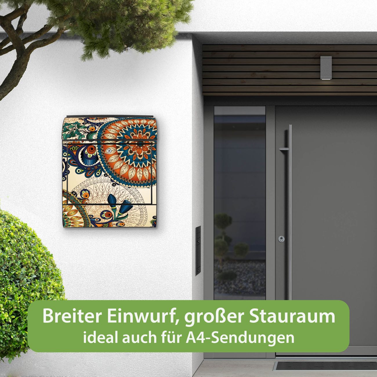 Großer Stahl Briefkasten Motiv Modernes Mandala