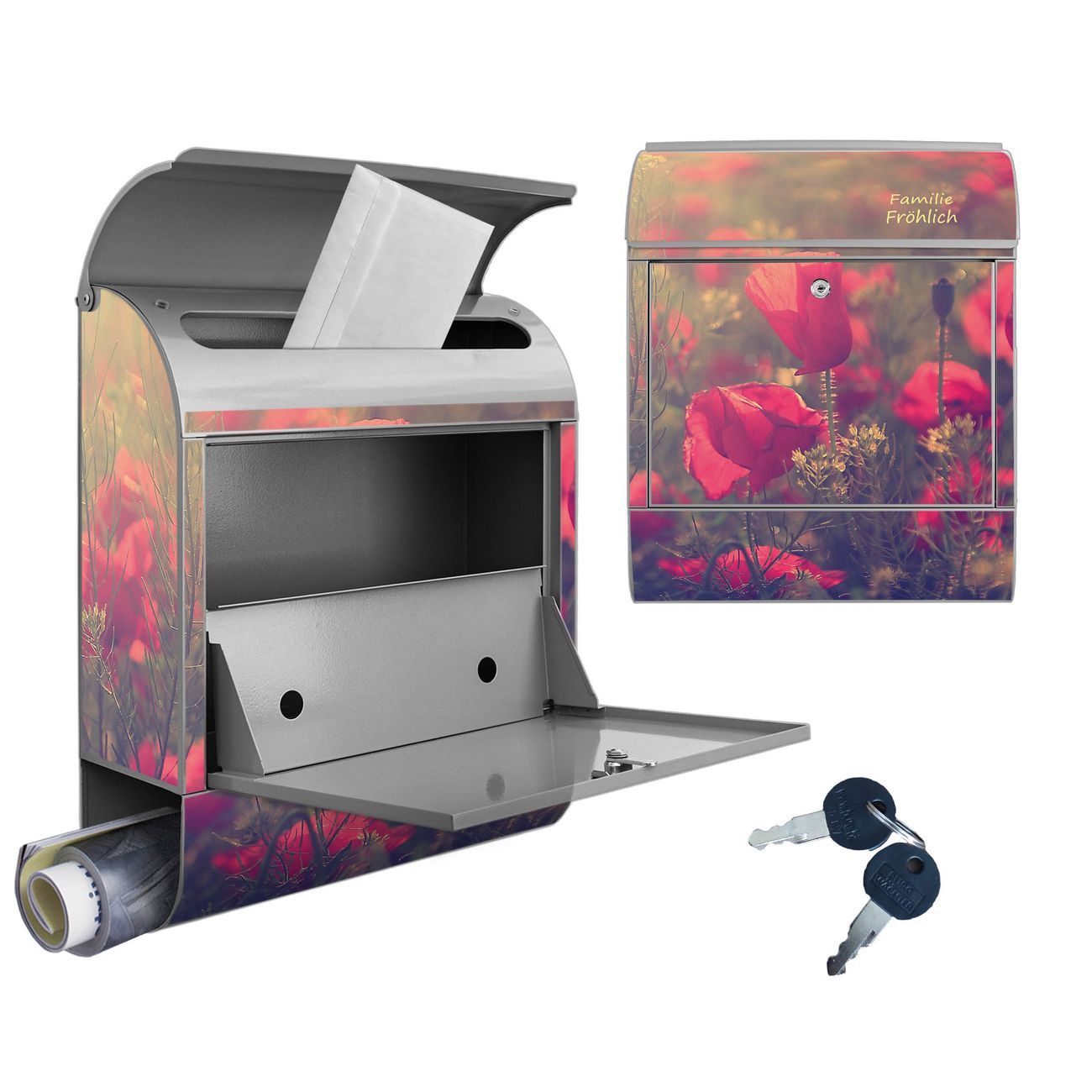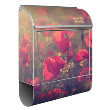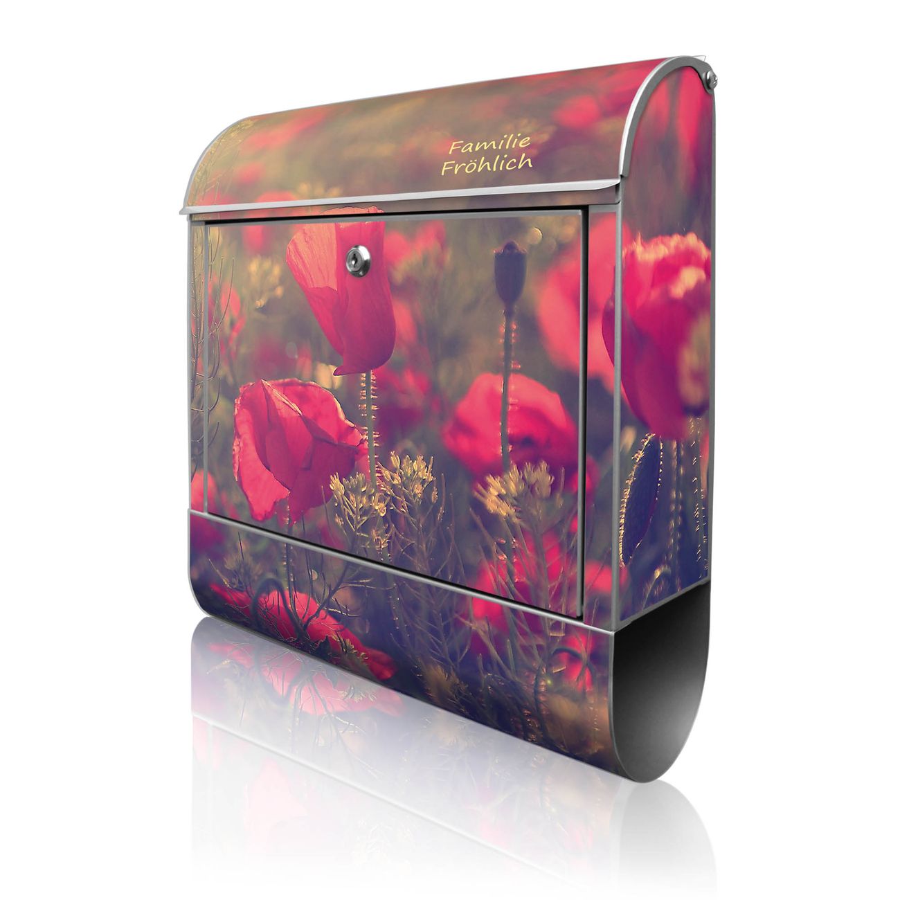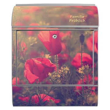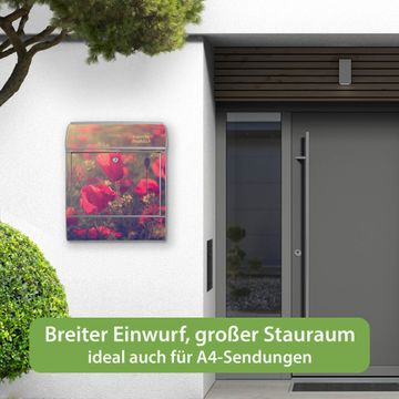 Großer Stahl Briefkasten Motiv Mohn