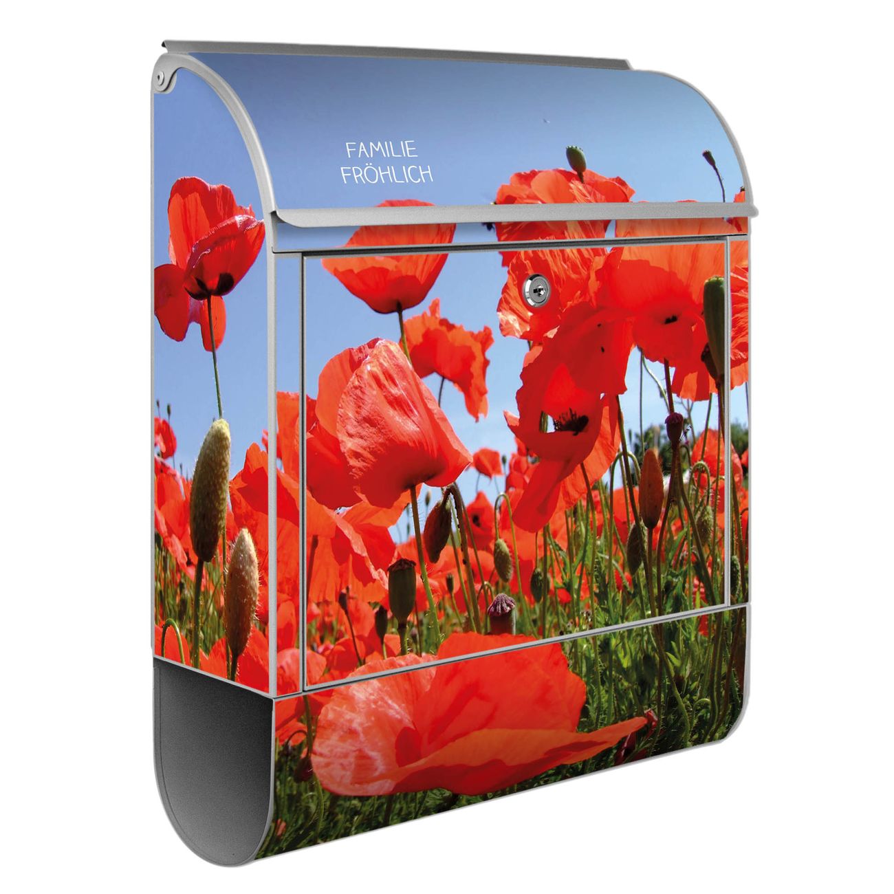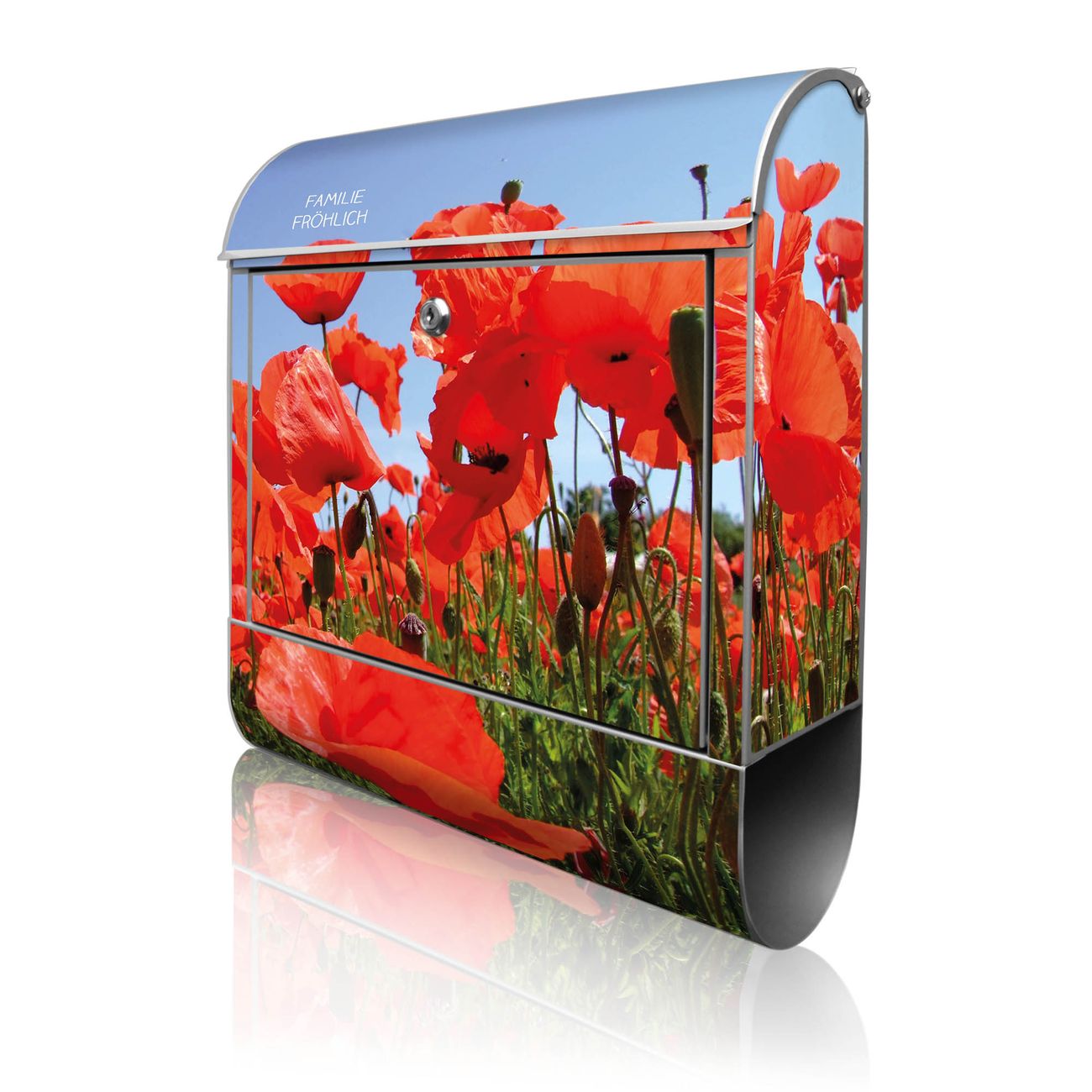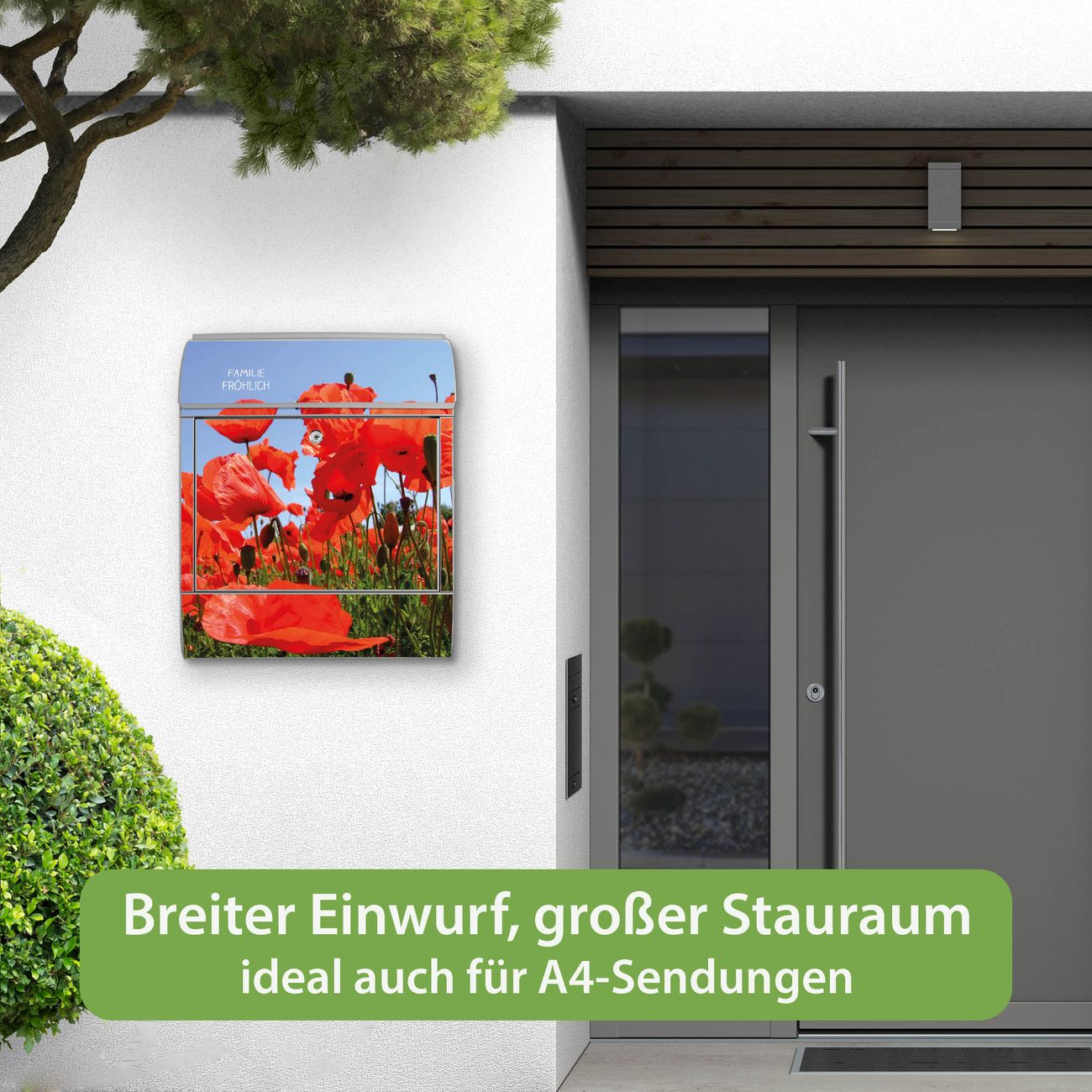 Großer Stahl Briefkasten Motiv Mohnblumen
