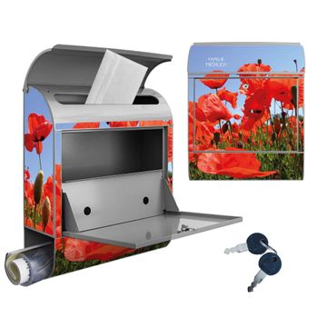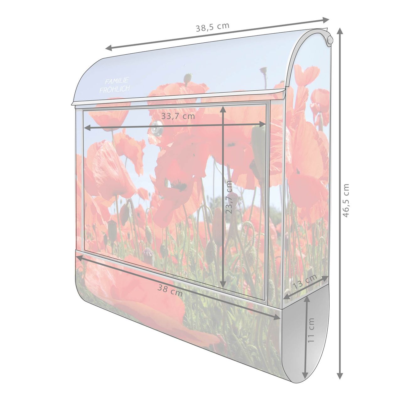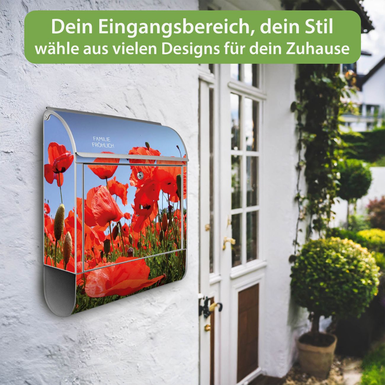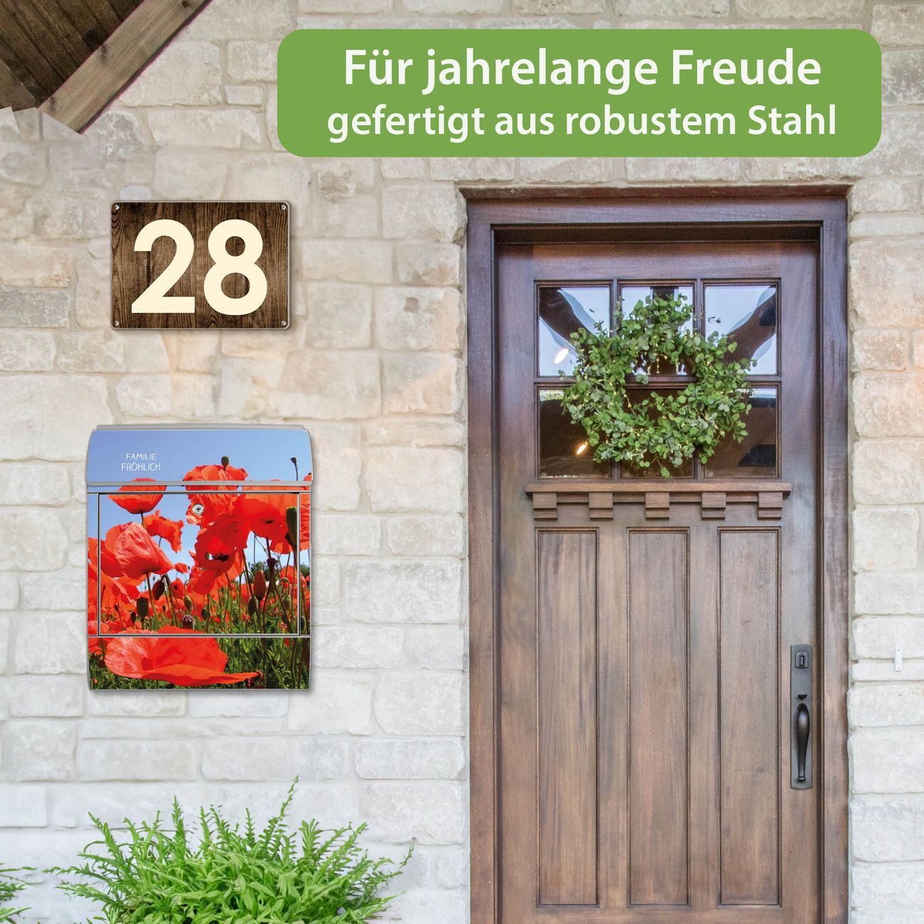 Großer Stahl Briefkasten Motiv Mohnblumen