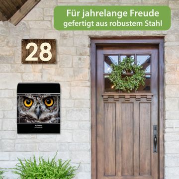 DESIGN: Der Postkasten mit Motiv Motiv Monique hat ein sehr ansprechendes und ausgefallenes Design, damit entlocken Sie Ihren Nachbarn und dem Postboten ein Lächeln. Heben Sie Sich von der tristen grauen Masse ab, ohne auf Funktionalität zu verzichten. DETAILS: Der Postkasten besteht aus pulverbeschichtetem Stahl. Er ist 38x46x12,5cm groß. Das Motiv besteht aus einer wetter- und UV-resistenten Folie, die mit einem Schutzlaminat überzogen ist, sodass der Briefkasten zusätzlich vor Kratzern geschützt ist. Der Briefkasten wird mit Montagematerial, zusätzlich zwei Schlüssel sowie einer Bohrschablone geliefert. NUTZEN: Sie können diesen Briefkasten sowohl als Wandbriefkasten montieren oder einen passenden Ständer kaufen und als Standbriefkasten einbetonieren. Die Größe bietet genügend Platz für Sendungen aller Art, der Einwurf fasst auch größere A4 Sendungen. BANJADO: Ihr Briefkasten wird in Sachsen in einer kleinen Manufaktur von Hand veredelt. Die Motivfolie ist lösungsmittelfrei und schutzlaminiert für einen langen Halt. Wir legen großen Wert auf die Verbindung von Funktionalität und Design. Sie erhalten Handarbeit aus Sachsen.