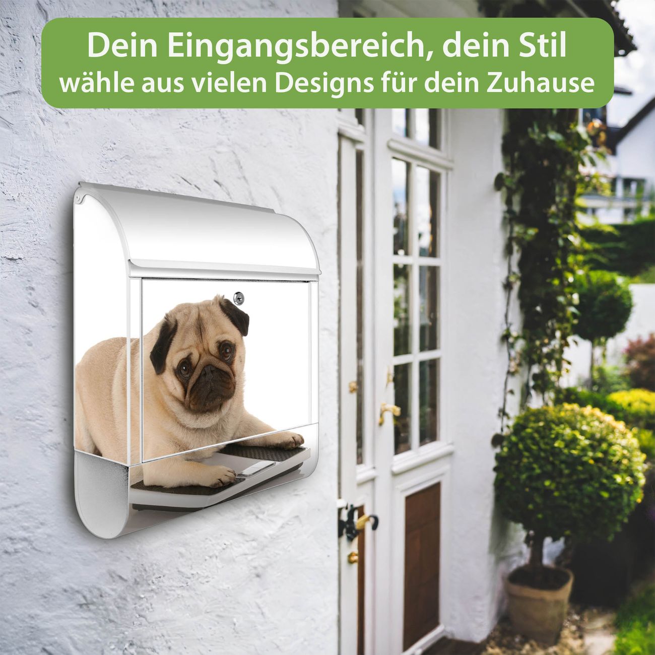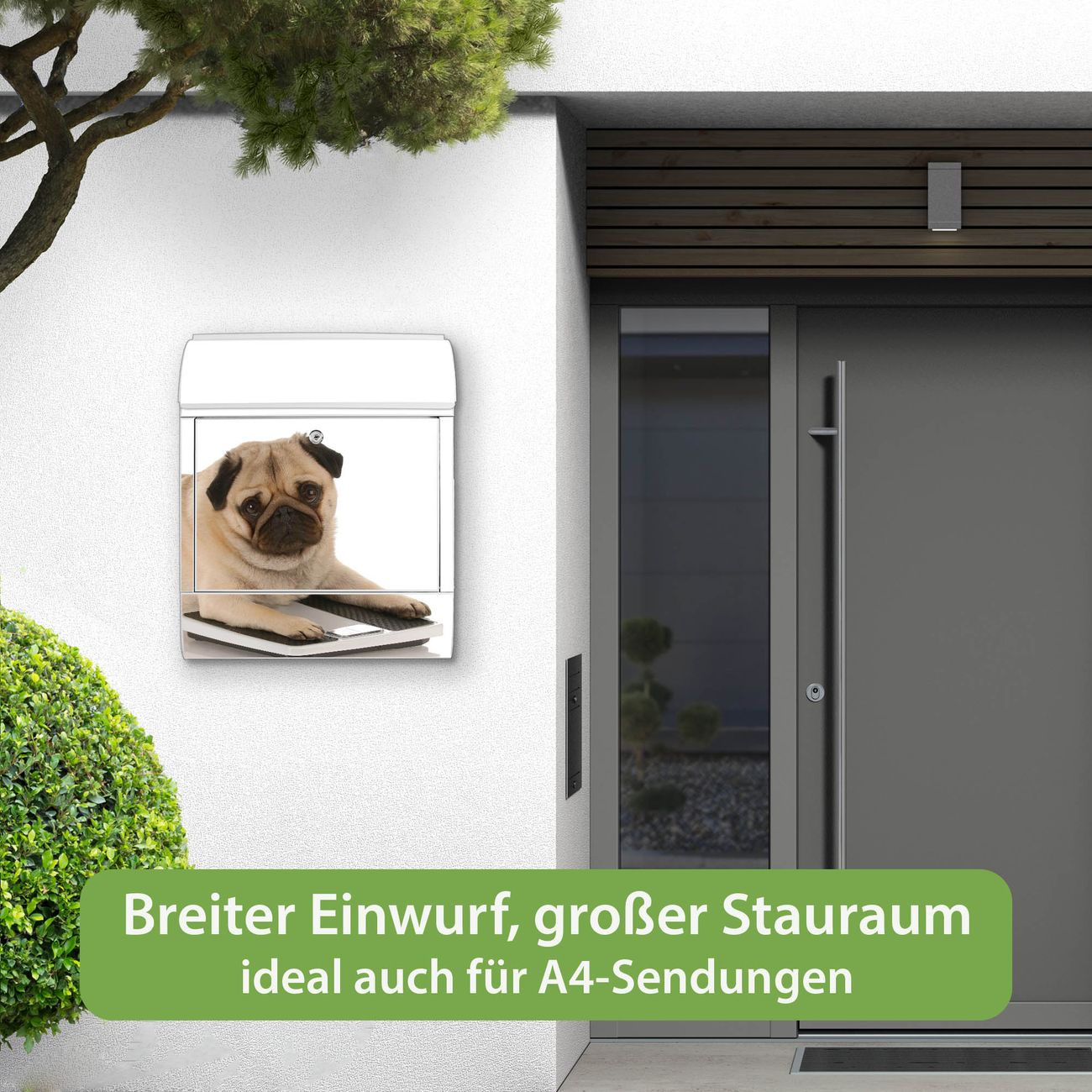 Großer Stahl Briefkasten Motiv Mops