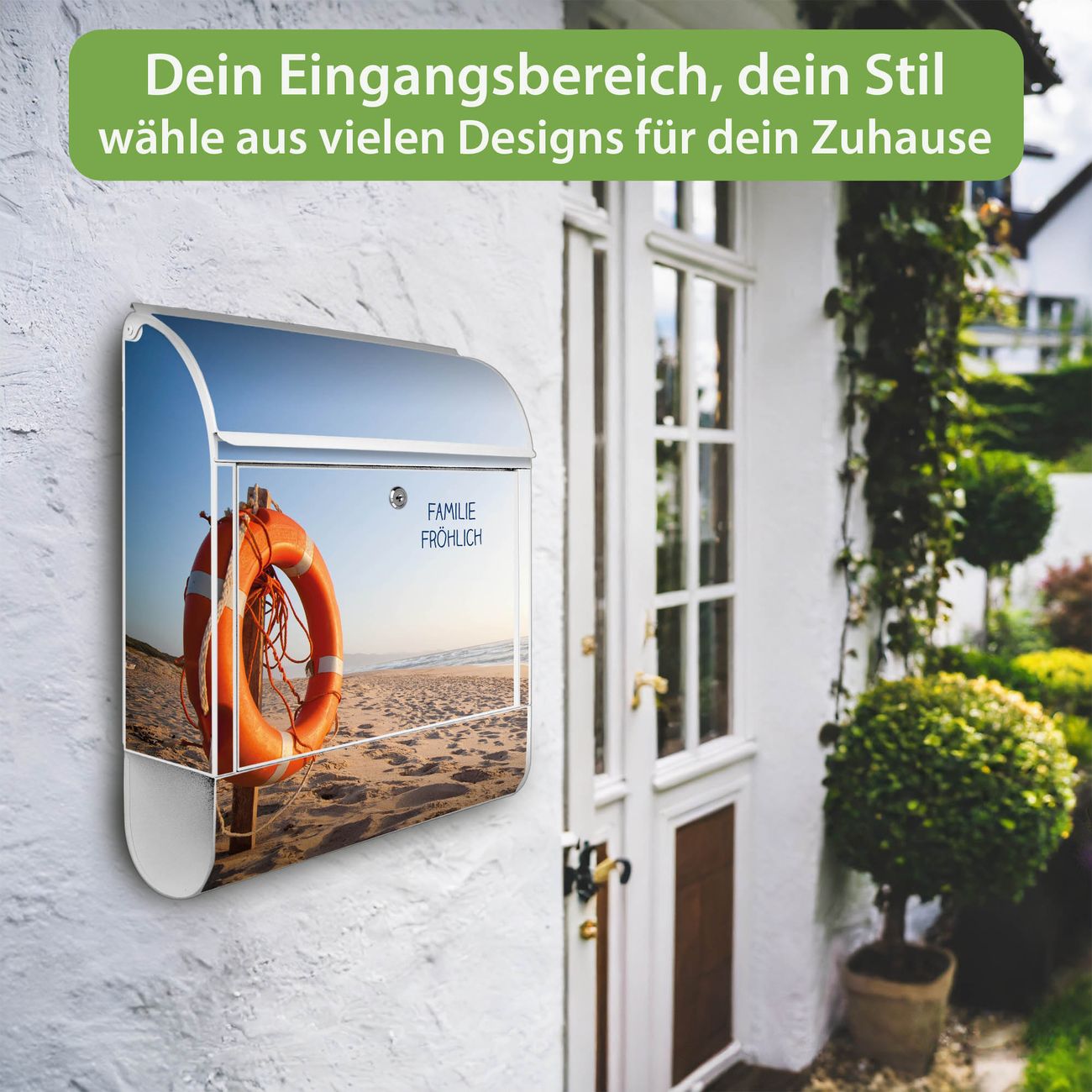 Großer Stahl Briefkasten Motiv Morgens Am Strand