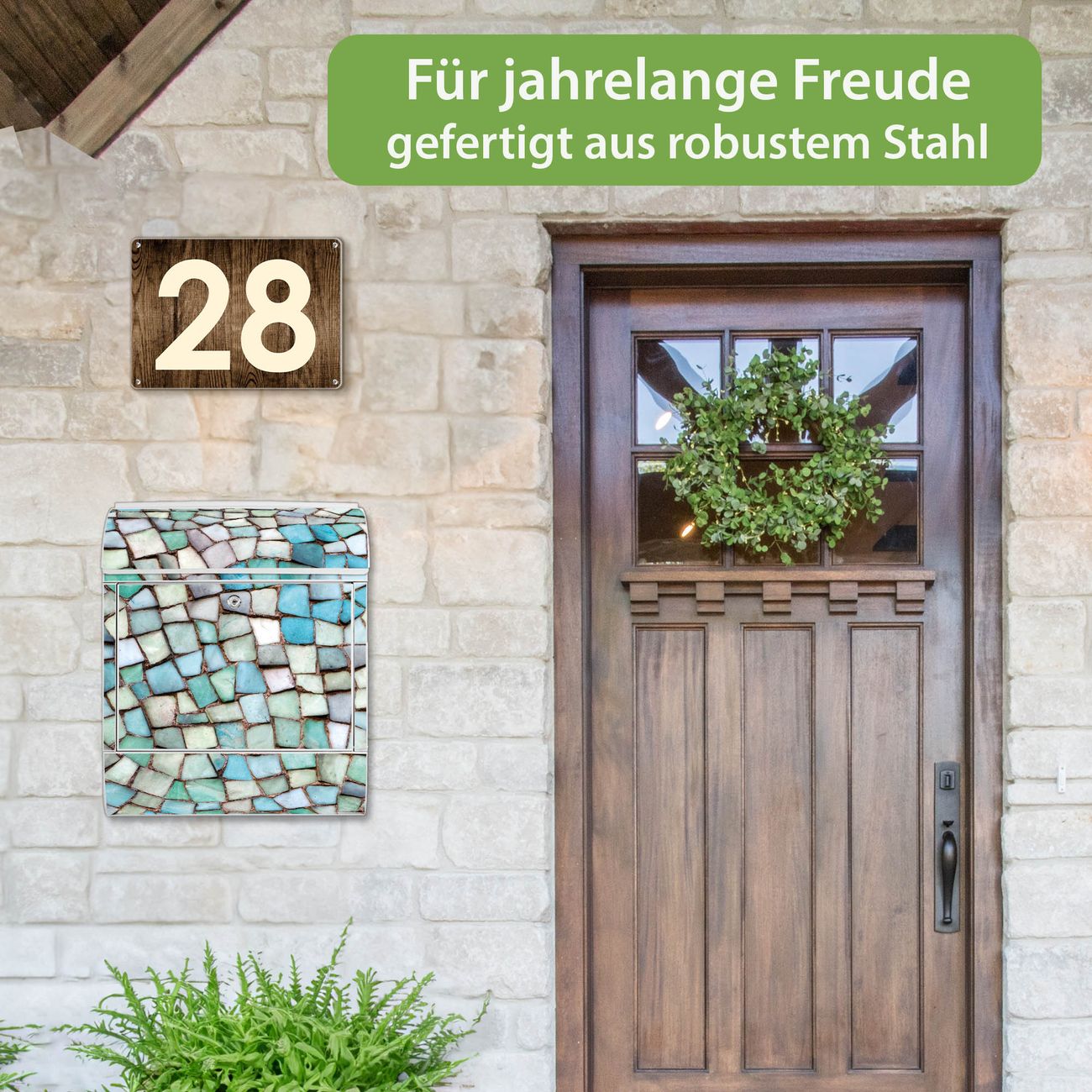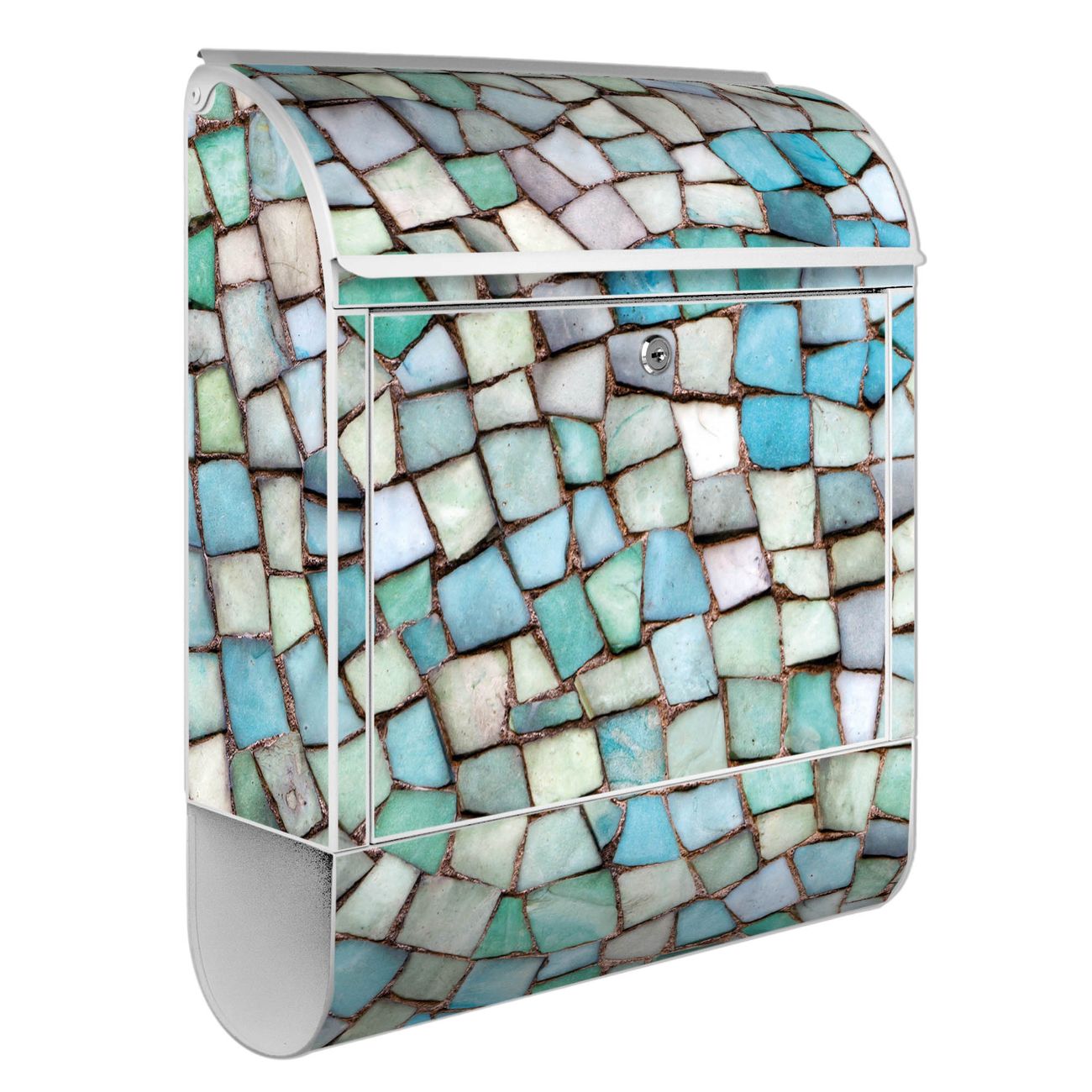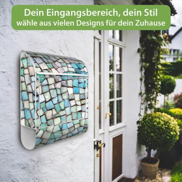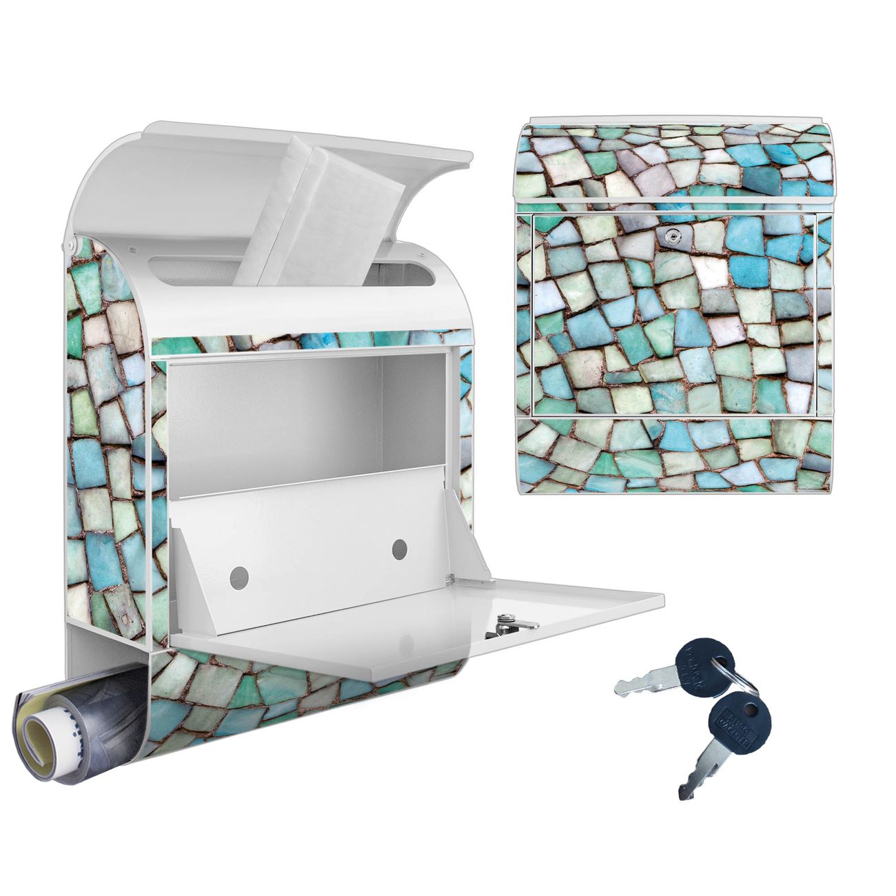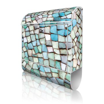 Großer Stahl Briefkasten Motiv Mosaik Blau