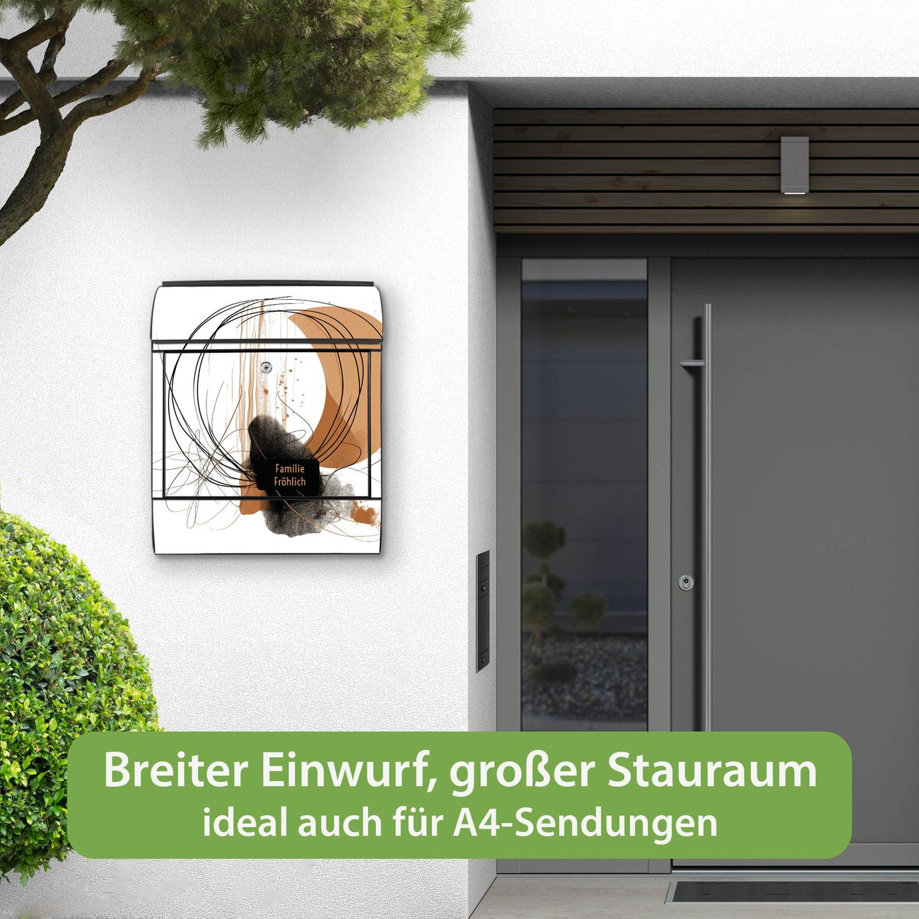 Großer Stahl Briefkasten Motiv Abstrakte Kreisformen