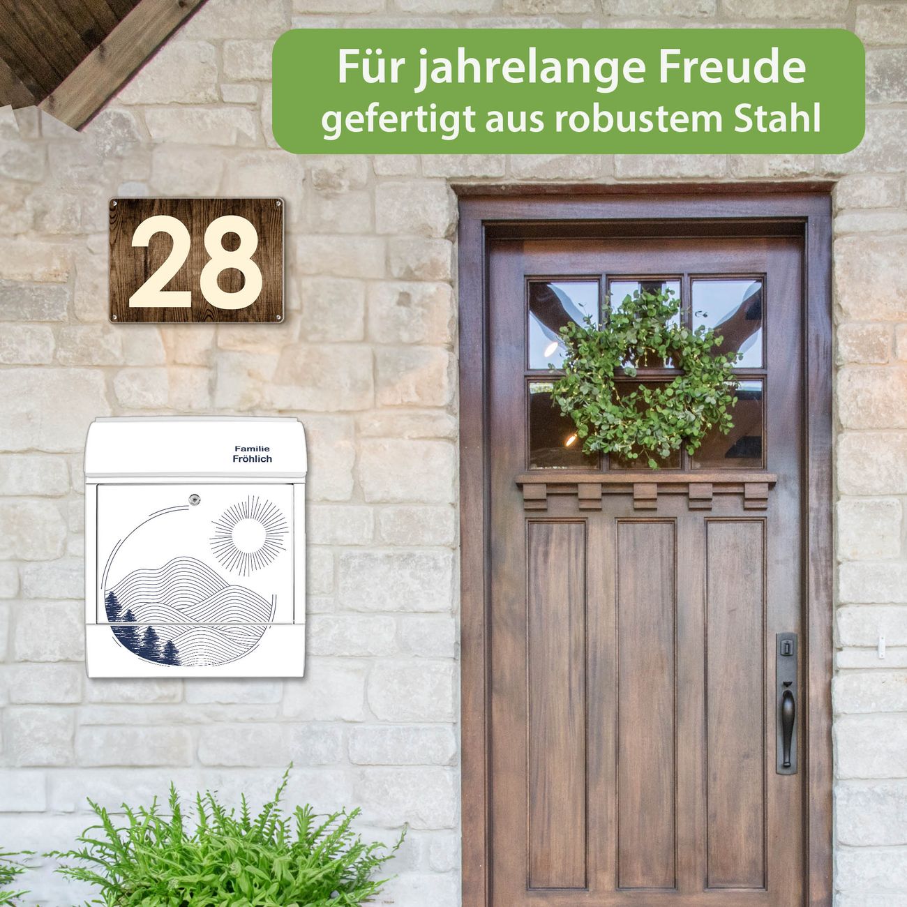 Der Vorschau-Text Familie Fröhlich wird durch Ihren persönlichen Wunschtext ersetzt. Die Schriftart und Farbe bleiben gleich wie in der Vorschau.