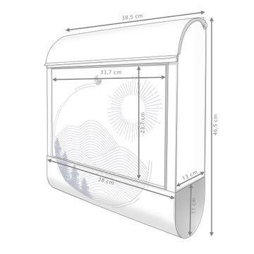 DESIGN: Der Postkasten mit Motiv Motiv Abstrakte Landschaft hat ein sehr ansprechendes und ausgefallenes Design, damit entlocken Sie Ihren Nachbarn und dem Postboten ein Lächeln. Heben Sie Sich von der tristen grauen Masse ab, ohne auf Funktionalität zu verzichten. DETAILS: Der Postkasten besteht aus pulverbeschichtetem Stahl. Er ist 38x46x12,5cm groß. Das Motiv besteht aus einer wetter- und UV-resistenten Folie, die mit einem Schutzlaminat überzogen ist, sodass der Briefkasten zusätzlich vor Kratzern geschützt ist. Der Briefkasten wird mit Montagematerial, zusätzlich zwei Schlüssel sowie einer Bohrschablone geliefert. NUTZEN: Sie können diesen Briefkasten sowohl als Wandbriefkasten montieren oder einen passenden Ständer kaufen und als Standbriefkasten einbetonieren. Die Größe bietet genügend Platz für Sendungen aller Art, der Einwurf fasst auch größere A4 Sendungen. BANJADO: Ihr Briefkasten wird in Sachsen in einer kleinen Manufaktur von Hand veredelt. Die Motivfolie ist lösungsmittelfrei und schutzlaminiert für einen langen Halt. Wir legen großen Wert auf die Verbindung von Funktionalität und Design. Sie erhalten Handarbeit aus Sachsen.