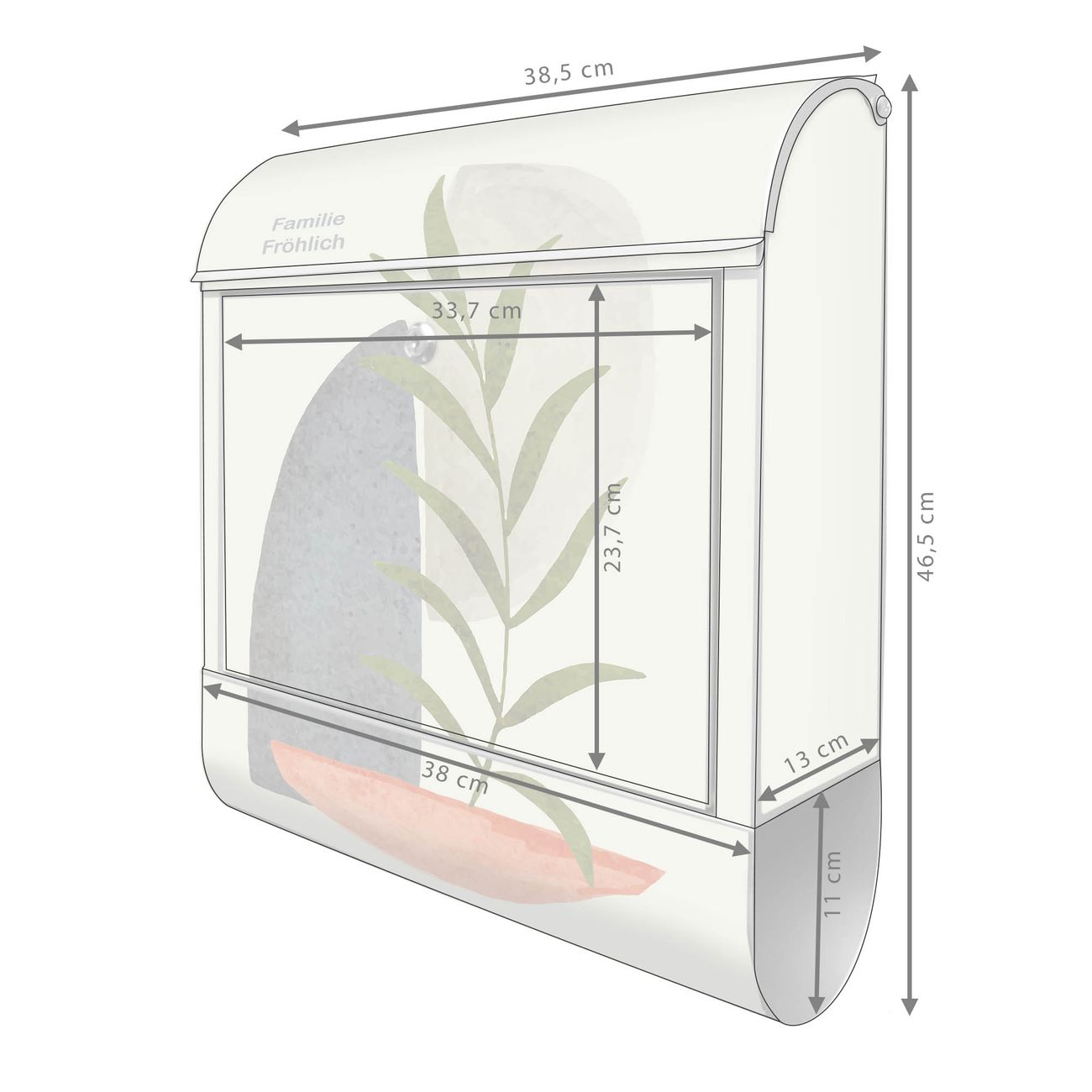 DESIGN: Der Postkasten mit Motiv Motiv Abstrakte Naturgeometrie hat ein sehr ansprechendes und ausgefallenes Design, damit entlocken Sie Ihren Nachbarn und dem Postboten ein Lächeln. Heben Sie Sich von der tristen grauen Masse ab, ohne auf Funktionalität zu verzichten. DETAILS: Der Postkasten besteht aus pulverbeschichtetem Stahl. Er ist 38x46x12,5cm groß. Das Motiv besteht aus einer wetter- und UV-resistenten Folie, die mit einem Schutzlaminat überzogen ist, sodass der Briefkasten zusätzlich vor Kratzern geschützt ist. Der Briefkasten wird mit Montagematerial, zusätzlich zwei Schlüssel sowie einer Bohrschablone geliefert. NUTZEN: Sie können diesen Briefkasten sowohl als Wandbriefkasten montieren oder einen passenden Ständer kaufen und als Standbriefkasten einbetonieren. Die Größe bietet genügend Platz für Sendungen aller Art, der Einwurf fasst auch größere A4 Sendungen. BANJADO: Ihr Briefkasten wird in Sachsen in einer kleinen Manufaktur von Hand veredelt. Die Motivfolie ist lösungsmittelfrei und schutzlaminiert für einen langen Halt. Wir legen großen Wert auf die Verbindung von Funktionalität und Design. Sie erhalten Handarbeit aus Sachsen.
