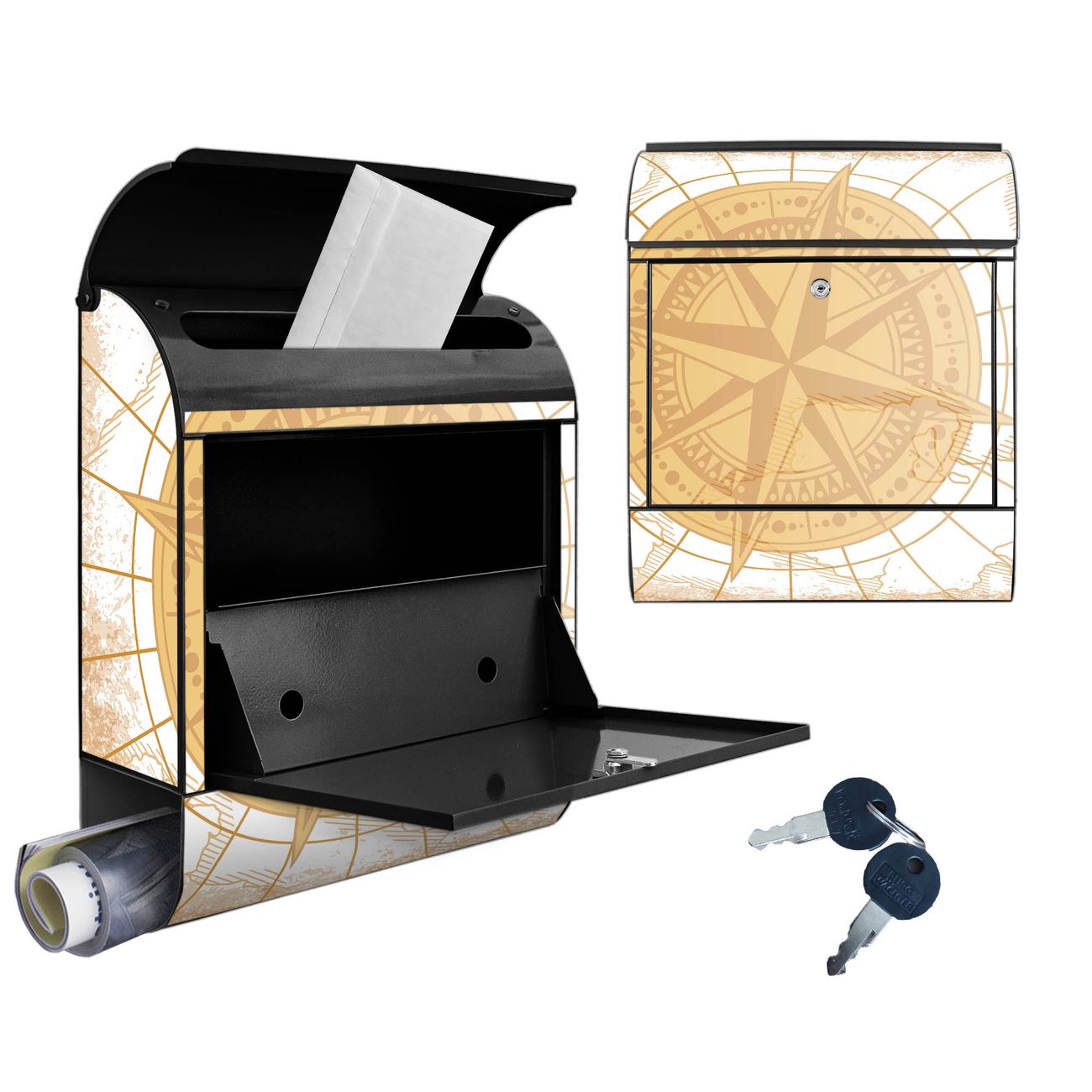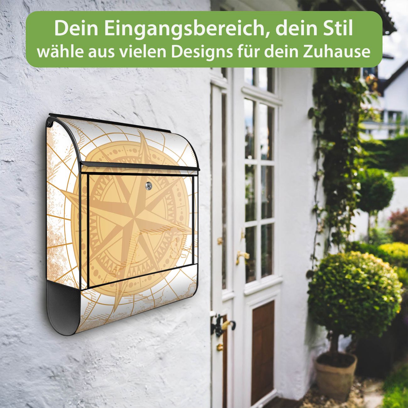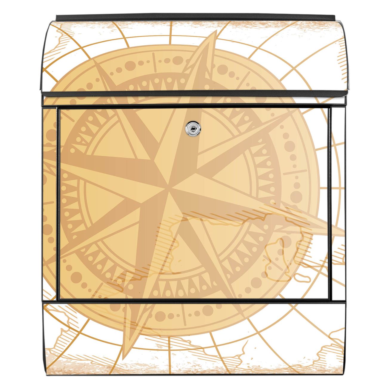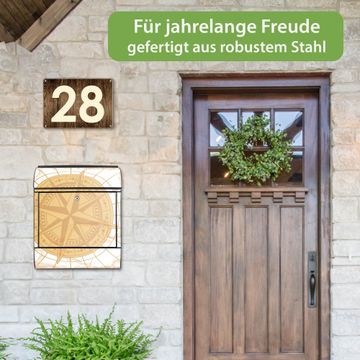 Großer Stahl Briefkasten Motiv Antike Kompassrose