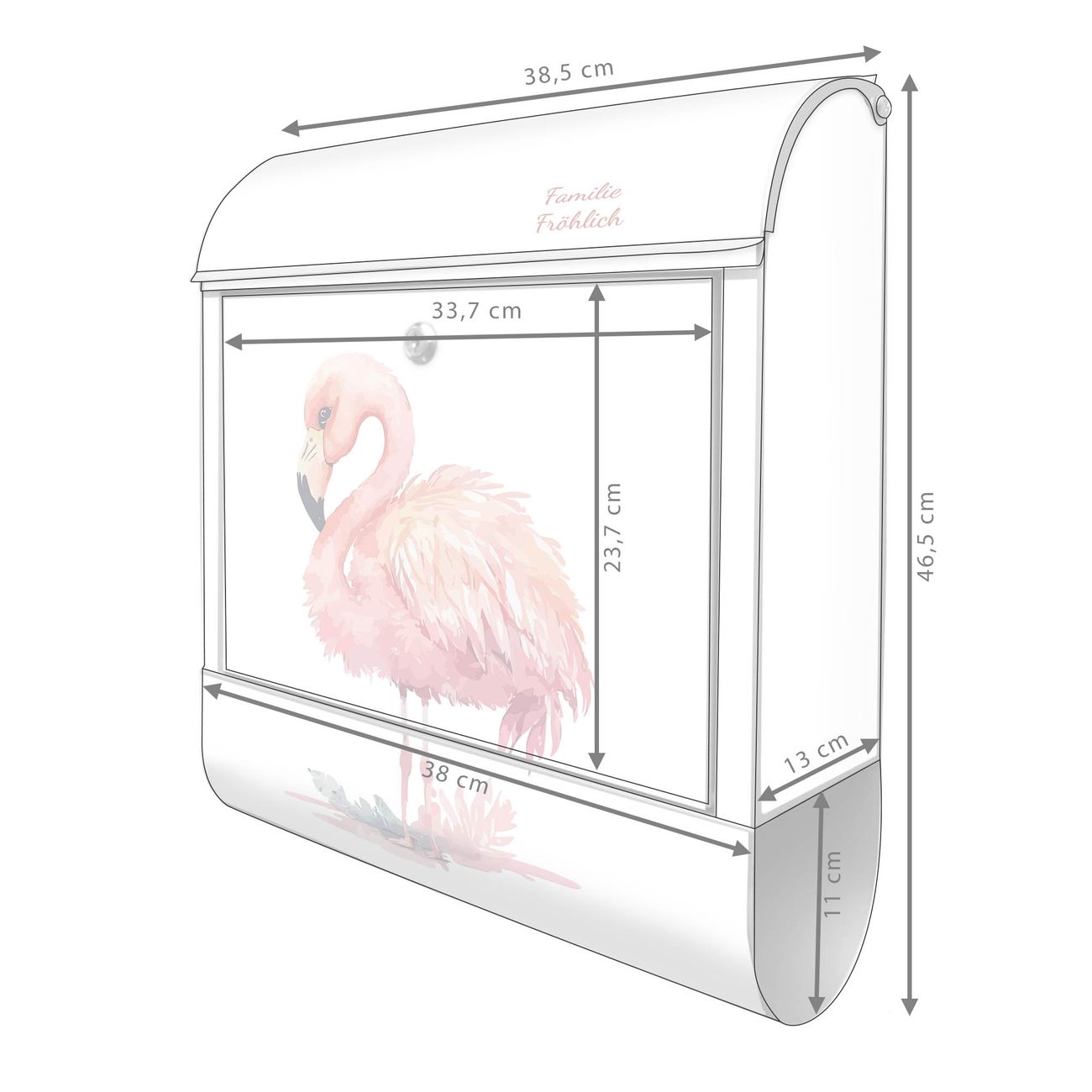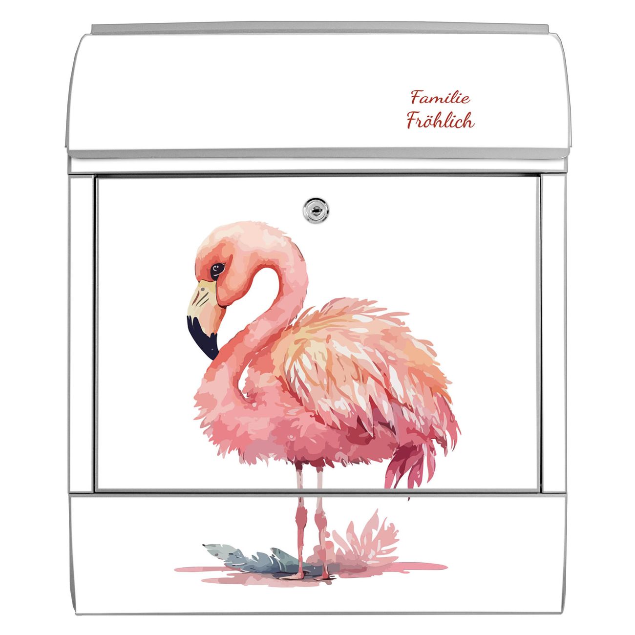 Großer Stahl Briefkasten Motiv Aquarell-Flamingo klein