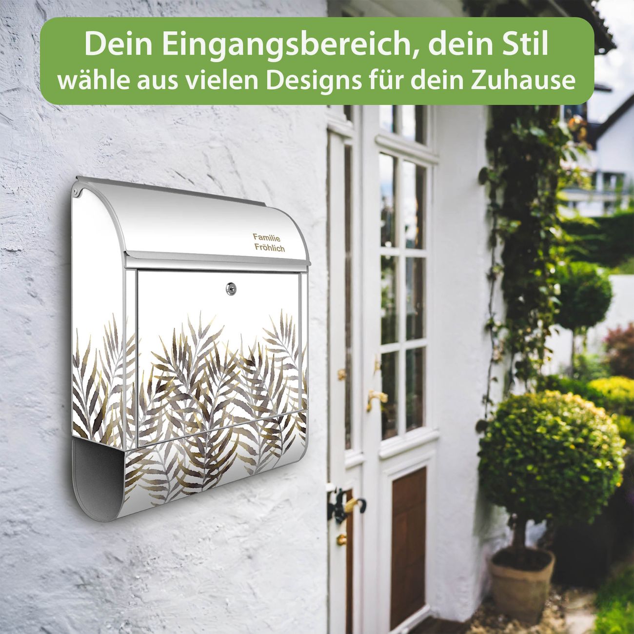 Großer Stahl Briefkasten Motiv Aquarell Palmblätter