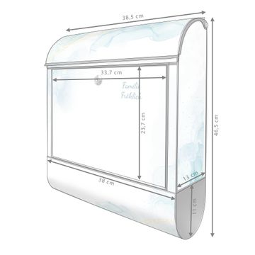 DESIGN: Der Postkasten mit Motiv Motiv Aquarellfluss hat ein sehr ansprechendes und ausgefallenes Design, damit entlocken Sie Ihren Nachbarn und dem Postboten ein Lächeln. Heben Sie Sich von der tristen grauen Masse ab, ohne auf Funktionalität zu verzichten. DETAILS: Der Postkasten besteht aus pulverbeschichtetem Stahl. Er ist 38x46x12,5cm groß. Das Motiv besteht aus einer wetter- und UV-resistenten Folie, die mit einem Schutzlaminat überzogen ist, sodass der Briefkasten zusätzlich vor Kratzern geschützt ist. Der Briefkasten wird mit Montagematerial, zusätzlich zwei Schlüssel sowie einer Bohrschablone geliefert. NUTZEN: Sie können diesen Briefkasten sowohl als Wandbriefkasten montieren oder einen passenden Ständer kaufen und als Standbriefkasten einbetonieren. Die Größe bietet genügend Platz für Sendungen aller Art, der Einwurf fasst auch größere A4 Sendungen. BANJADO: Ihr Briefkasten wird in Sachsen in einer kleinen Manufaktur von Hand veredelt. Die Motivfolie ist lösungsmittelfrei und schutzlaminiert für einen langen Halt. Wir legen großen Wert auf die Verbindung von Funktionalität und Design. Sie erhalten Handarbeit aus Sachsen.