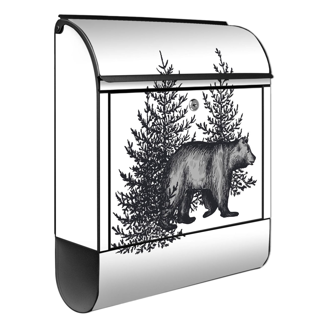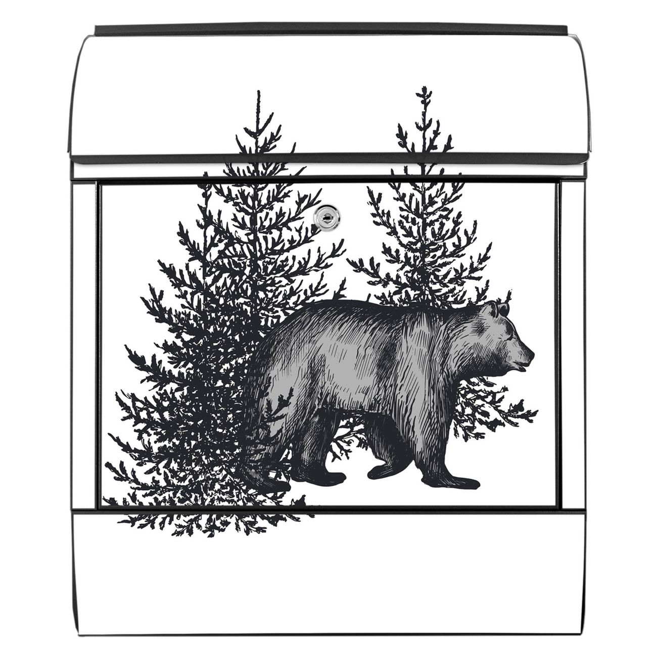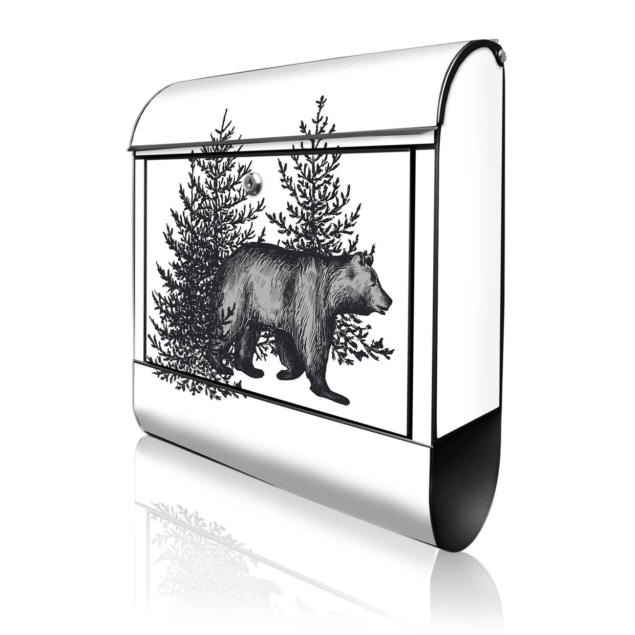 Großer Stahl Briefkasten Motiv Bär in Schwarz-Weiß