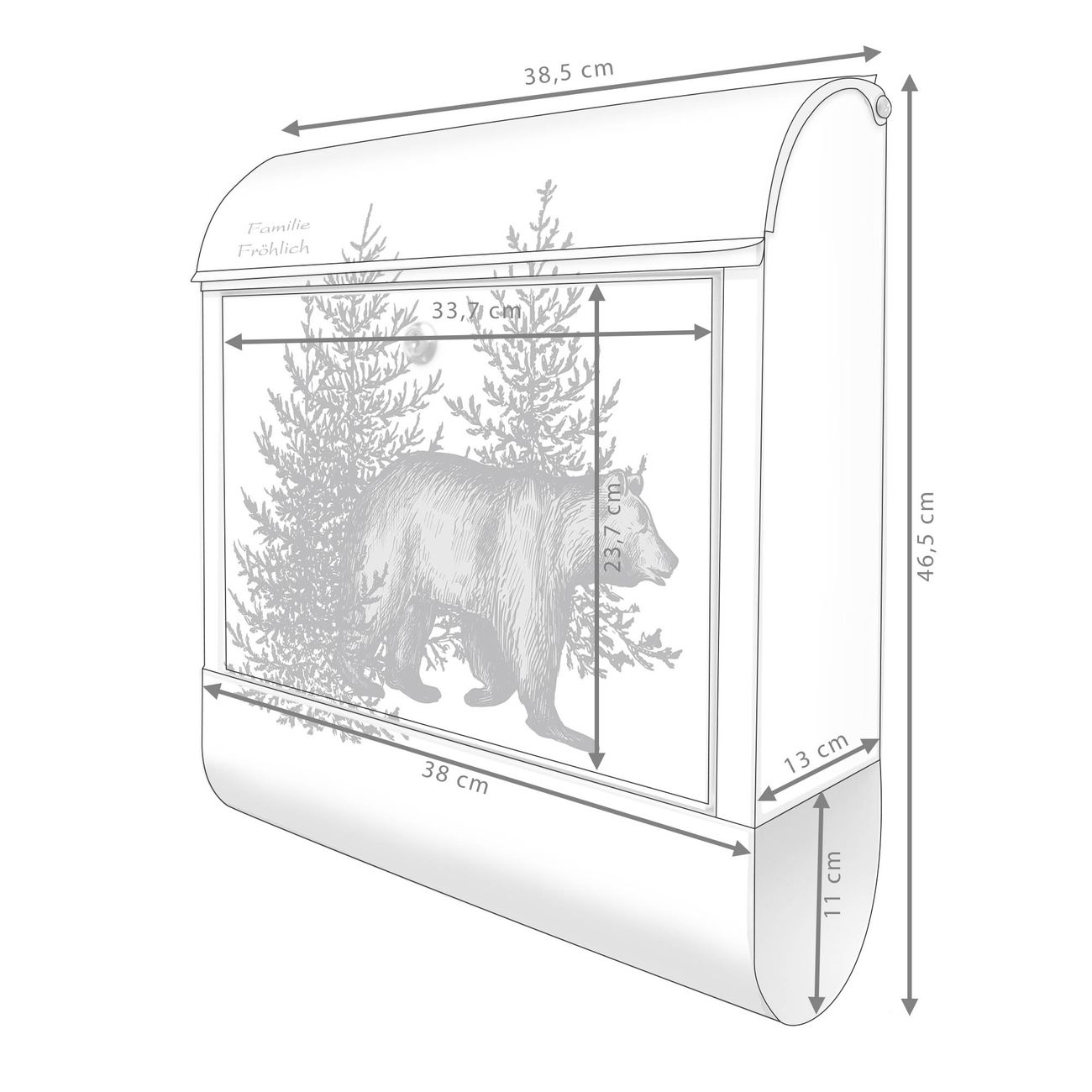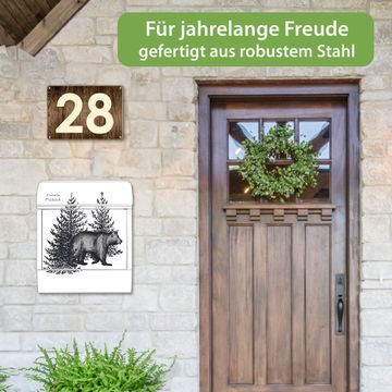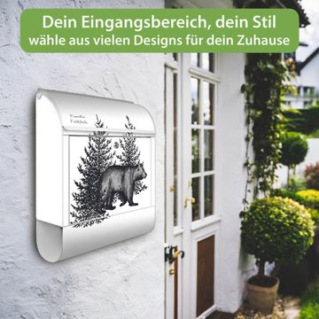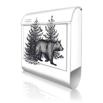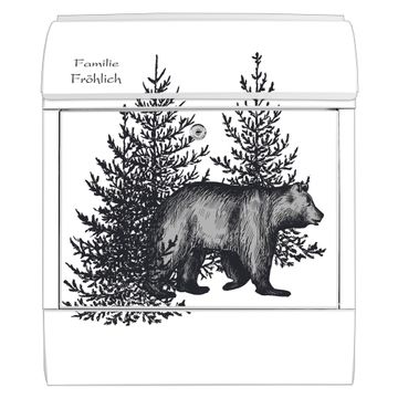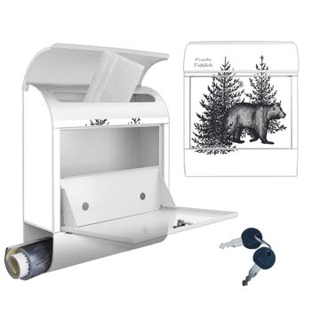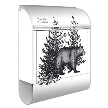 Großer Stahl Briefkasten Motiv Bär in Schwarz-Weiß