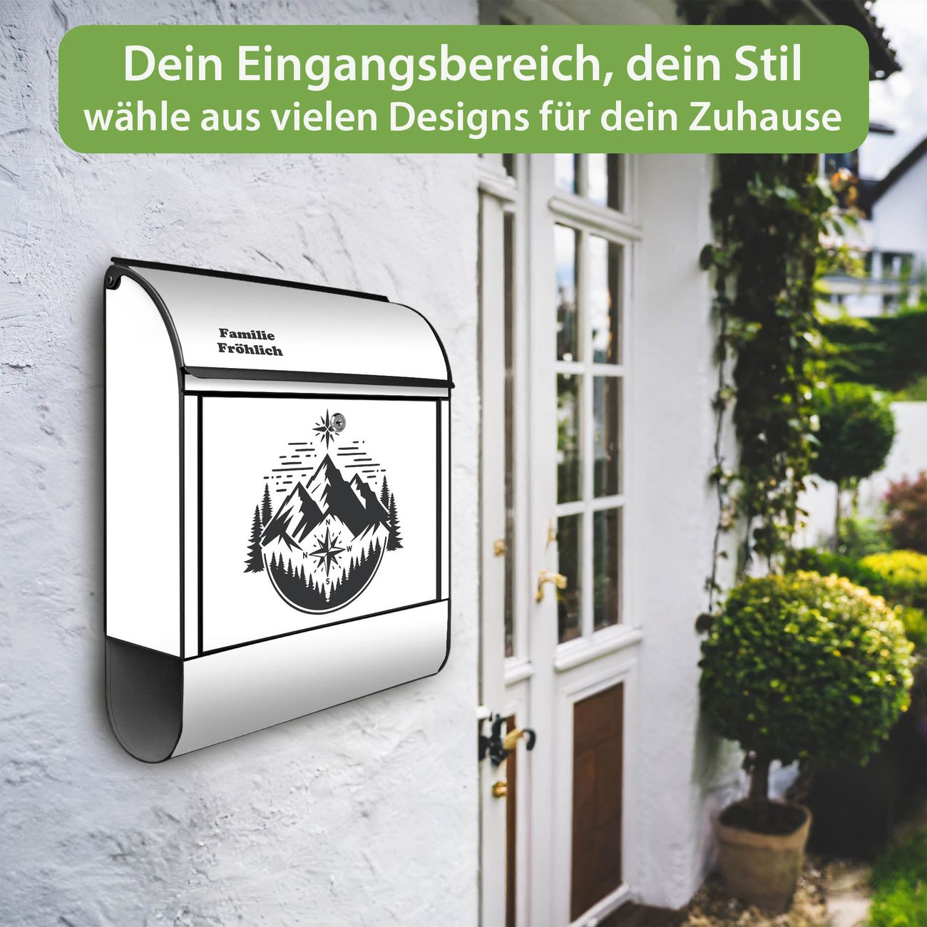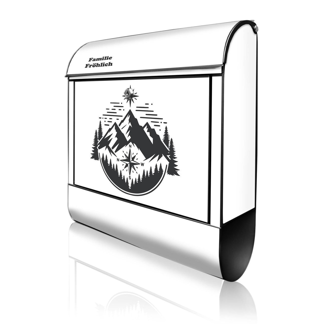 DESIGN: Der Postkasten mit Motiv Motiv Bergkompass hat ein sehr ansprechendes und ausgefallenes Design, damit entlocken Sie Ihren Nachbarn und dem Postboten ein Lächeln. Heben Sie Sich von der tristen grauen Masse ab, ohne auf Funktionalität zu verzichten. DETAILS: Der Postkasten besteht aus pulverbeschichtetem Stahl. Er ist 38x46x12,5cm groß. Das Motiv besteht aus einer wetter- und UV-resistenten Folie, die mit einem Schutzlaminat überzogen ist, sodass der Briefkasten zusätzlich vor Kratzern geschützt ist. Der Briefkasten wird mit Montagematerial, zusätzlich zwei Schlüssel sowie einer Bohrschablone geliefert. NUTZEN: Sie können diesen Briefkasten sowohl als Wandbriefkasten montieren oder einen passenden Ständer kaufen und als Standbriefkasten einbetonieren. Die Größe bietet genügend Platz für Sendungen aller Art, der Einwurf fasst auch größere A4 Sendungen. BANJADO: Ihr Briefkasten wird in Sachsen in einer kleinen Manufaktur von Hand veredelt. Die Motivfolie ist lösungsmittelfrei und schutzlaminiert für einen langen Halt. Wir legen großen Wert auf die Verbindung von Funktionalität und Design. Sie erhalten Handarbeit aus Sachsen.