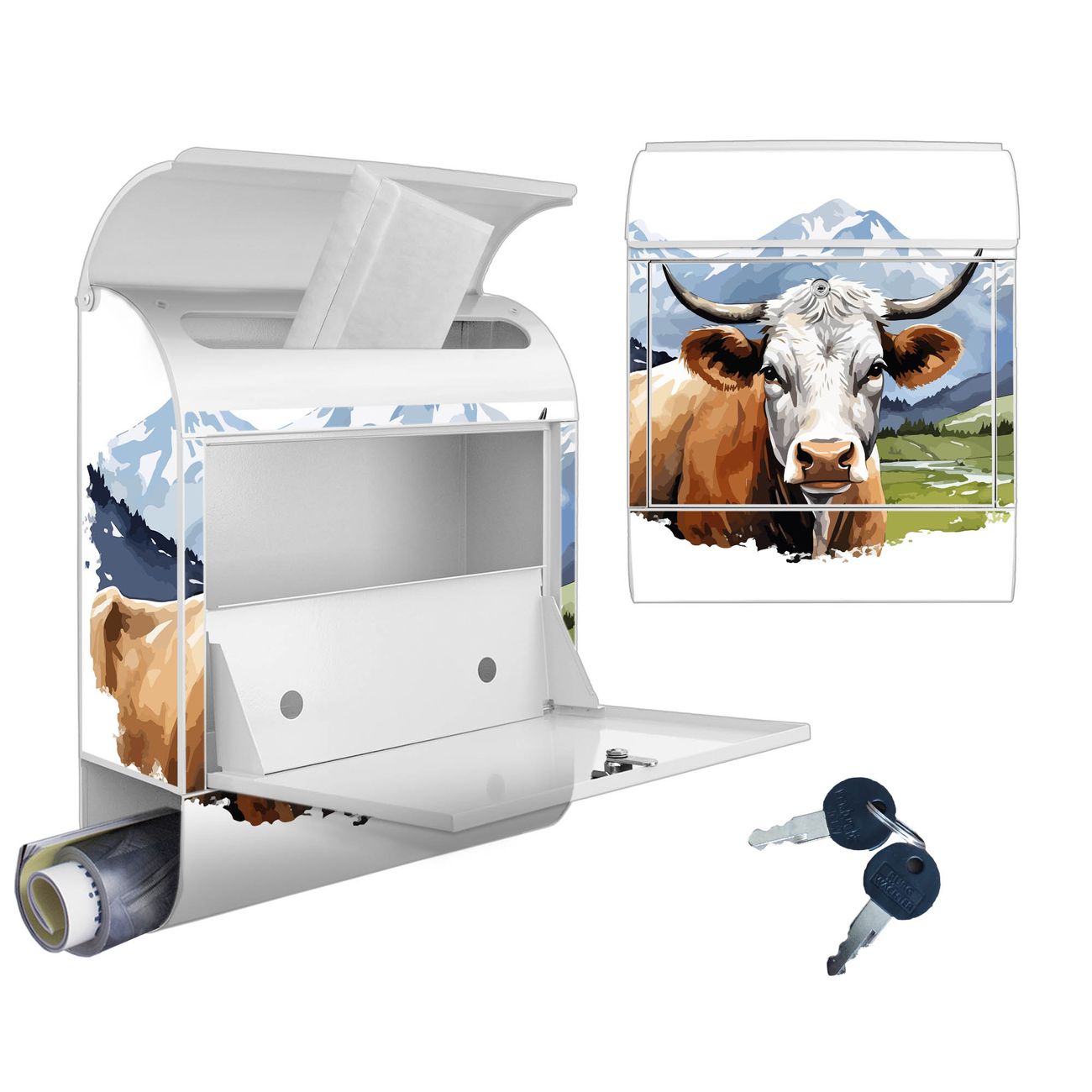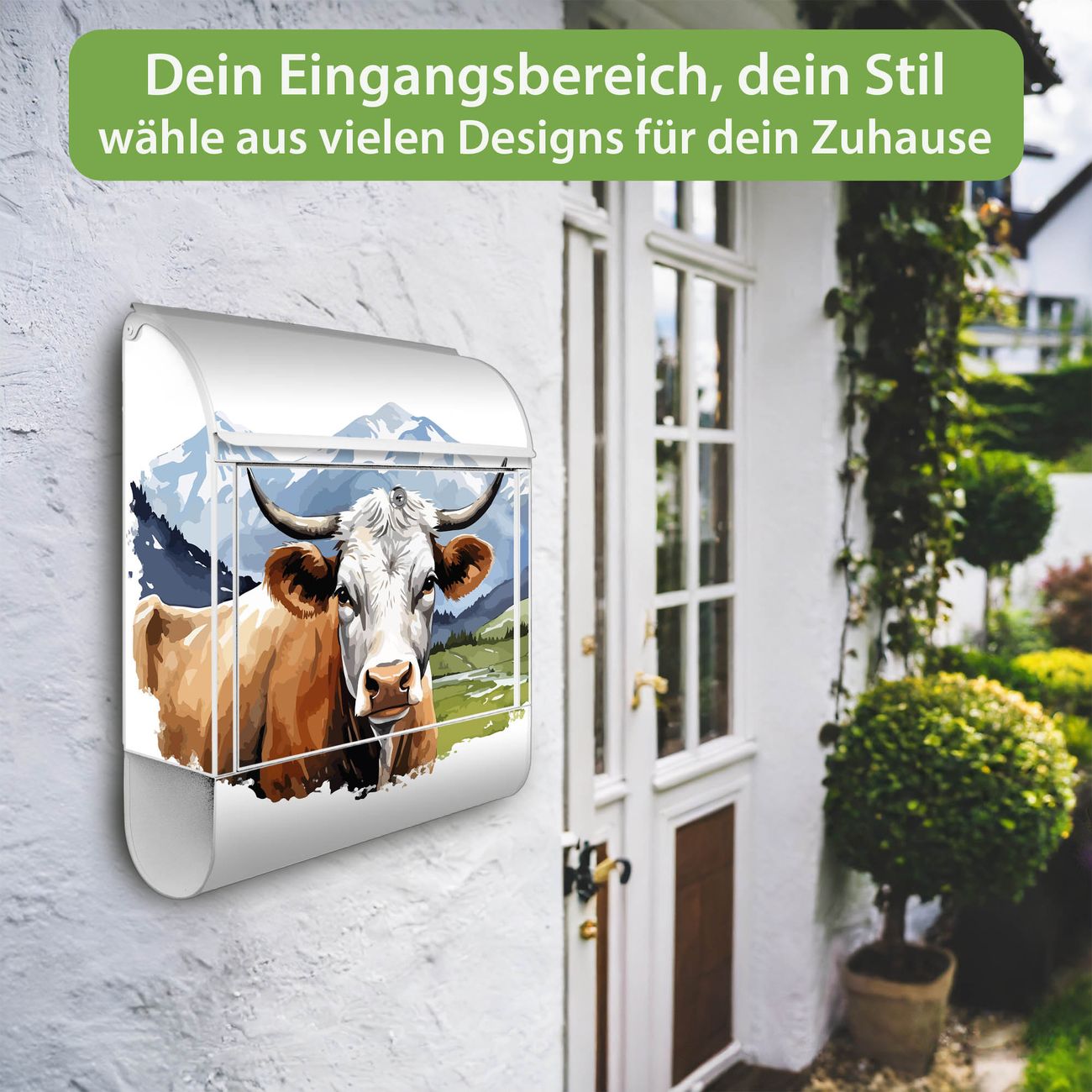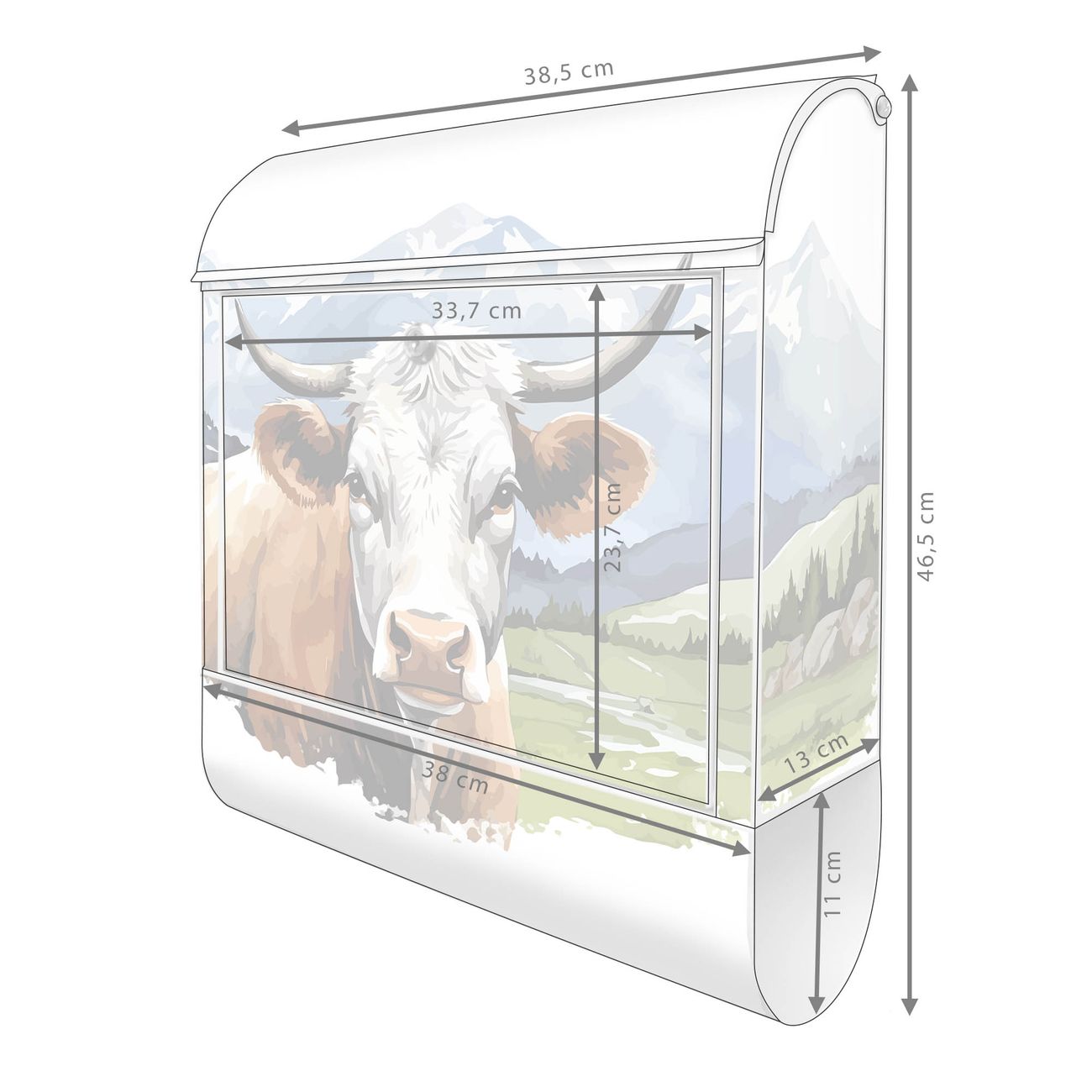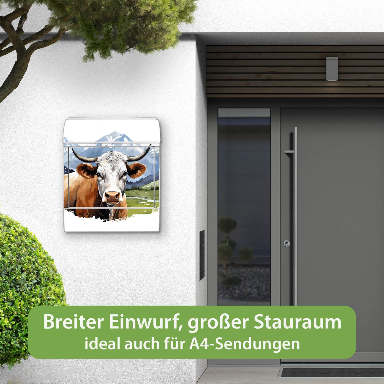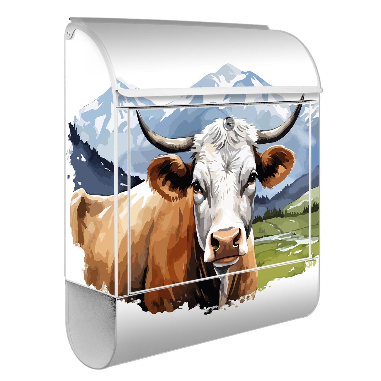 Großer Stahl Briefkasten Motiv Bergkuh in der Landschaft