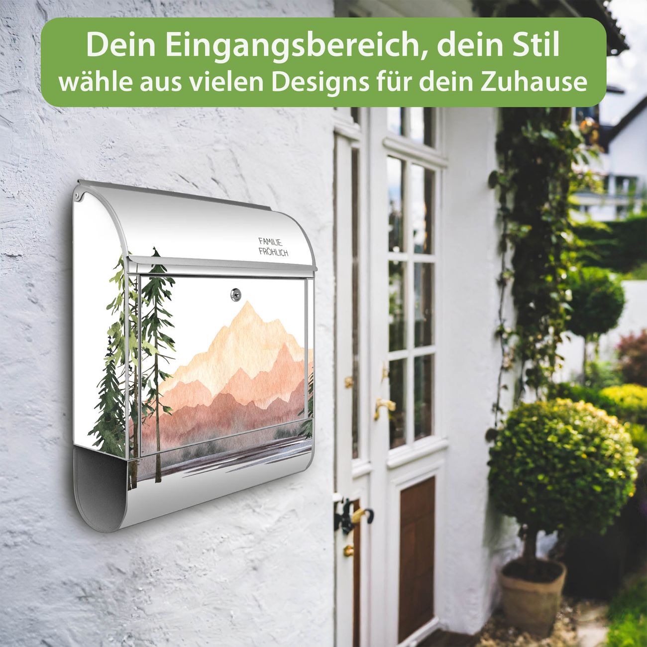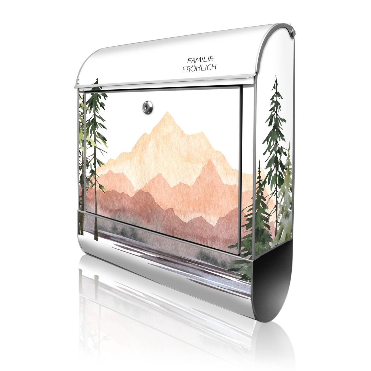 Großer Stahl Briefkasten Motiv Bergpanorama