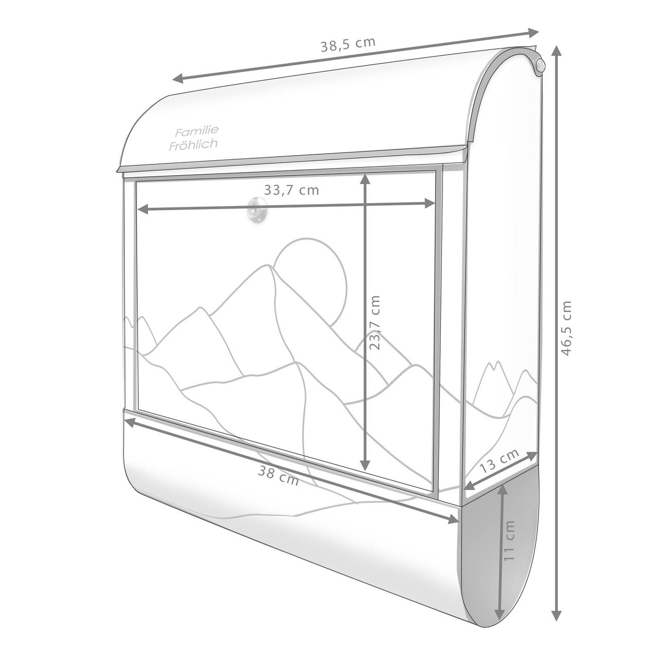 Großer Stahl Briefkasten Motiv Bergsilhouette Lineart 2