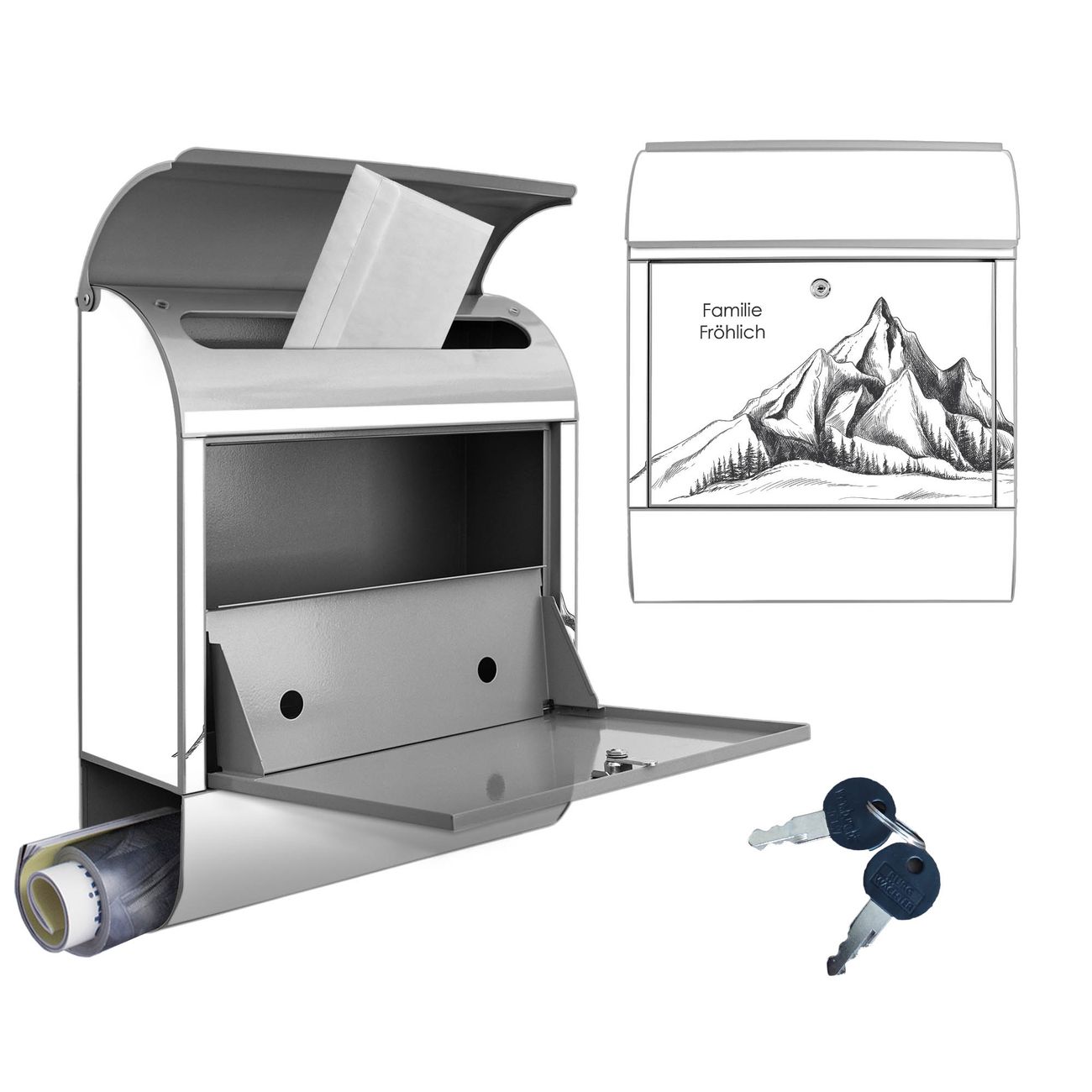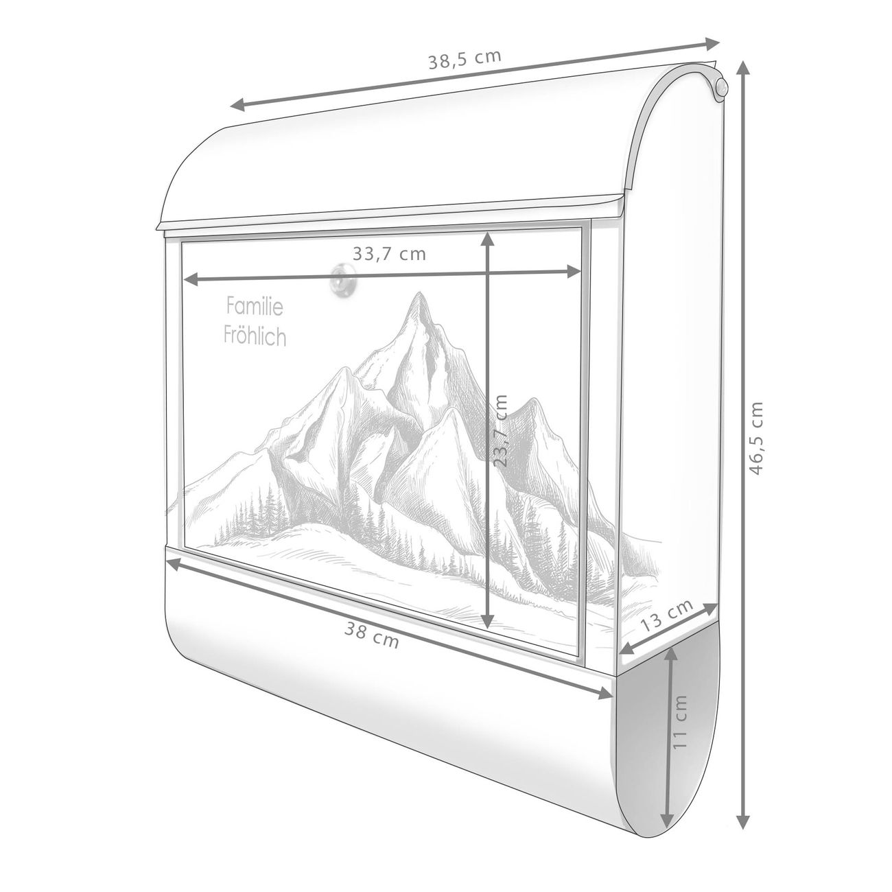 Großer Stahl Briefkasten Motiv Bergsilhouette