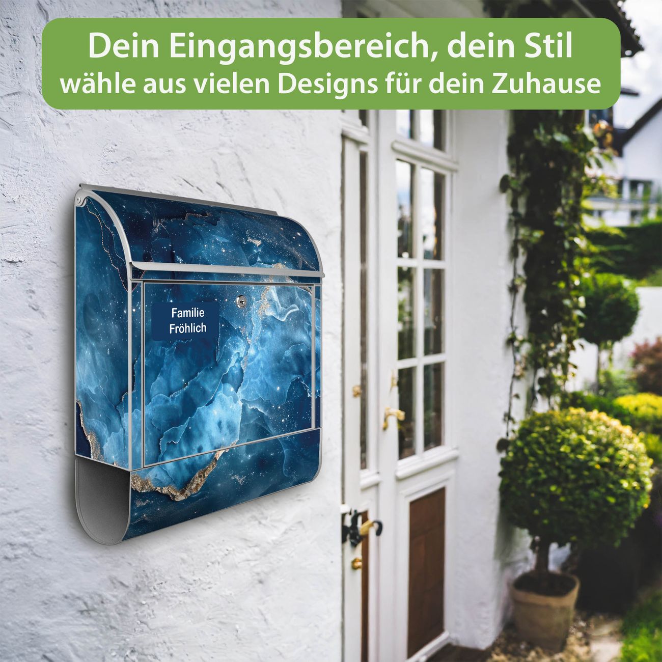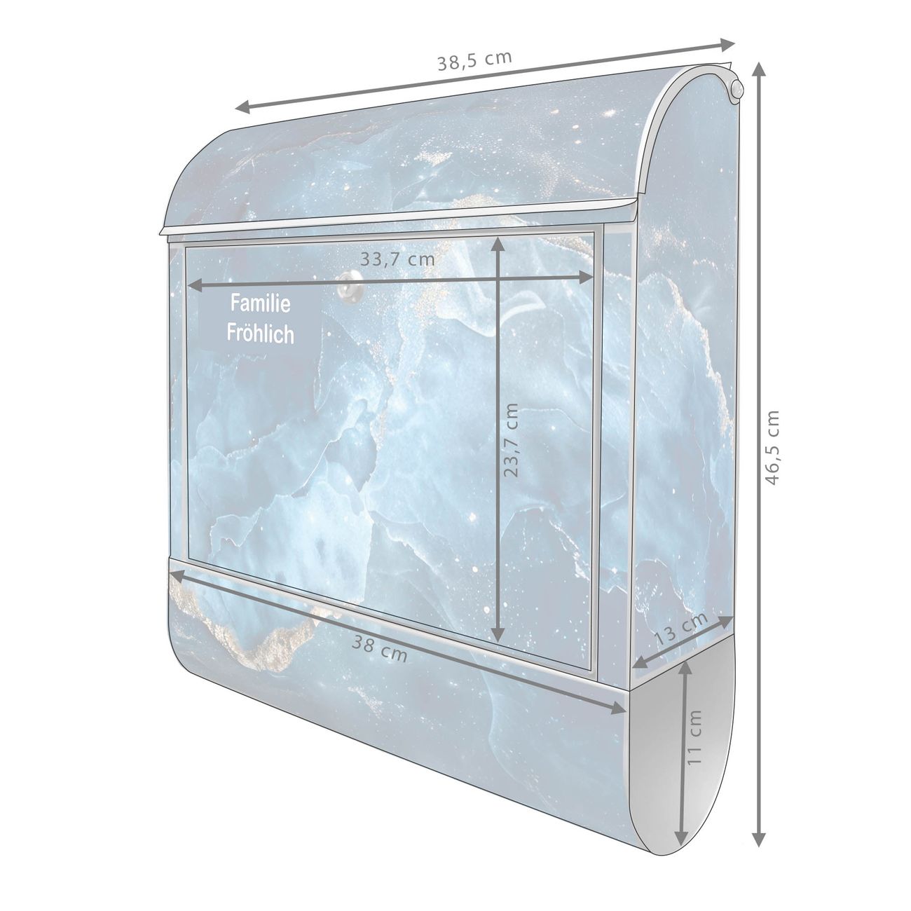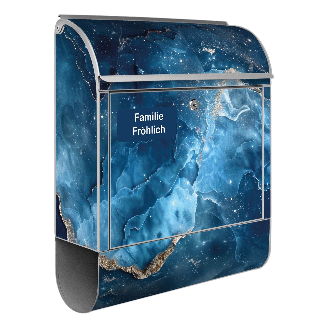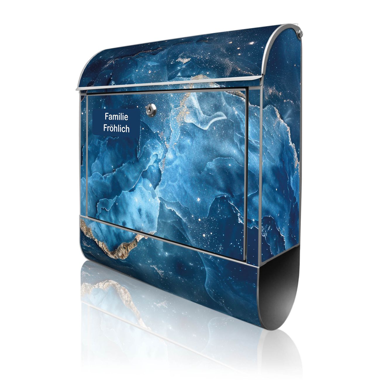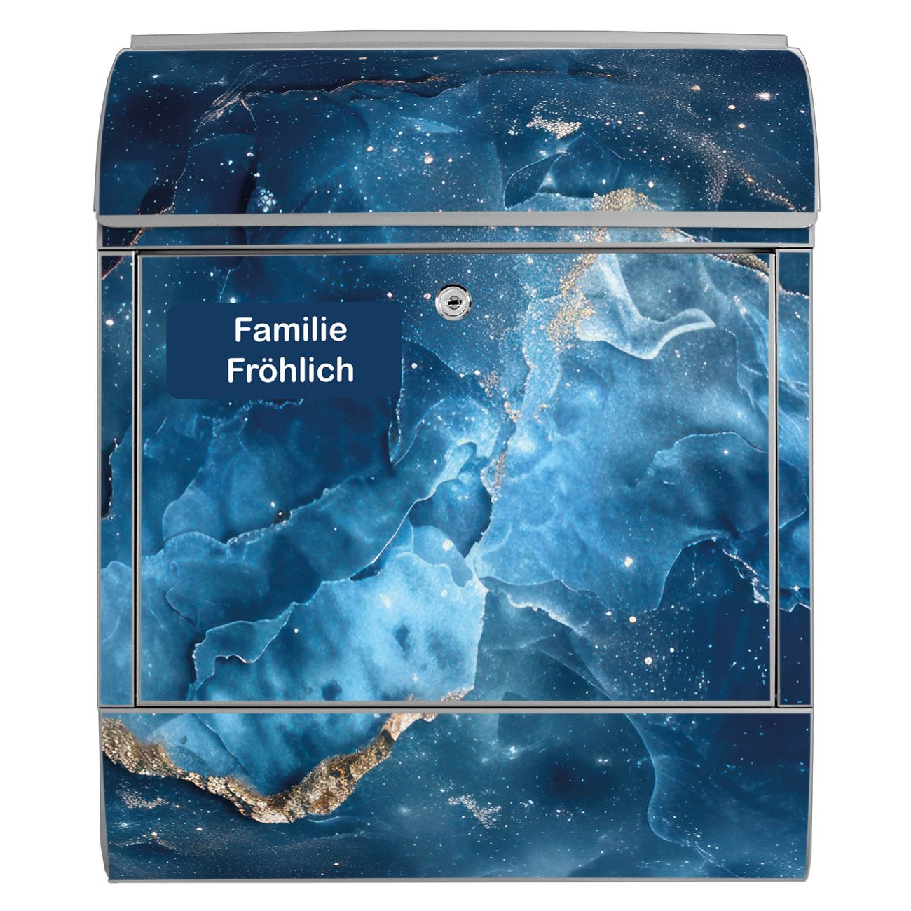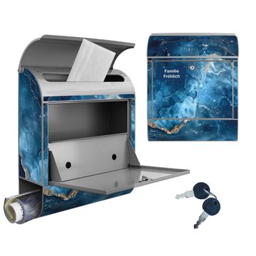 Großer Stahl Briefkasten Motiv Blauer Marmor mit Gold 1