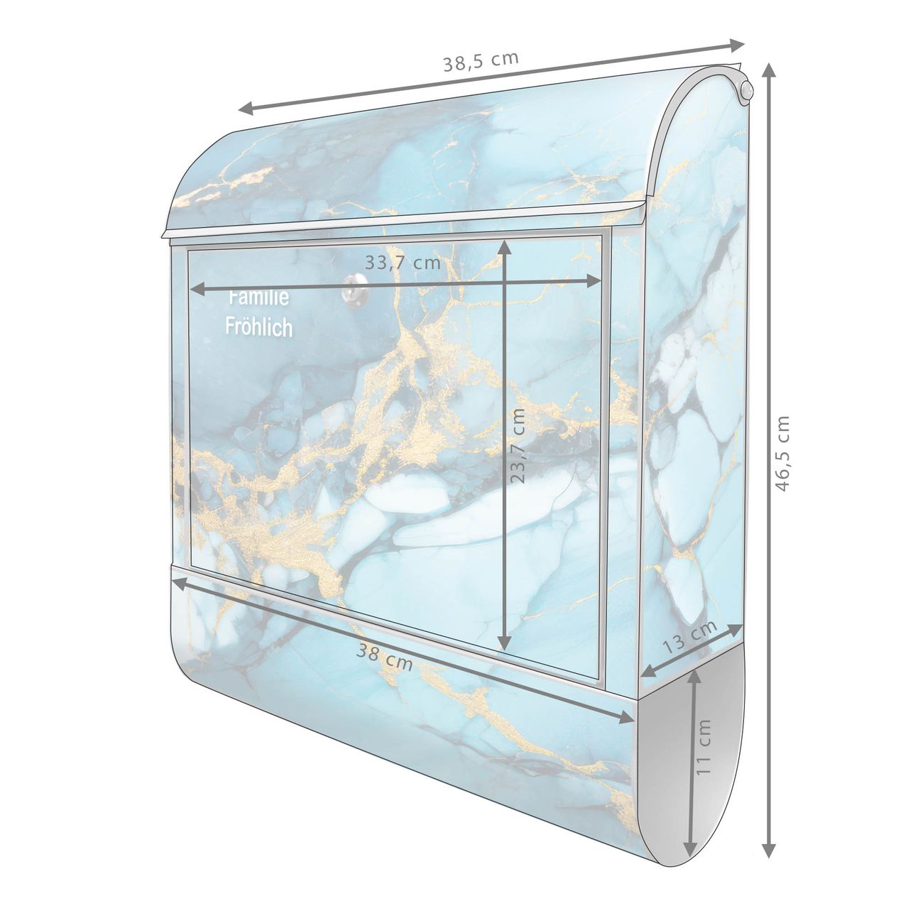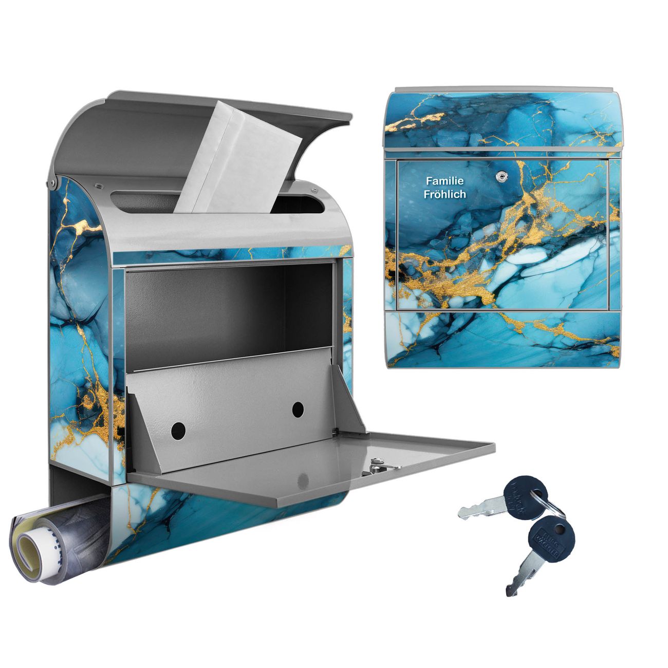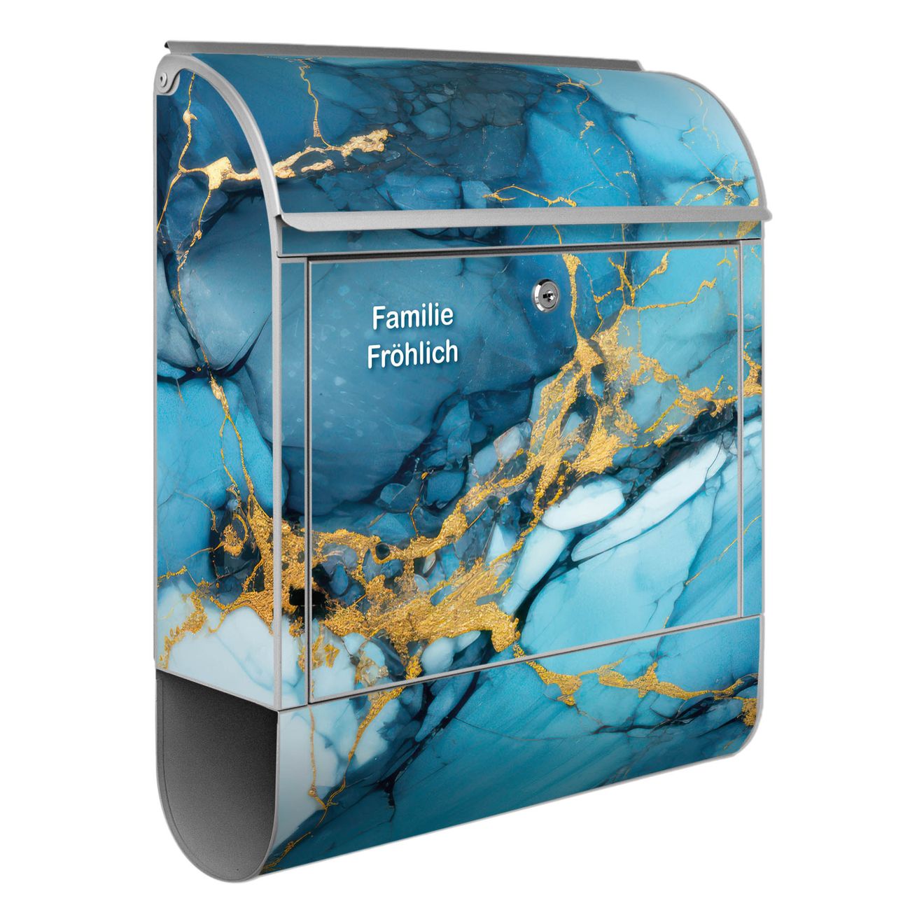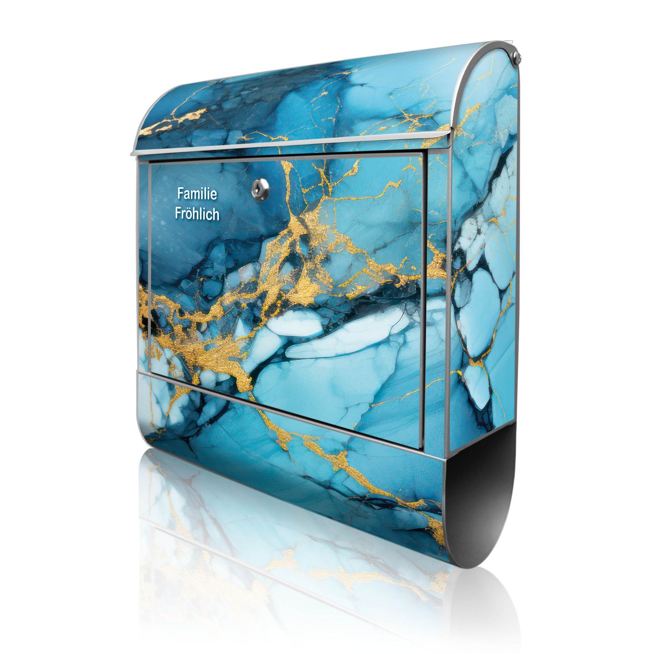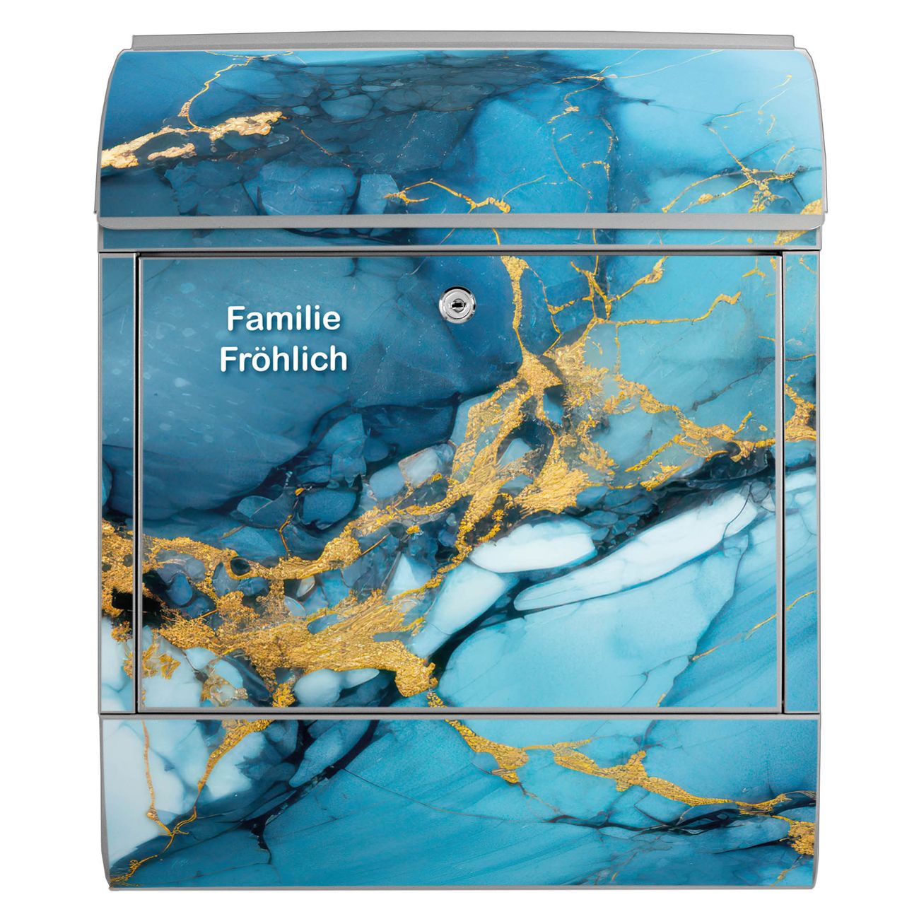 Großer Stahl Briefkasten Motiv Blauer Marmor mit Gold 2