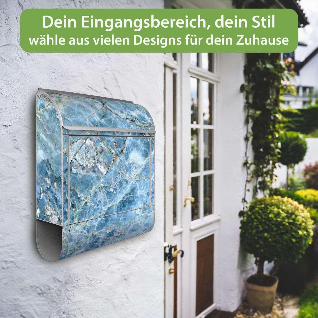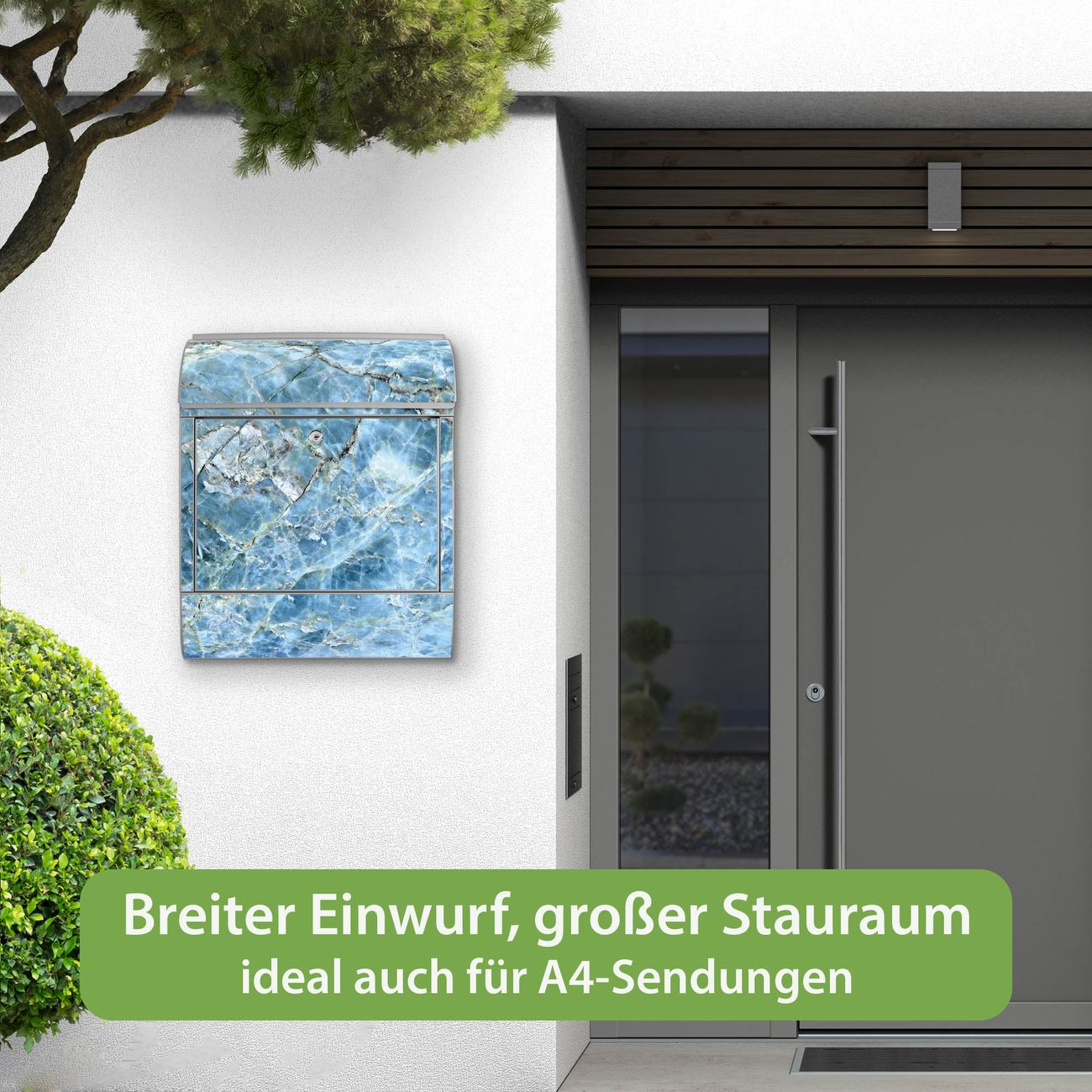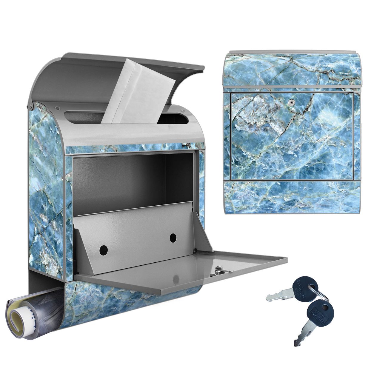 Großer Stahl Briefkasten Motiv Blauer Marmor