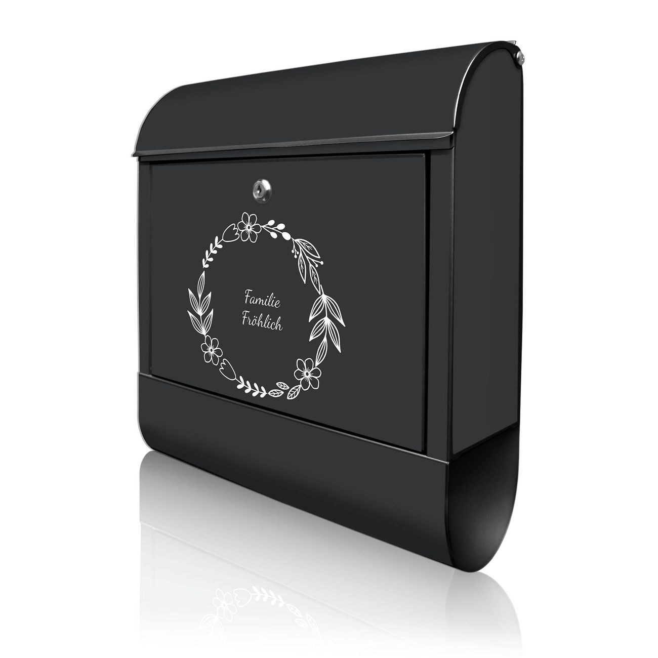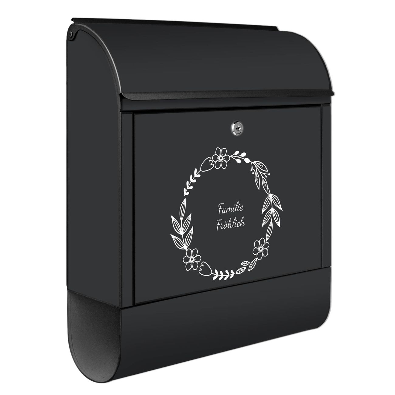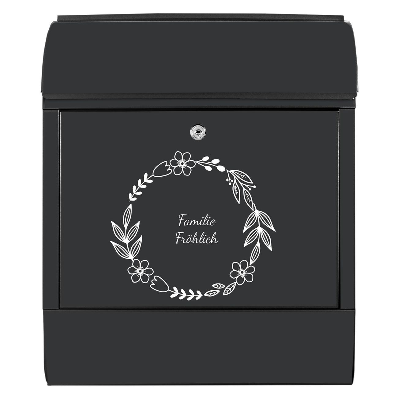 Großer Stahl Briefkasten Motiv Blütenkranz
