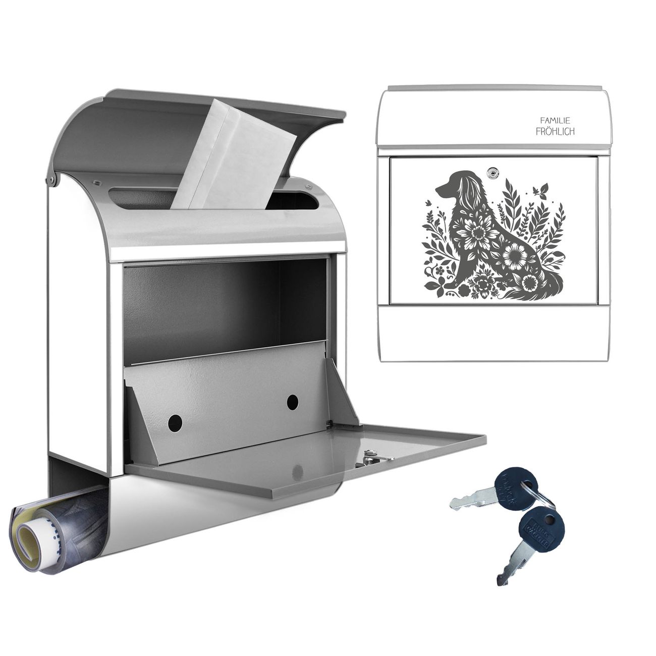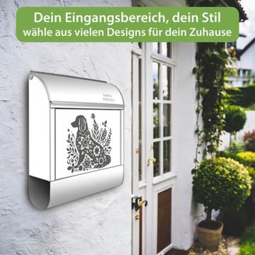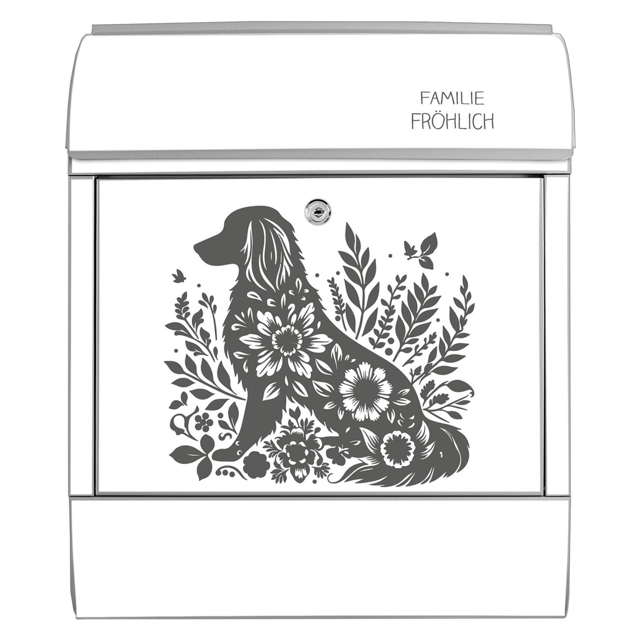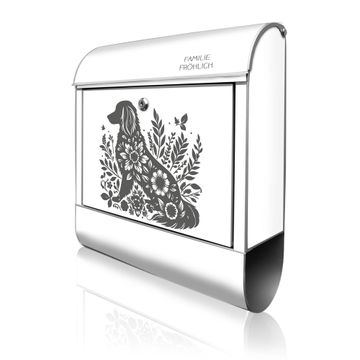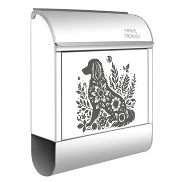 Großer Stahl Briefkasten Motiv Blumenhund Silhouette