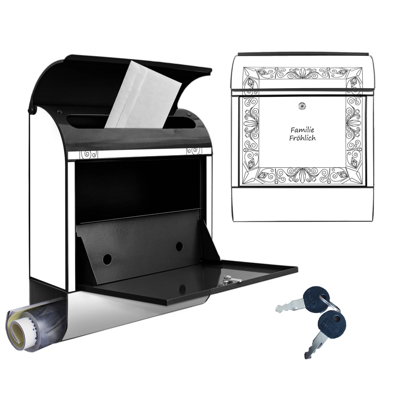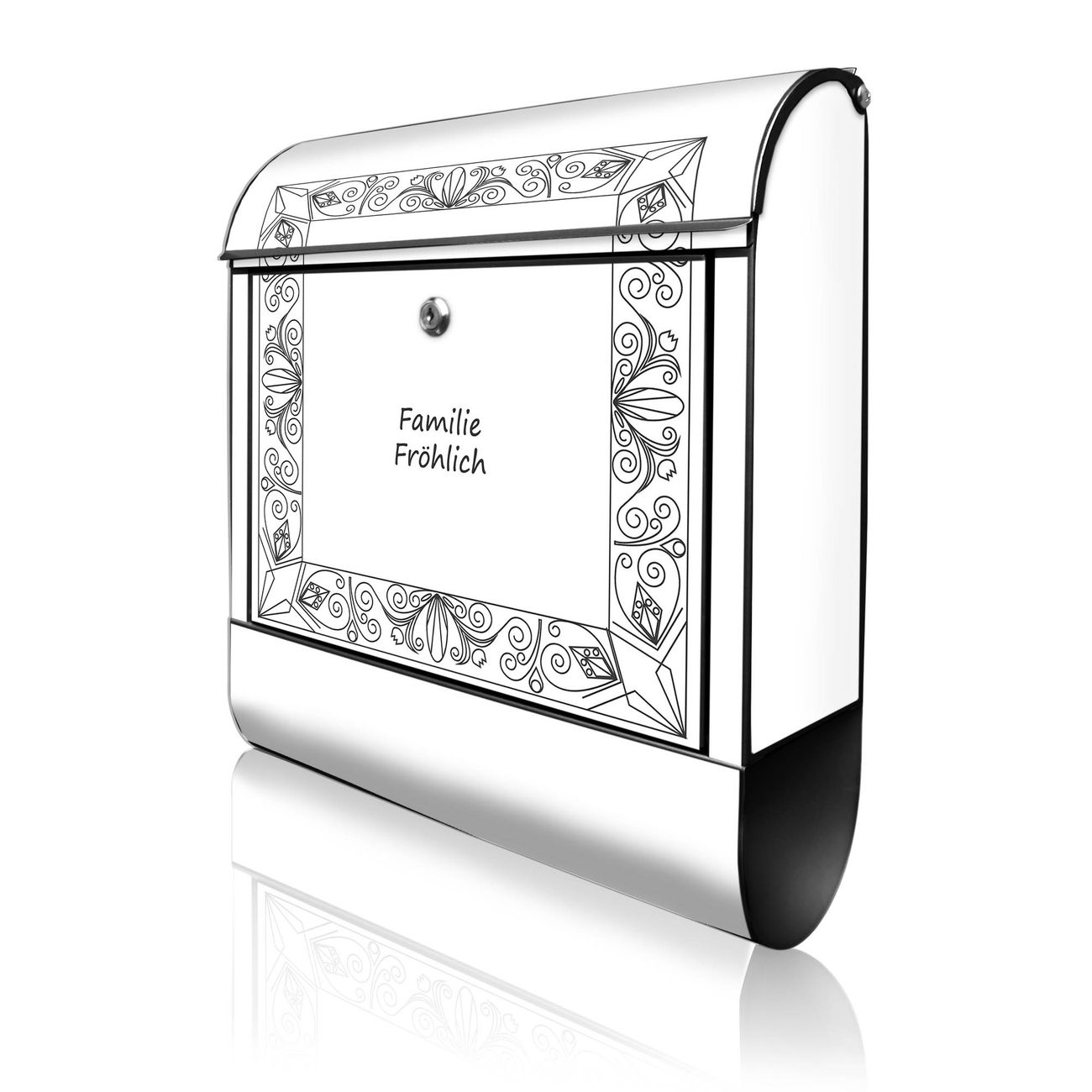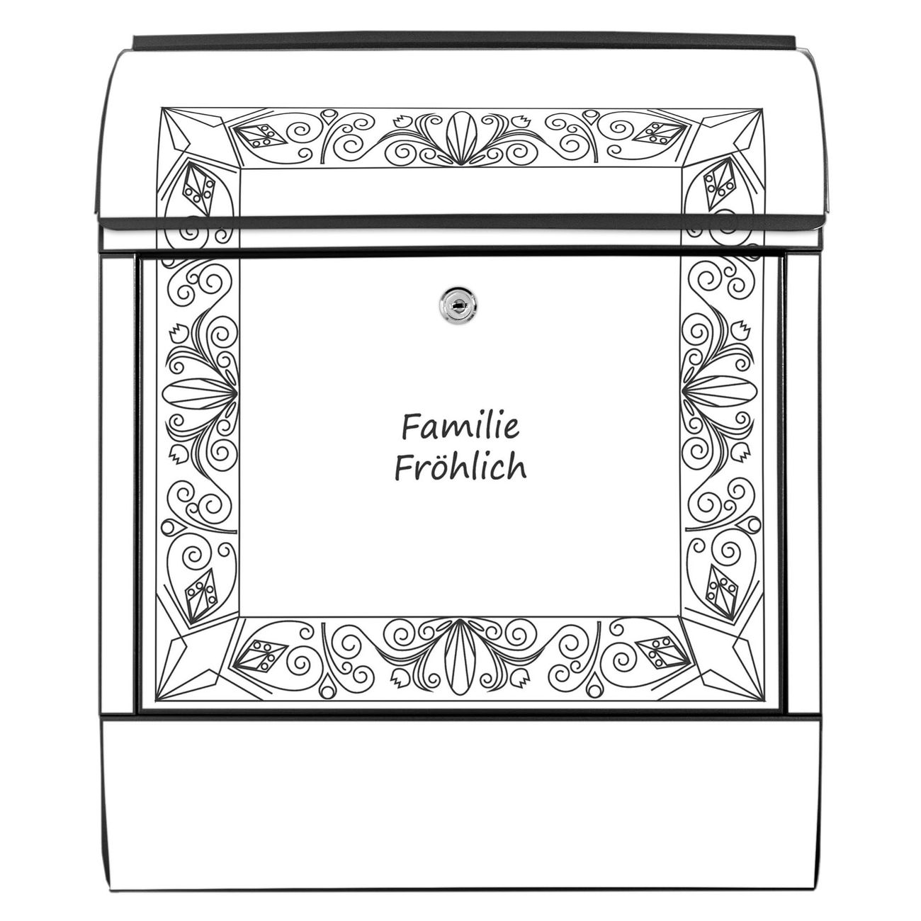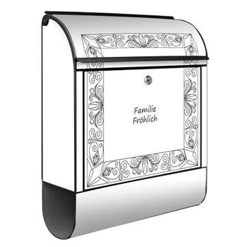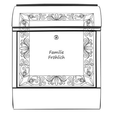 Großer Stahl Briefkasten Motiv Blumenornament-Rahmen