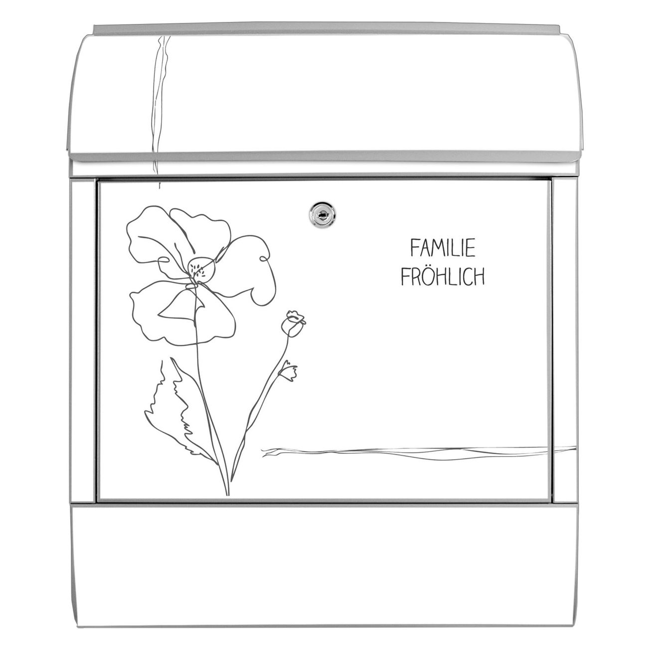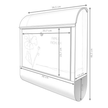 Großer Stahl Briefkasten Motiv Blumenrahmen Skizze