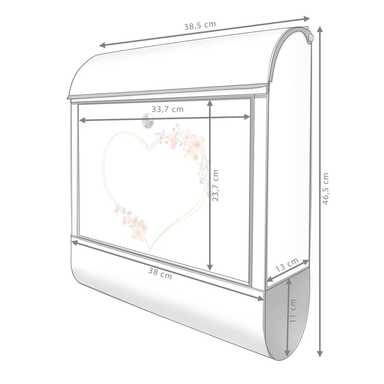 Großer Stahl Briefkasten Motiv Blumiges Herz