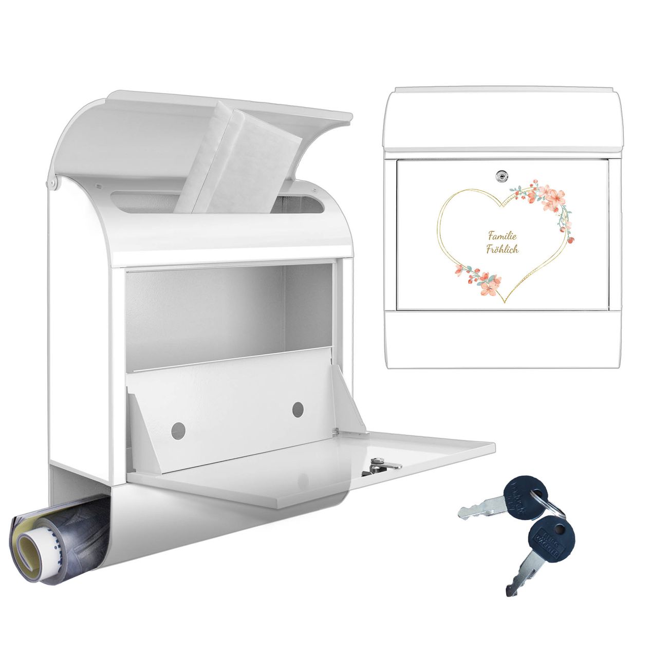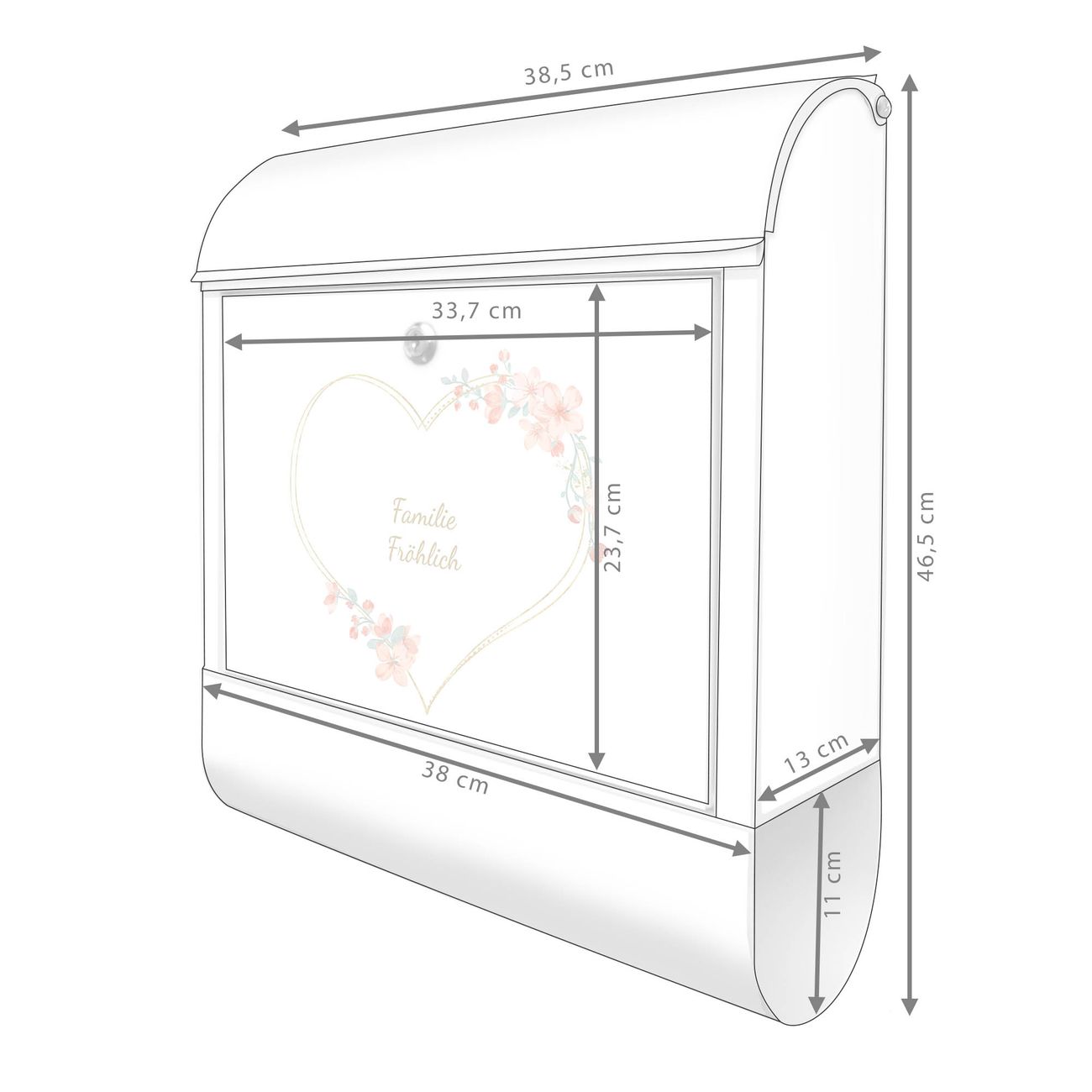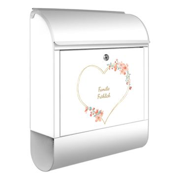 Großer Stahl Briefkasten Motiv Blumiges Herz