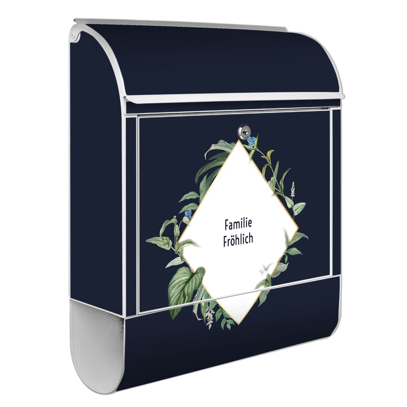Großer Stahl Briefkasten Motiv Botanischer Rahmen